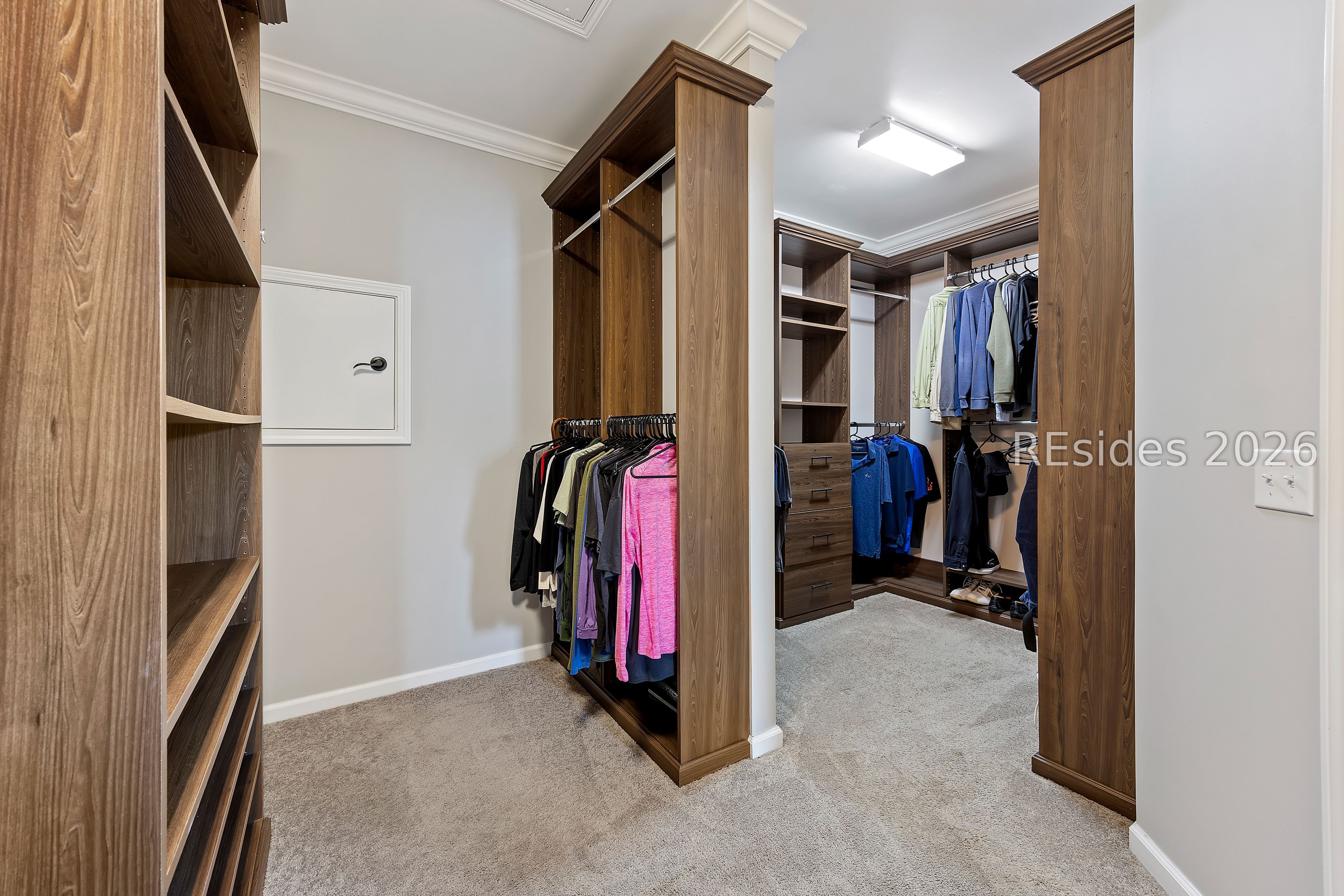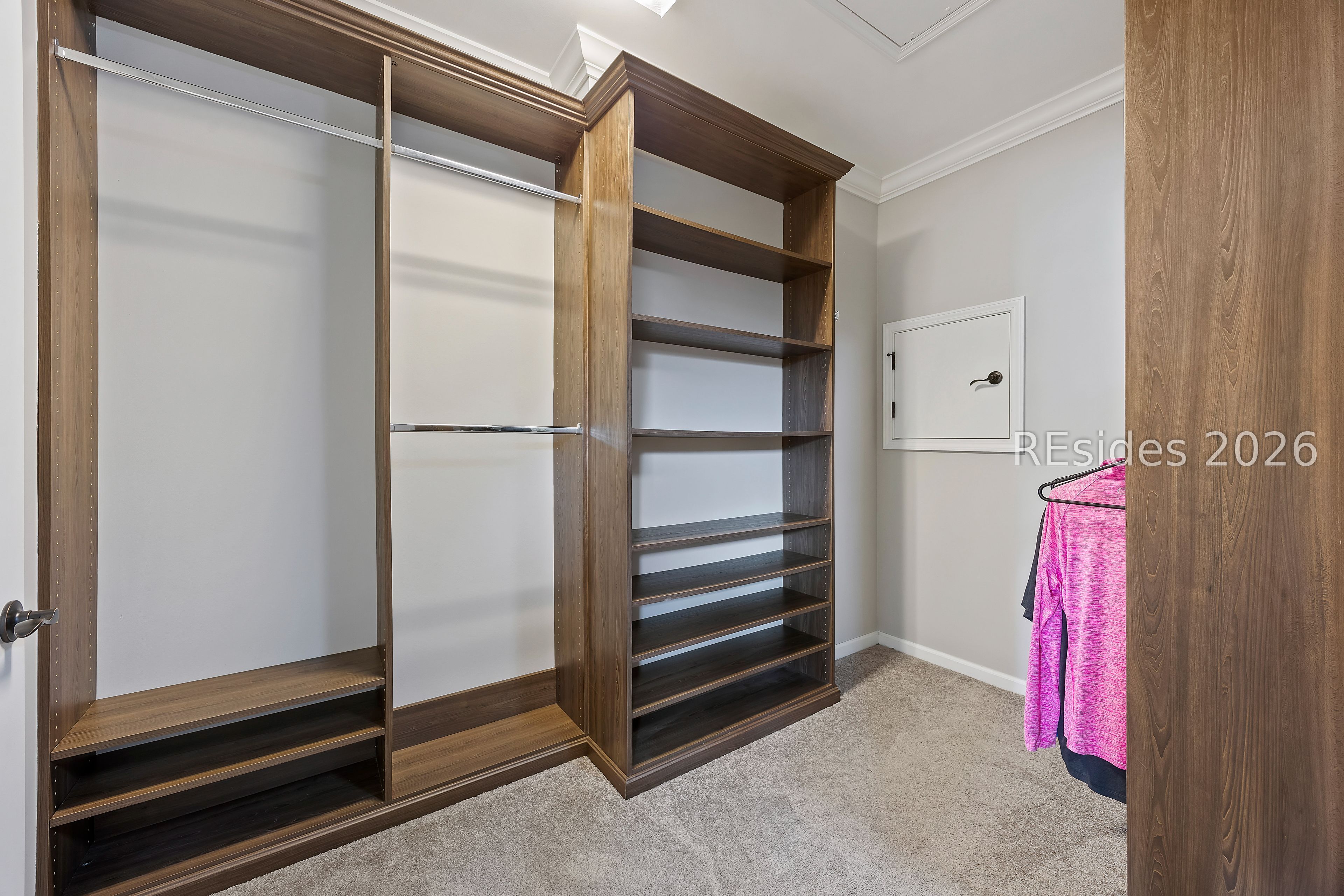 - Attic Access, Bookcases, Built-in Features, Tray Ceiling(s), Ceiling Fan(s), Carbon Monoxide Detector, Main Level Primary, Multiple Primary Bathrooms, Pull Down Attic Stairs, Smooth Ceilings, Separate Shower, Smart Thermostat, Wired for Data, Wired for Sound, Window Treatments, Entrance Foyer, Eat-in Kitchen, New Paint, Pantry