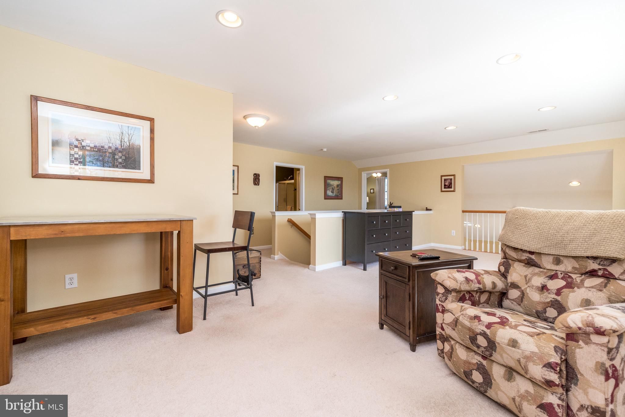 Welcome to easy, elegant living in the highly sought-after Village at Rosecliff 55+ Community! This beautiful end-unit carriage home is one of the largest models in the neighborhood and enjoys a premium location next to the community gazebo and a large open green space, offering both privacy and scenic surroundings. Step inside to discover a pristine, meticulously maintained home featuring brand-new light wood flooring throughout the first floor and an inviting open layout perfect for everyday living and entertaining. The living and dining room combination showcases soaring vaulted ceilings and a stunning corner fireplace, creating a warm and welcoming centerpiece. From the living room, step out onto the second-floor extended deck, the perfect place to relax and enjoy peaceful views of the open space below. The gourmet kitchen is designed for both style and functionality with stainless steel appliances, solid surface countertops and ample cabinetry for storage. A sunny dedicated table area directly next to the large peninsula complete this eat in masterpiece. Plenty of choices to enjoy your morning coffee or a weekend brunch with family and friends. This spacious home offers 3 bedrooms and 3 full bathrooms, including a luxurious first-floor primary suite complete with a private sitting area, huge walk-in closet, and an extensive en-suite bath featuring a walk-in shower. A second bedroom with direct access to the 2nd full bathroom completes the main floor. Upstairs, you'll find a large open loft area ideal for an additional family room, a home office, reading space, or additional living area, along with a generous bedroom, full bathroom, storage room, and a large utility room. The walk-out, partially finished basement adds exceptional living space and versatility. As sun streams in from the two large windows into the newly updated bonus room-the features are a large brightly lit entertaining area with direct access to the covered stone patio beneath the upper level deck, creating a wonderful indoor-outdoor flow for gatherings. The basement also includes an extensive woodshop/workshop area and a massive storage space with built-in shelving. Additional highlights include: Laundry room with new washer and dryer, cabinetry, and storage closet Direct access to the attached two-car garage with additional storage Extended driveway with parking for up to four cars Overflow parking conveniently located directly across from the home Enjoy low-maintenance living in the desirable Village at Rosecliff 55+ community, where comfort, space, and thoughtful design come together in a truly exceptional home.