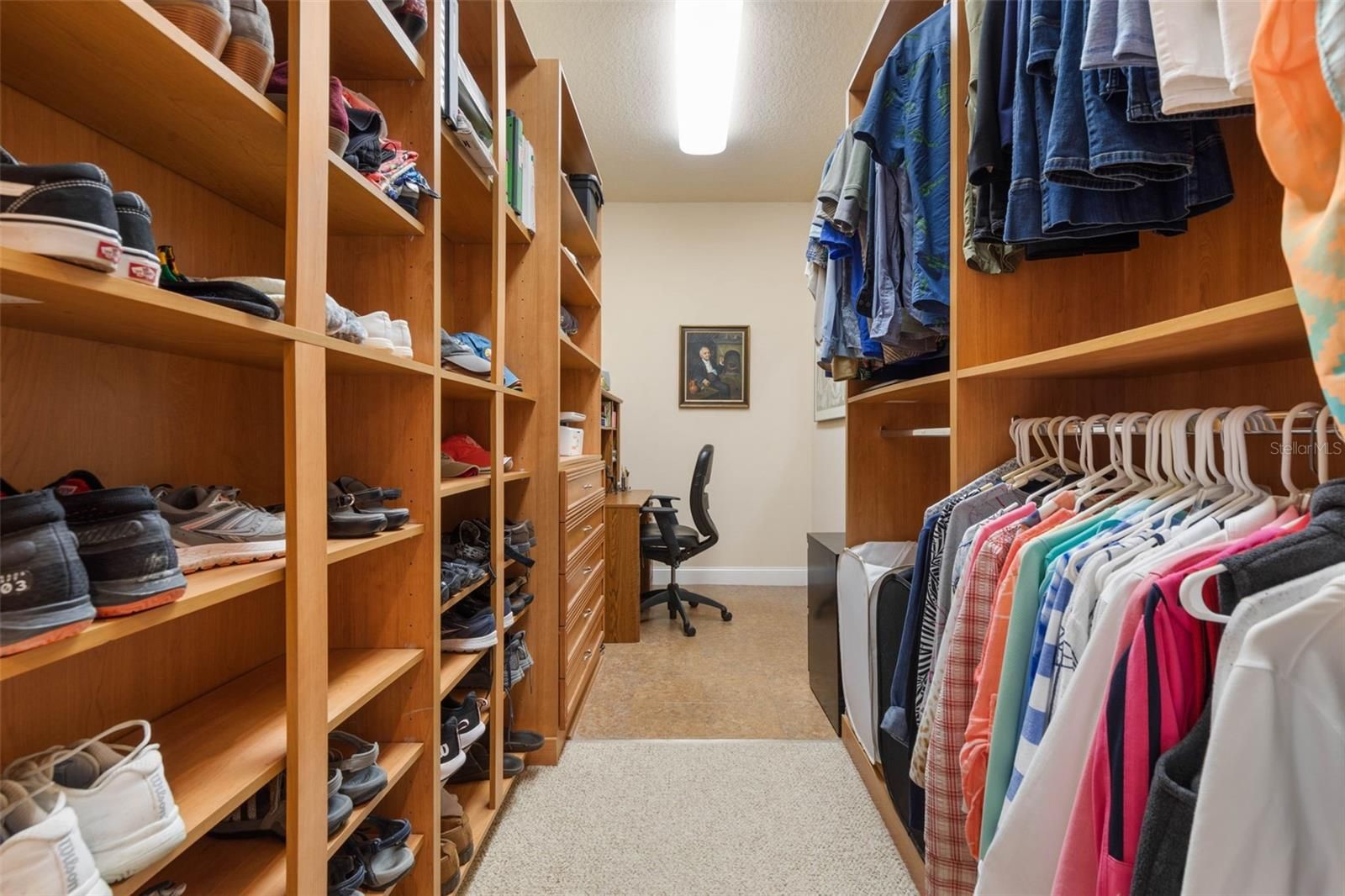 - Ceiling Fan(s), Crown Molding, Eat-in Kitchen, High Ceilings, Kitchen/Family Room Combo, Open Floorplan, Main Level Primary, Solid Surface Counters, Solid-Wood Cabinets, Split Bedrooms, Tray Ceiling(s), Walk-In Closet(s), Window Treatments
