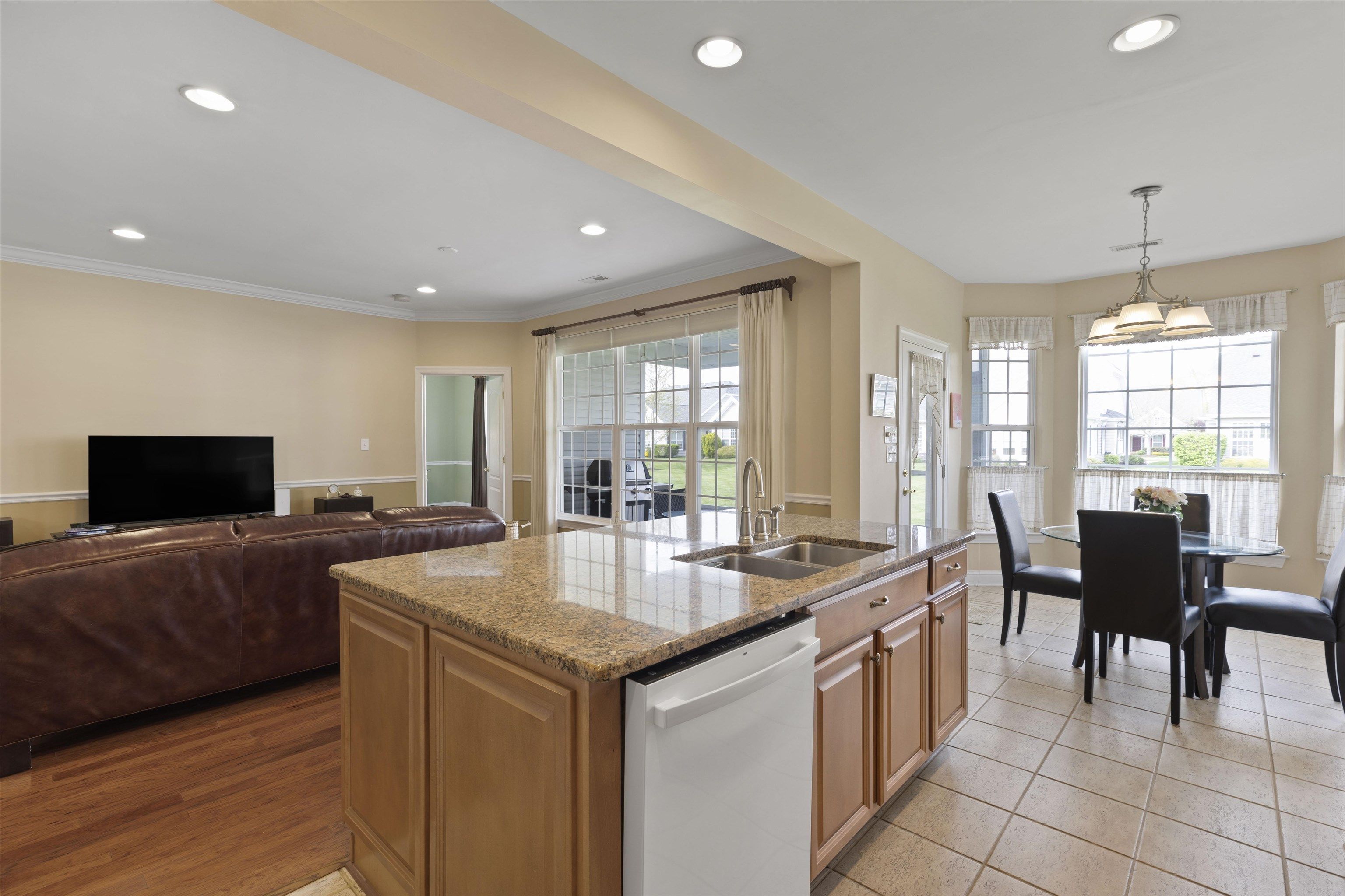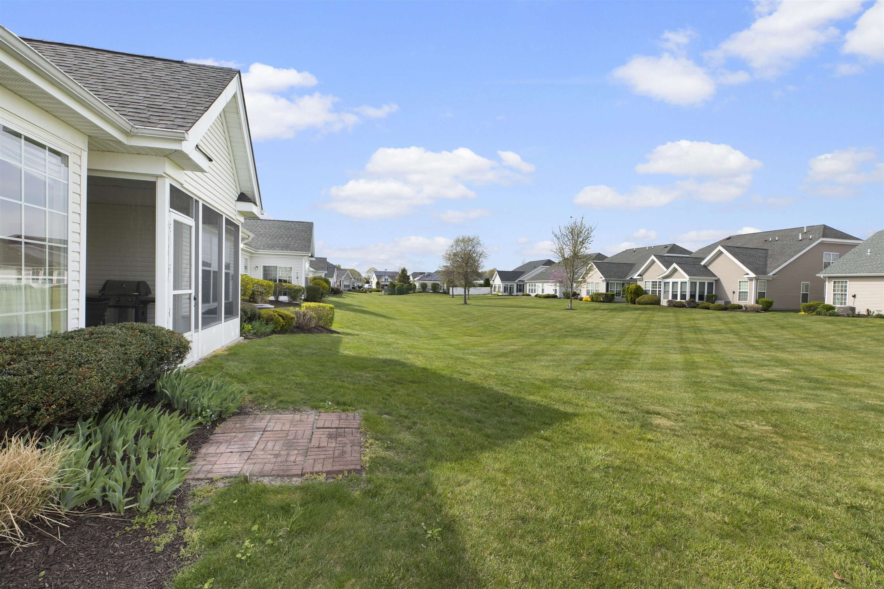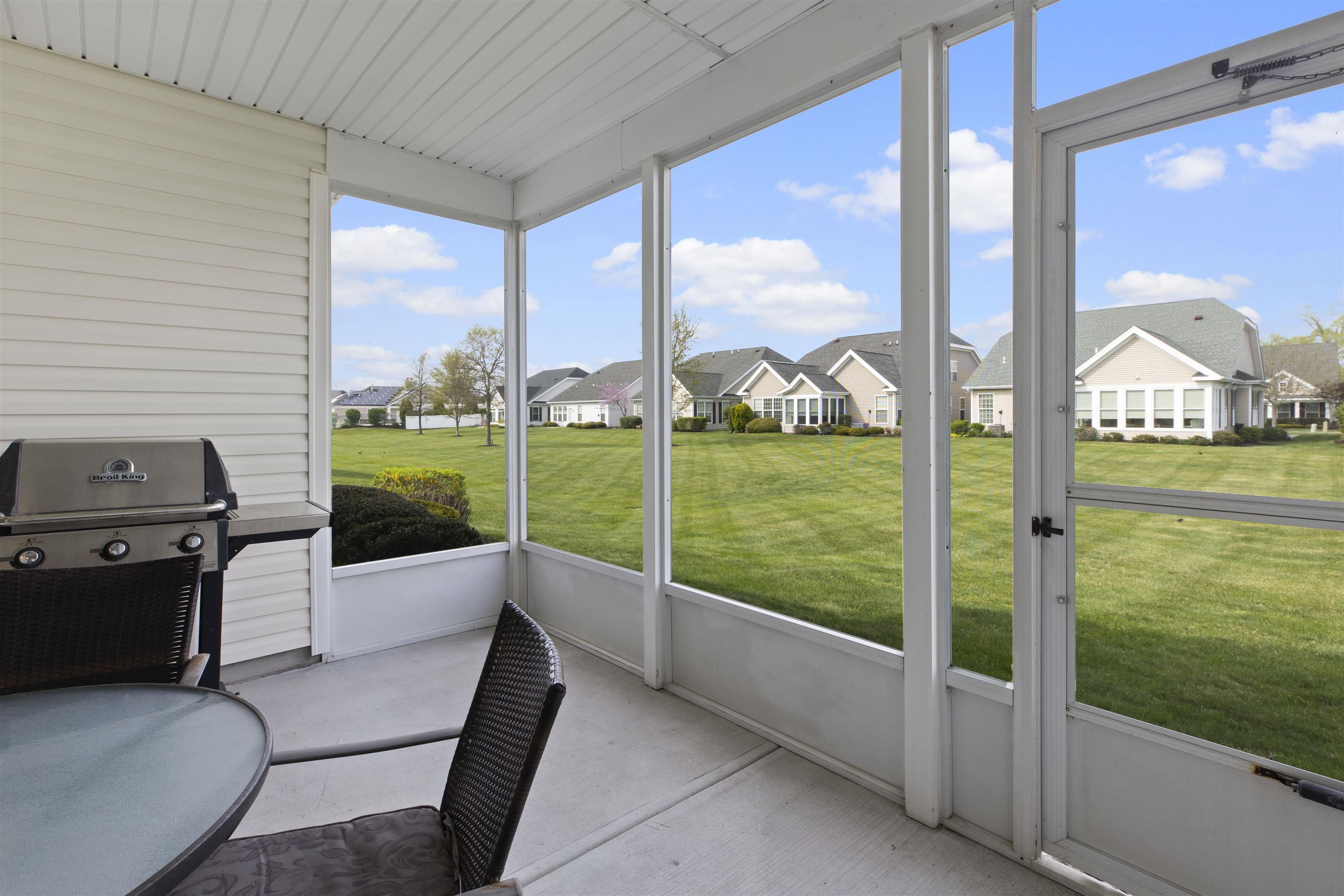 Welcome to The Gatherings at Cape May: Luxury, Comfort, and Community. Discover the perfect blend of elegance and ease in this stunning ranch-style home, situated in the highly desirable Gatherings at Cape May, a vibrant 55+ community. Built in 2006, this meticulously maintained residence offers 2,206 sq. ft. of thoughtful, single-level living space designed for privacy and convenience. As you enter, a grand open foyer sets the tone, flanked by a private den/office/sleeping area, a formal living room, and a separate dining room—perfect for hosting holiday gatherings. The home flows seamlessly into the expansive Great Room, featuring a cozy gas remote control operated fireplace and an open-concept kitchen with dining nook. The bright, inviting screened sunroom serves as a natural extension of the living space, offering a peaceful retreat that opens directly to the backyard. The interior is defined by high, airy ceilings adorned with crown molding and lovely trim work. You’ll find beautiful hardwood and tile flooring throughout—no carpet to worry about! The chef’s kitchen is fully equipped with: Granite counters, classic wood cabinetry and a functional center island. Double wall ovens, range top, and a full suite of appliances. A sunny breakfast nook for casual morning coffee. The Primary Suite is a true sanctuary, boasting a walk-in closet and a luxurious ensuite bathroom with dual sinks, a privacy toilet, and a walk-in shower with a built-in seat and large jetted tub. A generously sized second bedroom and a full guest bathroom with a shower/tub combo ensure comfort for visitors. Spacious Laundry/Mud Room: Located off the garage, featuring a utility sink, washer, and dryer. Two-Car Garage: Includes an extra refrigerator, automatic opener, and ample storage space. Natural gas-forced HVAC and a built-in sprinkler system for easy landscaping. Enjoy a truly maintenance-free lifestyle. The affordable HOA association fee of $224/month covers professional lawn care, landscaping, and snow removal. As a resident, you’ll have access to the community clubhouse, sparkling pool, bocce courts, and a calendar full of social activities. Located just minutes from shopping and dining, and centrally positioned between the historic charm of Cape May and the famous beaches of Wildwood, this home offers the best of the Jersey Shore. Owner occupied, advance notice is needed for showings.