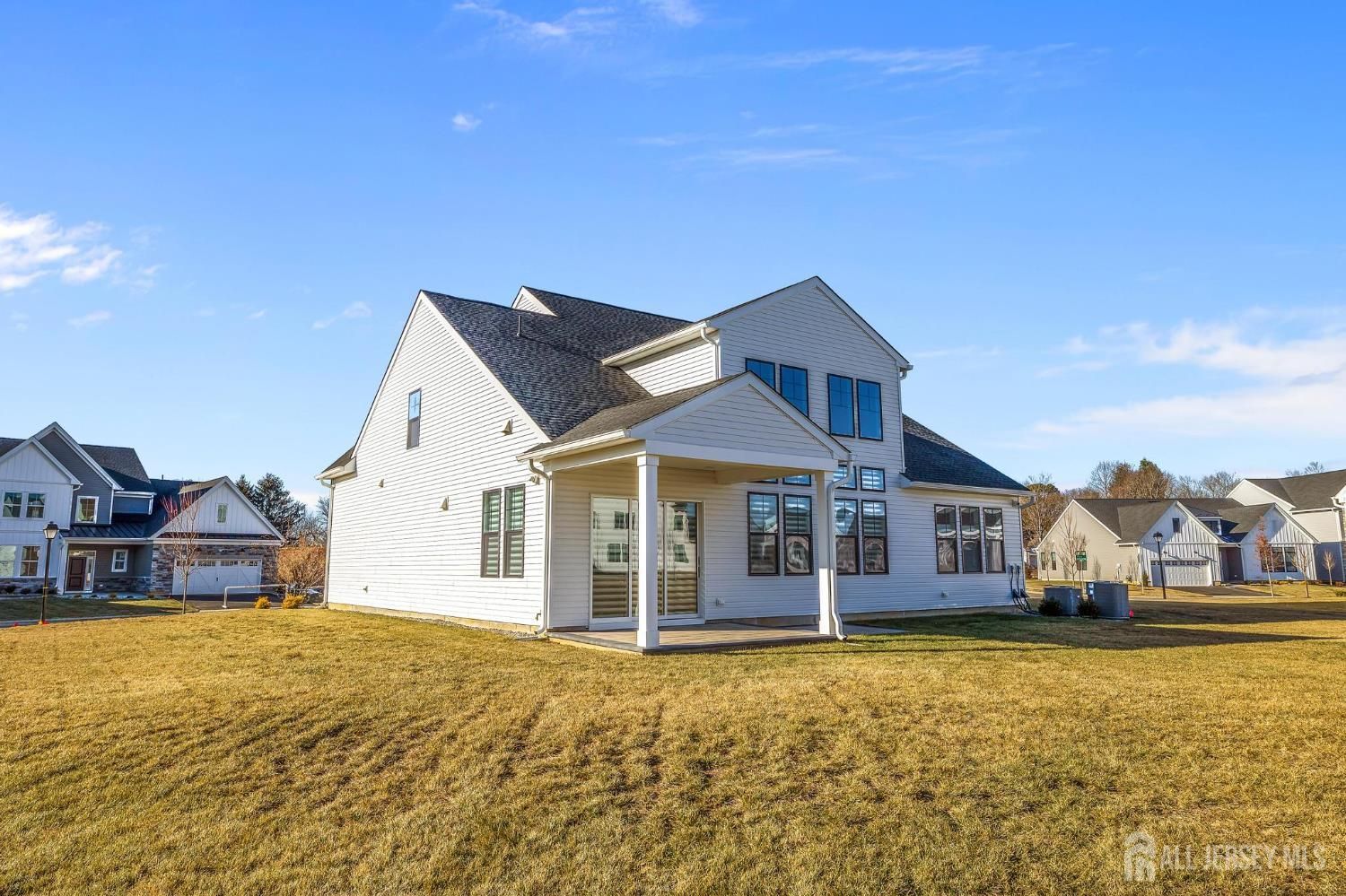 Experience Elevated Living in a Premier 55+ Community! Discover the perfect blend of sophistication and comfort in this stunning new construction featuring the highly sought-after Regency at Cranbury Township. This beautifully designed new-construction, detached home is set on one of the largest lots in the development, spanning an impressive 0.48 acres, and offers elegant living. Featuring 3 spacious bedrooms and 3 full bathrooms, this thoughtfully crafted residence includes an office room on 1st floor, a versatile, huge loft ideal for entertainment, or a guest retreat. Enjoy hardwood flooring throughout the first floor, enhancing the home's open and airy feel. The inviting family room features a gas fireplace, creating a warm and comfortable space for relaxing or entertaining. The gourmet kitchen showcases quartz countertops and a full suite of professional-grade appliances, including a 36 Wolf stainless steel sealed gas range top, Wolf 30 built-in stainless steel gas wall oven, 30 Wolf Professional microwave drawer, wall-mounted hood, 42 Sub-Zero built-in French door refrigerator, and a 24 Cove dishwasher, offering exceptional performance, style, and functionality. The carpeted loft provides a cozy retreat. Additional highlights include Hunter Douglas Pirouette® and Vignette® PowerView® automated window treatments throughout, complete with all remote accessories and gateway, delivering both elegance and convenience. Residents enjoy access to an exceptional HOA lifestyle, featuring a beautiful clubhouse with gathering room, pub coffee room, kitchen, and fitness center. Outdoor amenities include a resort-style pool with covered terrace and spa, tennis courts, bocce ball, pickleball, and putting greens, offering endless opportunities for recreation and social connection. With refined design, premium finishes, and outstanding community amenities, this exceptional home delivers comfort, sophistication, and a vibrant, low-maintenance lifestyle. Close to Princeton Junction Train Station & NJ Turnpike.