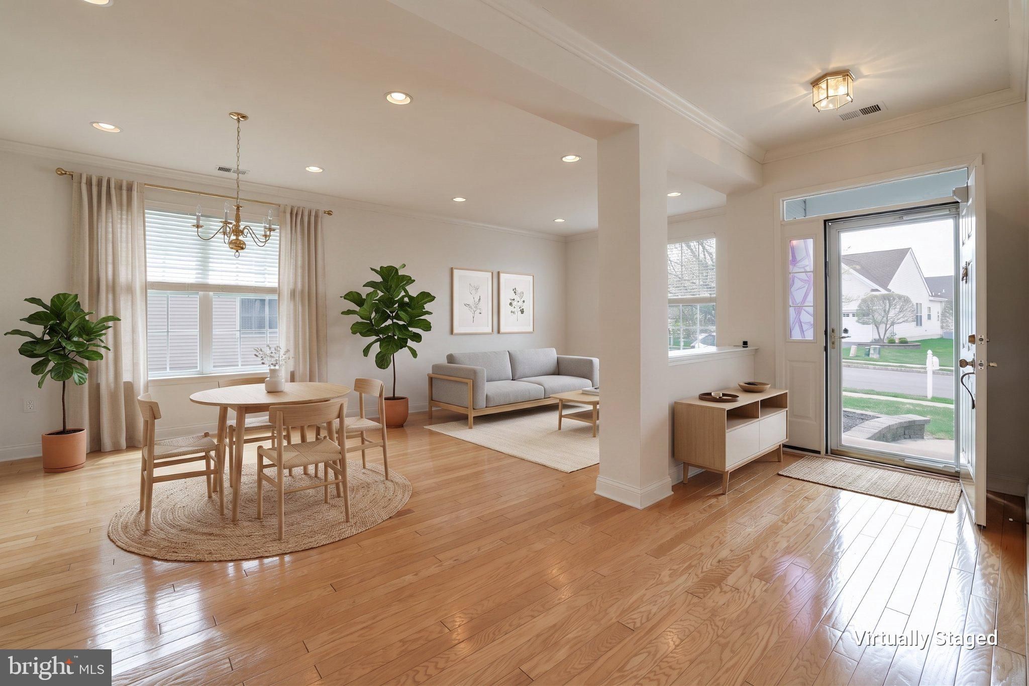 Welcome to resort style living in ''The Mirage'', a gated active adult community. Upon entering this home you will be greeted with beaming hard wood floors throughout and lots of natural light. A large living room/dining room, a beautiful kitchen with white cabinets that is open to the family room , great for entertaining and 2 bedrooms /2 bathrooms. The primary ensuite has a large walk in closet and large bathroom with double sinks and a walk in tiled shower. The location is private and backs up to woods.Enjoy all the amenities of the community including indoor/outdoor pool, large clubhouse, bocce ball, pickleball, fitness center and much more. A short ride to the Barnegat bay beach and downtown restaurants. Close to LBI and the parkway. Come view this beautiful home, it wont last!