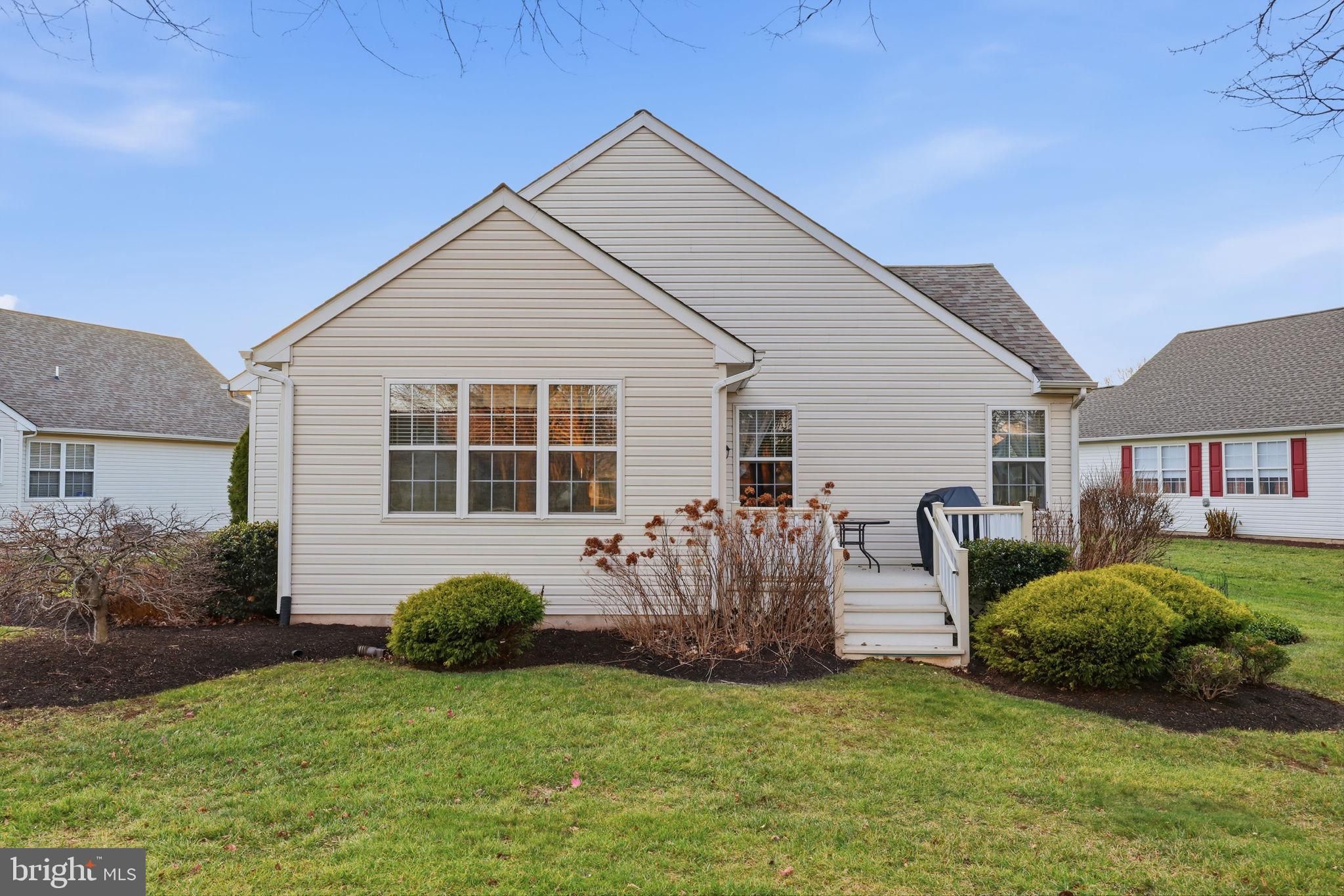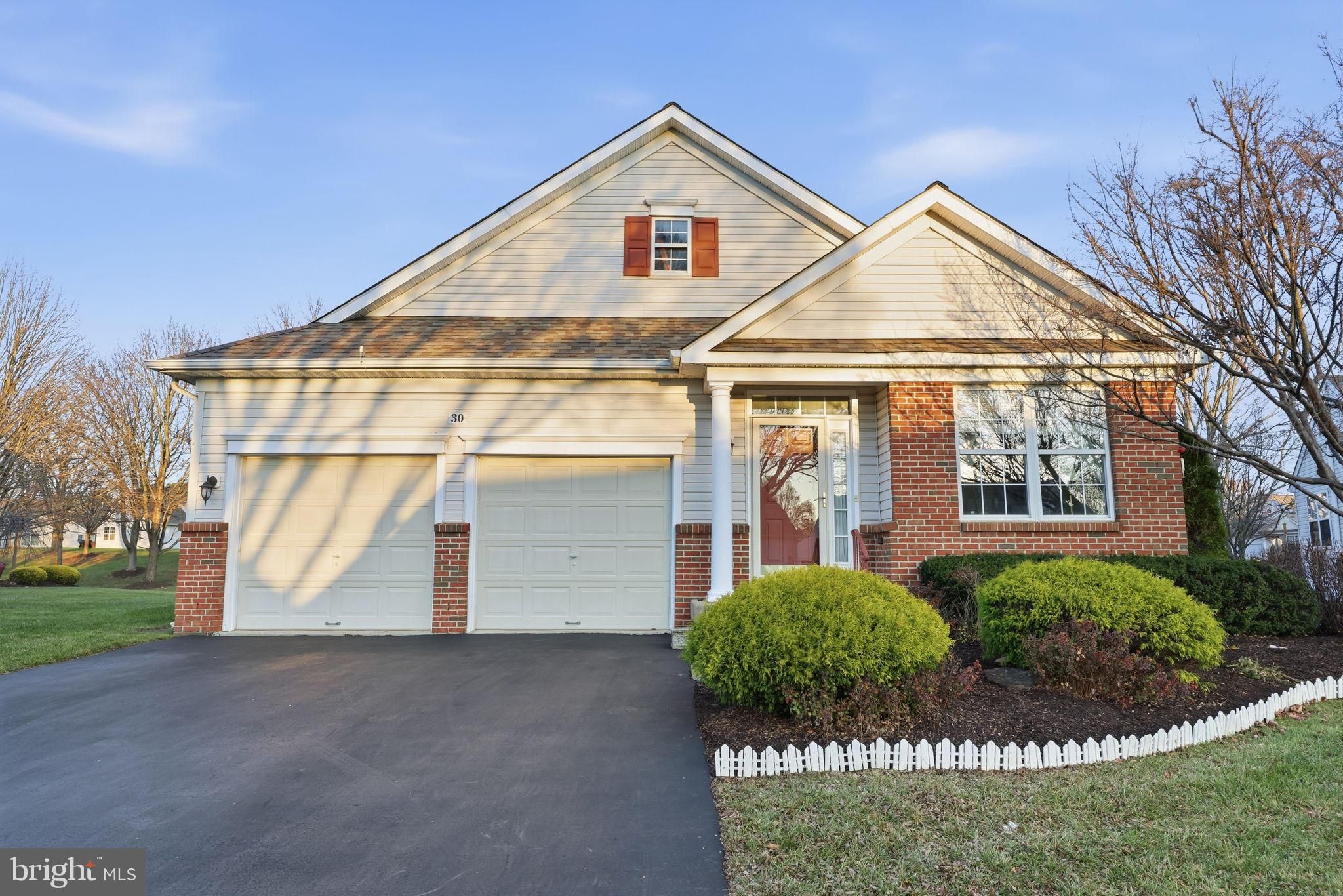 Welcome to 30 Tupelo Lane, offering the comfort and convenience of single-floor living. This sought-after Tyler Model is a single, detached home in the highly desirable 55+ community of Flowers Mill. As you enter, you are greeted by hardwood floors that lead into a versatile office or den. Just beyond the office, you will find a spacious area traditionally used as a combined living and dining room, large enough to host holidays, celebrations, and gatherings of all sizes. The eat-in kitchen features durable Corian countertops, an island with seating overhang, abundant cabinet and counter space, and a generously sized pantry. Open to the kitchen, the bright family room showcases vaulted ceilings and leads to a sunroom, providing all the usable living space you could desire on one level. The sunroom also offers access to a deck overlooking a lot with no homes directly behind you, adding to the sense of privacy. The spacious primary bedroom includes a walk-in closet and an adjoining bathroom with double sinks, stall shower, and a linen closet. You’ll also find a second bedroom, a second full bath, a laundry room, and access to the two-car garage, making unloading groceries simple and convenient. Although everything you need is on the main level, "downsizing" does not have to mean sacrificing storage in this home! An unfinished basement offers extensive storage space and an opportunity to finish the area to suit your needs. Of Note: Roof (2020), Furnace (2022), AC (2021), and an irrigation system. Enjoy the exceptional amenities that Flowers Mill provides, including a recently updated clubhouse, indoor and outdoor pools, brand-new multi-purpose courts for tennis and pickleball, bocce, walking trails, and a full calendar of community events.