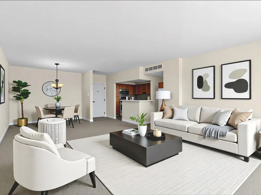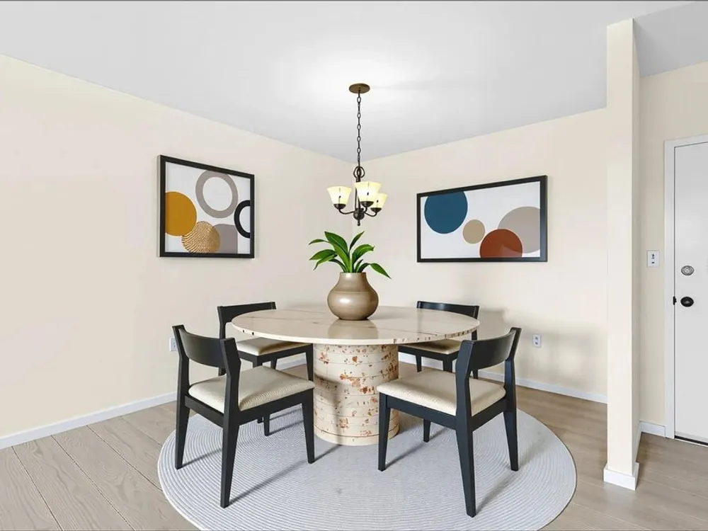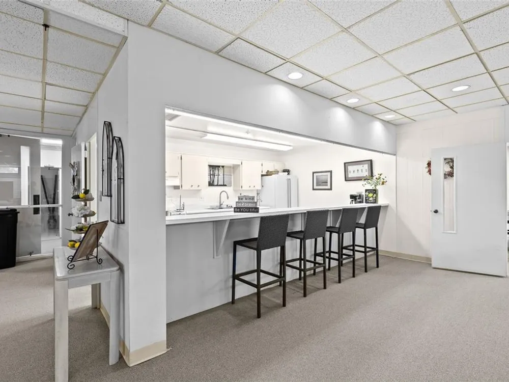 - Living/Dining Room, Open Floorplan, Main Level Primary, Stone Counters, Thermostat