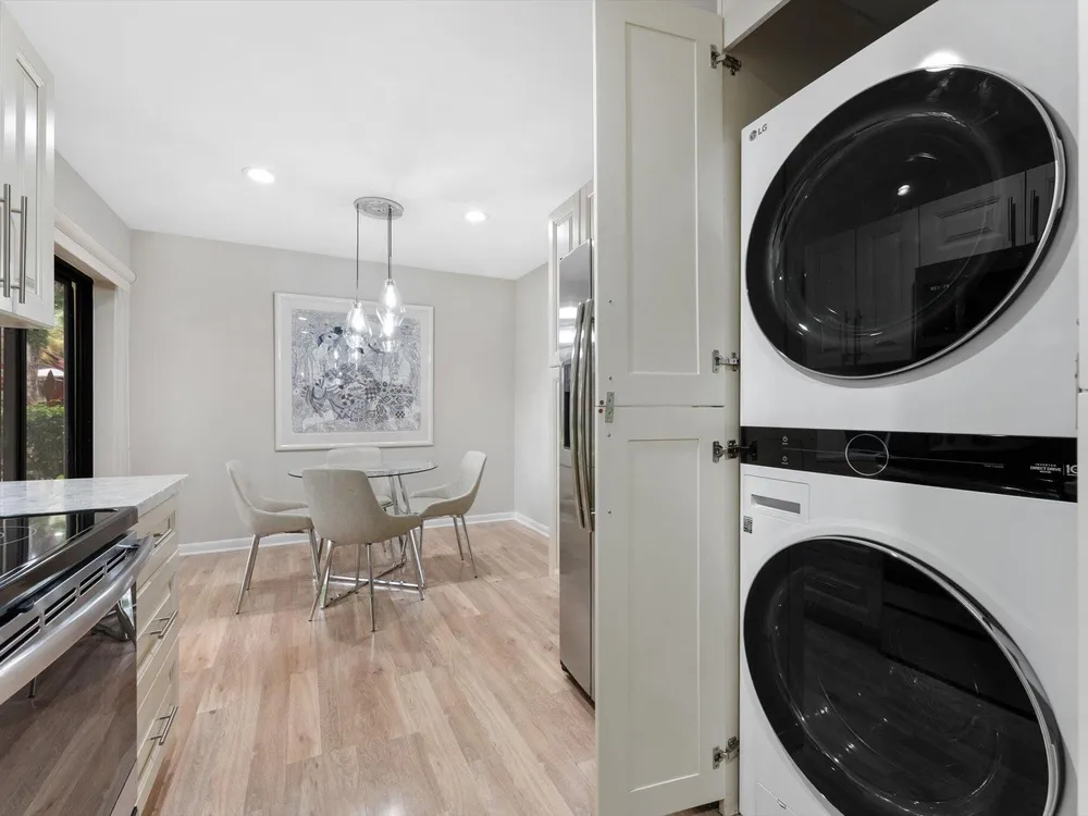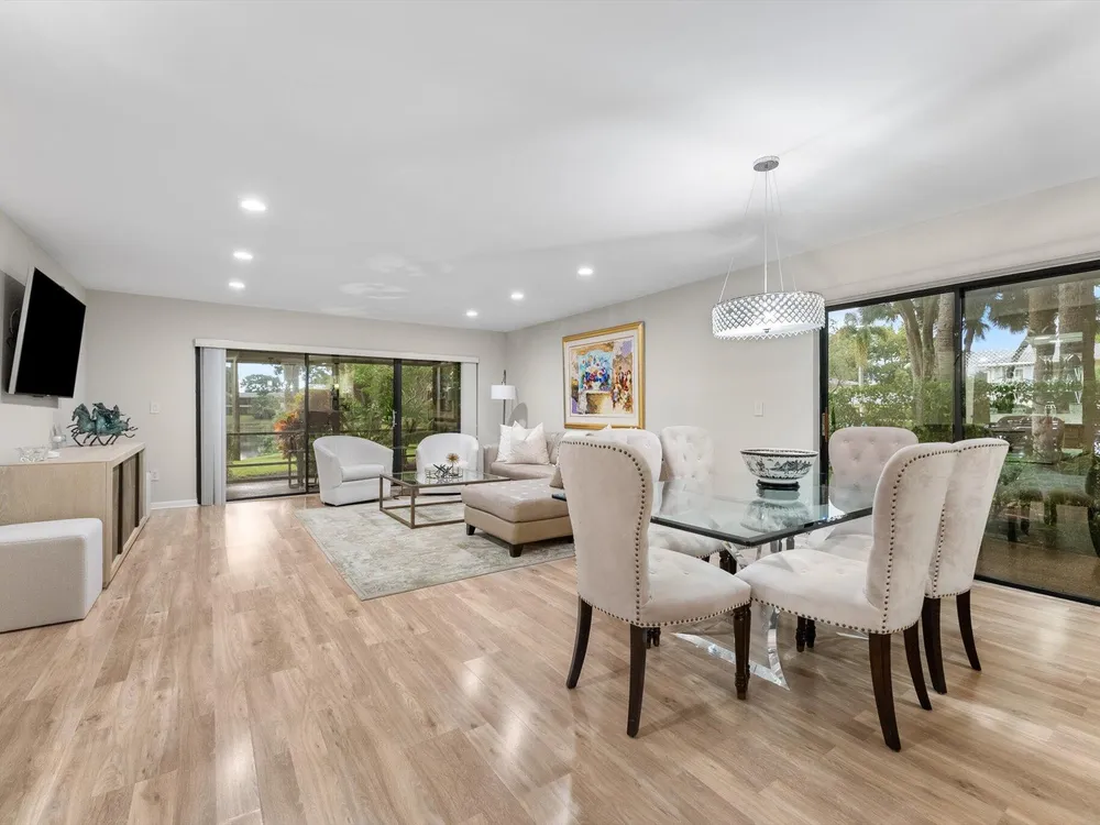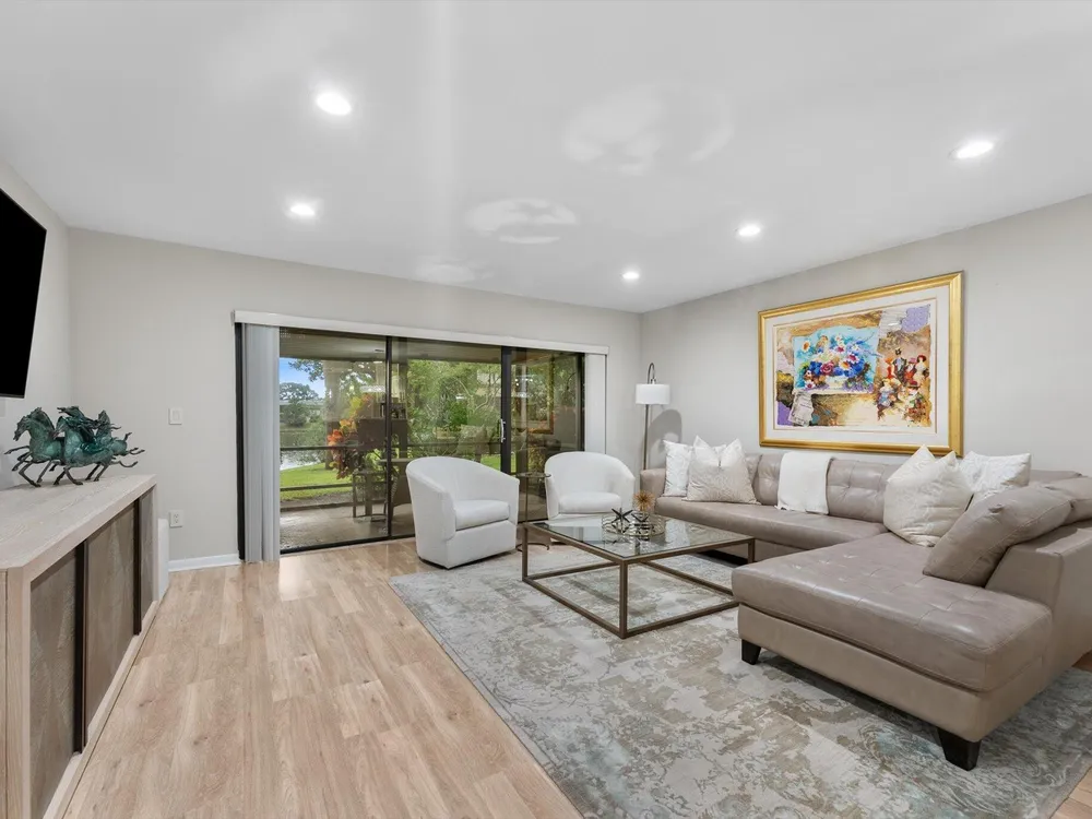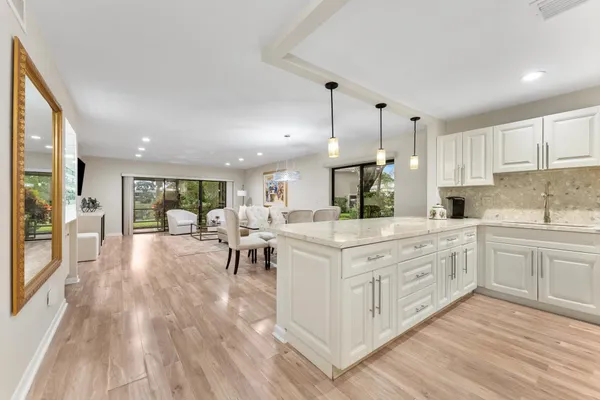Welcome home to this spacious 2-bedroom, 2-bath ground-floor condo offering 1,562 sq ft of well-maintained living space in the prestigious, gated community of Hunters Run in Boynton Beach, FL. This vibrant community features a mandatory golf membership, granting access to premier golf courses and world-class amenities. The open-concept fully remodeled kitchen with dedicated dining area is perfect for entertaining, and recent upgrades include a brand new A/C unit and an LG WashTower Stacked Laundry Center. As a ground-floor unit, this home includes an approved outdoor slab for personal golf cart parking--an ideal convenience for golfers and residents alike.