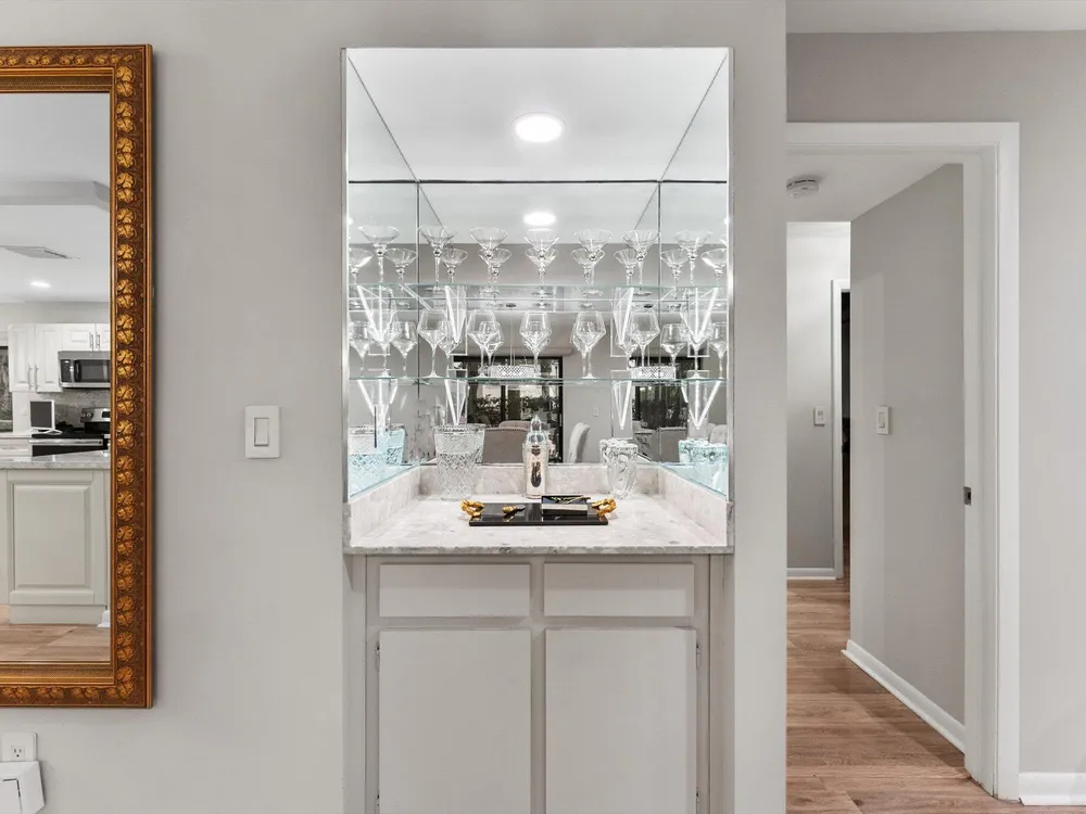 - Bar, Entry Level Living Area, Entrance Foyer, Split Bedrooms, Walk-In Closet(s), Breakfast Area, Living/Dining Room, Eat-in Kitchen, Single Hung Metal Window(s), Primary Downstairs, Separate Shower, Bathtub, Storm Shutters