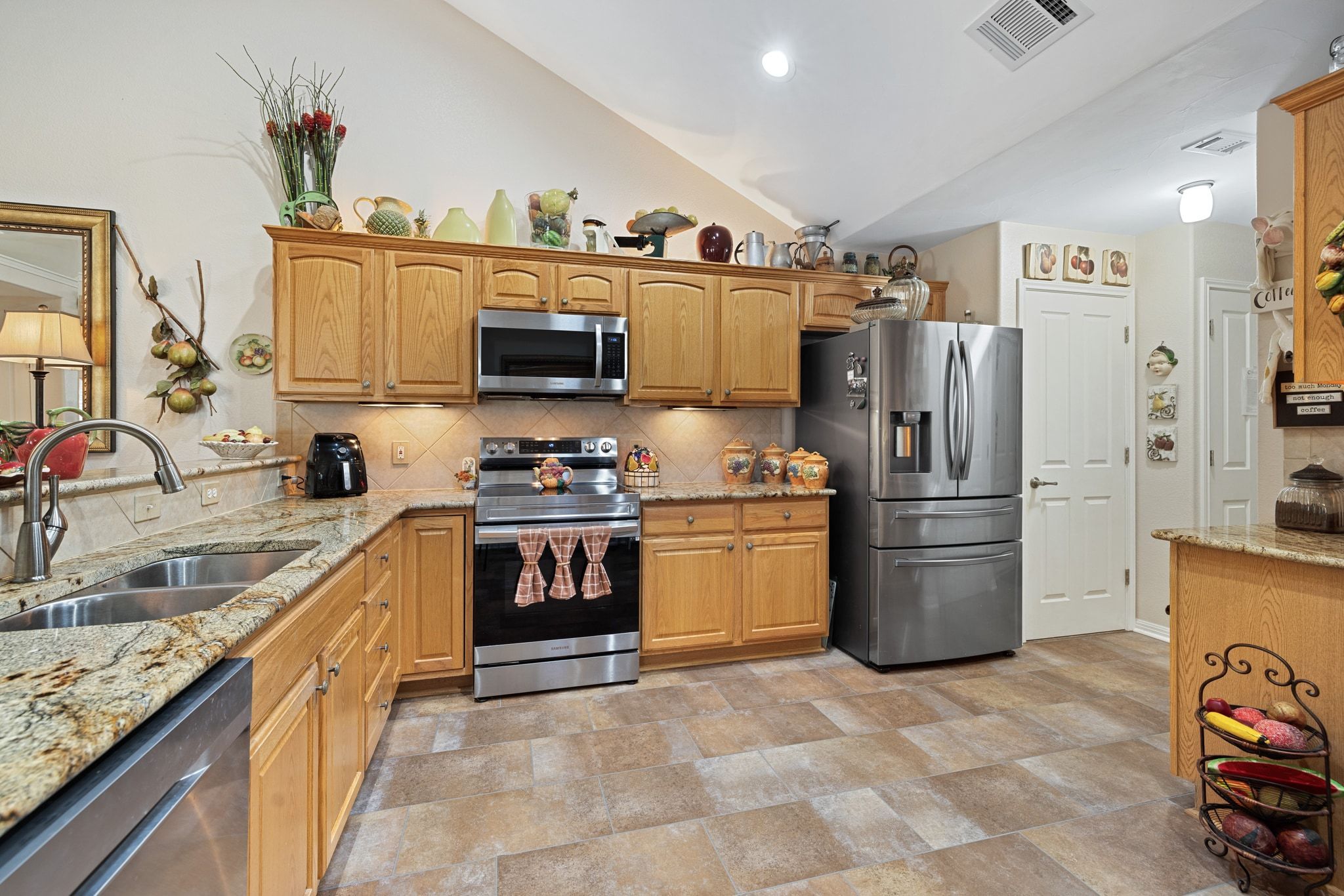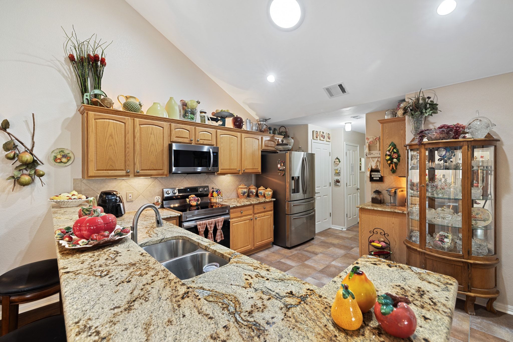 - Breakfast Bar, French Door(s)/Atrium Door(s), Granite Counters, High Ceilings, In-Law Floorplan, Multiple Living Areas, Main Level Primary, Recessed Lighting, Solar Tube(s), Vaulted Ceiling(s), Walk-In Closet(s)