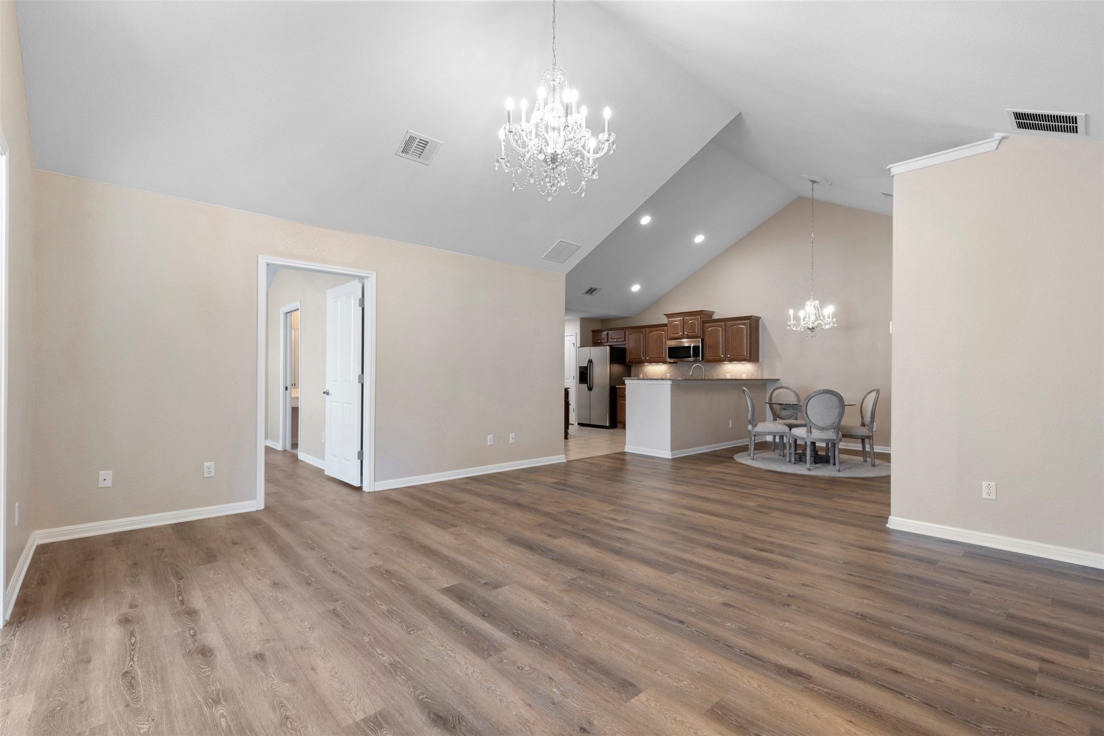 - Breakfast Bar, Built-in Features, Chandelier, French Door(s)/Atrium Door(s), Granite Counters, High Ceilings, Multiple Living Areas, NoInteriorSteps, Open Floorplan, Pantry, Storage, Walk-In Closet(s)