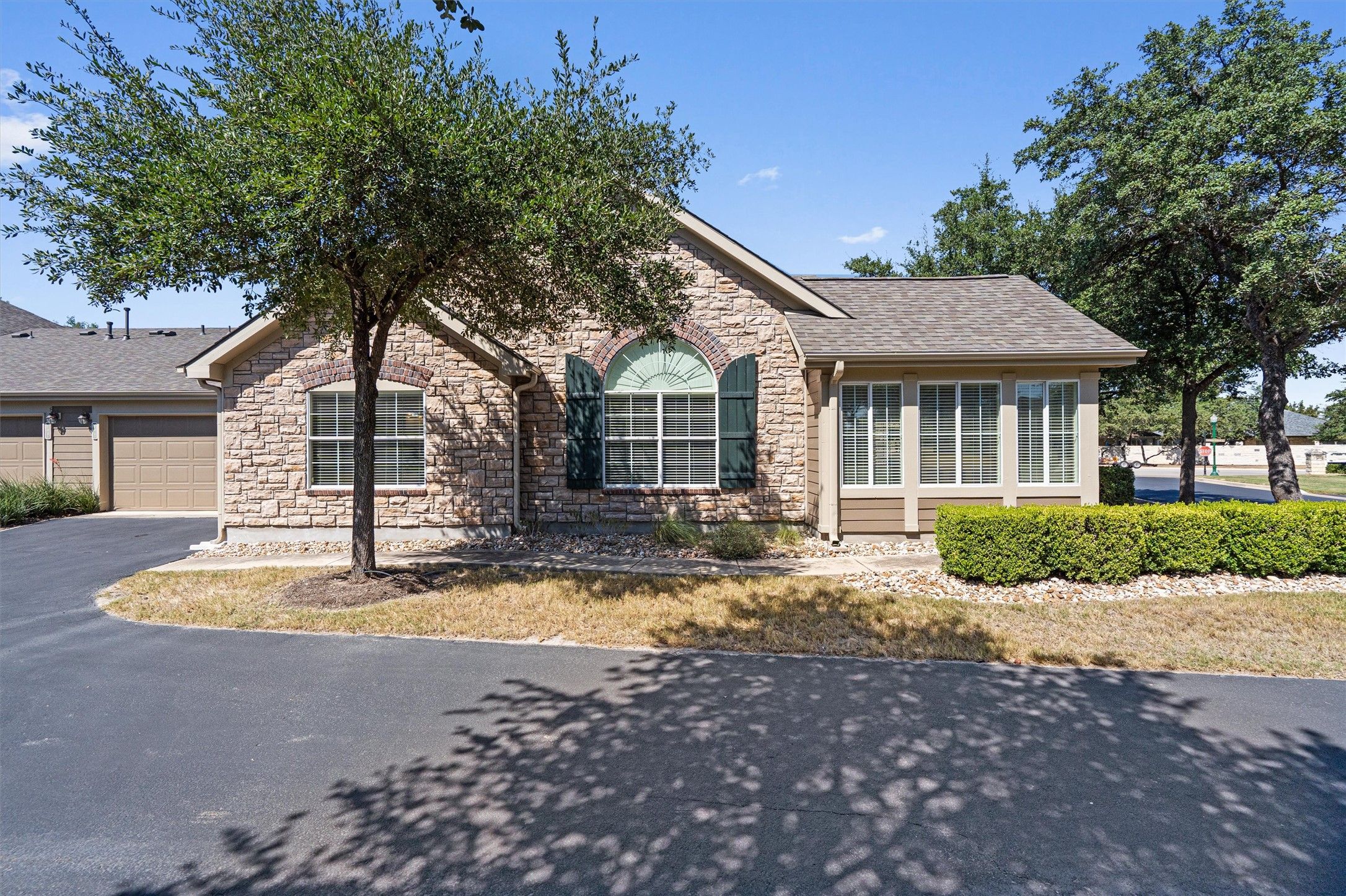 Experience a maintenance-free lifestyle in this beautiful home nestled within the sought-after 55-and-better community of The Oaks at Wildwood. The HOA takes care of the details including insurance, water, trash, exterior maintenance on the unit, & lawn care for all HOA areas — allowing you to focus on the finer things in life. Designed with functionality and modern comfort in mind, this residence features an open floor plan highlighted by high ceilings and abundant natural light. The inviting living area flows seamlessly into the kitchen, where granite countertops, a breakfast bar, rich stained cabinetry with pull-out drawers, sleek black appliances, and a pantry make both everyday meals effortless. Music lovers will appreciate the dedicated Piano Room, a bright and open space perfect for showcasing your piano or creating a relaxing retreat. This versatile room adds warmth and charm to the home’s thoughtfully designed layout. The primary suite offers a peaceful retreat with an ensuite bath showcasing dual vanities, a walk-in shower with built-in seating, and a generous walk-in closet. A second bedroom and full bath accommodate guests comfortably, while a versatile office space can easily serve as a third bedroom to fit your lifestyle needs. The laundry room includes built-in cabinetry and there’s an additional room perfectly suited for storage. Outside, mature trees and beautifully landscaped grounds create a welcoming curb appeal. With the HOA maintaining the exterior, you’ll have more time to enjoy the community’s exceptional amenities — a clubhouse, heated pool for year-round enjoyment, fitness center, and picturesque walking trails. Ideally situated just a short drive from downtown Georgetown, the airport, and a variety of shopping, dining, and recreation options, this home also offers easy access to I-35, TX-130, and State Highway 29 for seamless travel. Discover the perfect balance of elegance, and relaxation — a home where every day feels like a retreat.