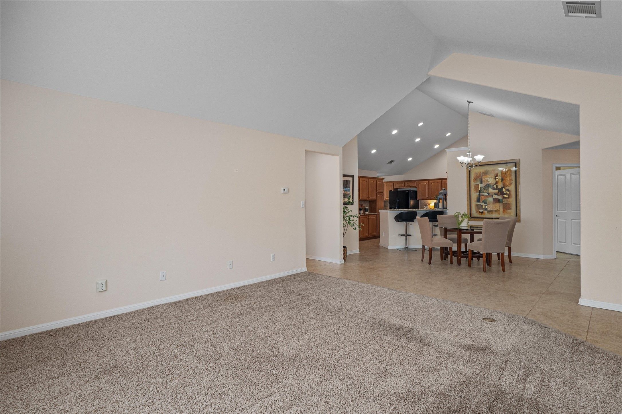- Breakfast Bar, Chandelier, Double Vanity, French Door(s)/Atrium Door(s), Granite Counters, High Ceilings, Multiple Living Areas, Main Level Primary, NoInteriorSteps, Open Floorplan, Pantry, Recessed Lighting, Storage, Vaulted Ceiling(s), Walk-In Closet(s)