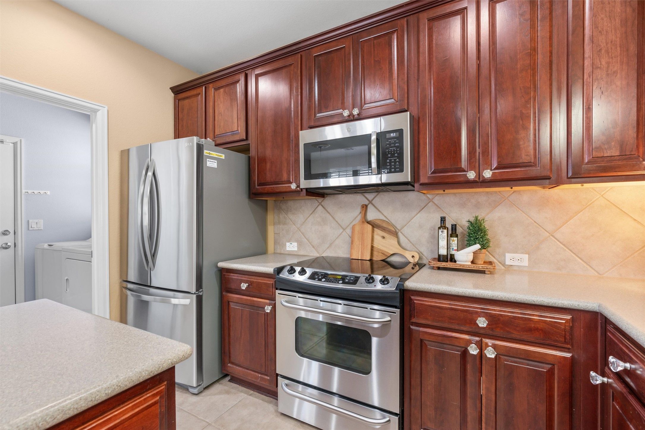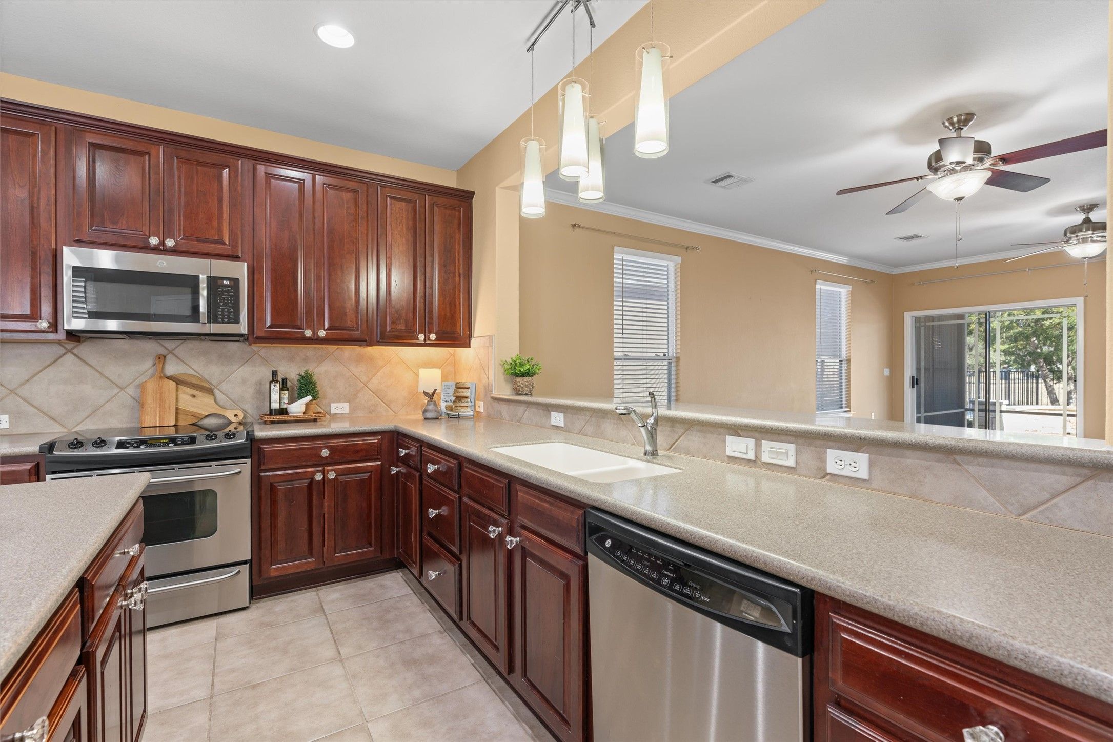- Dishwasher, Disposal, Microwave, Oven, Range, Stainless Steel Appliance(s)