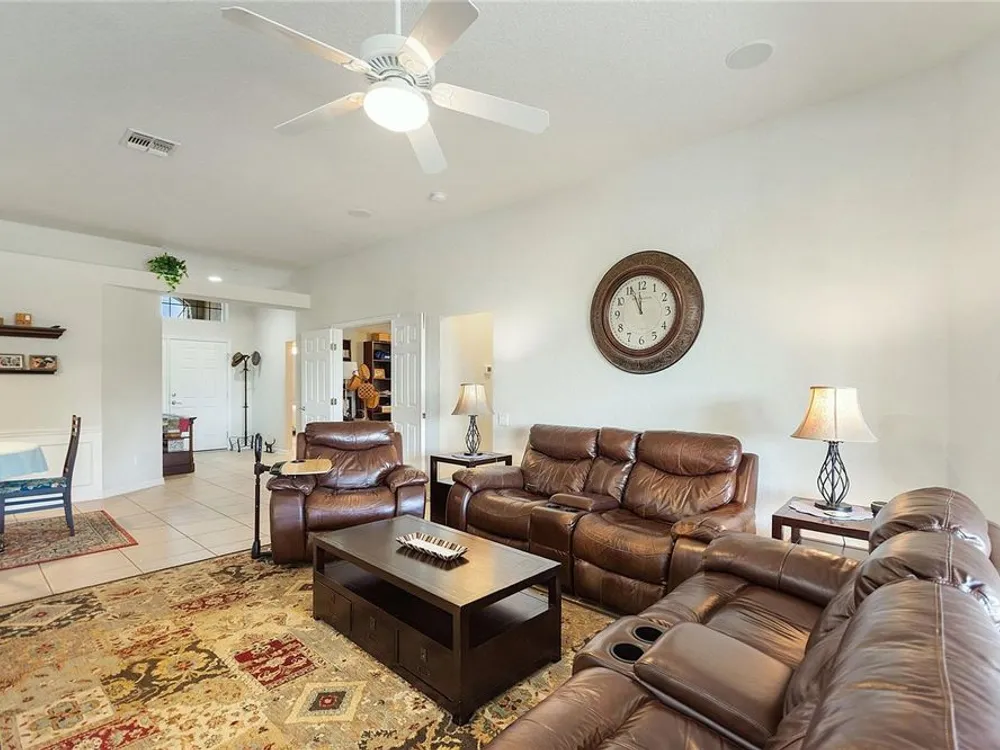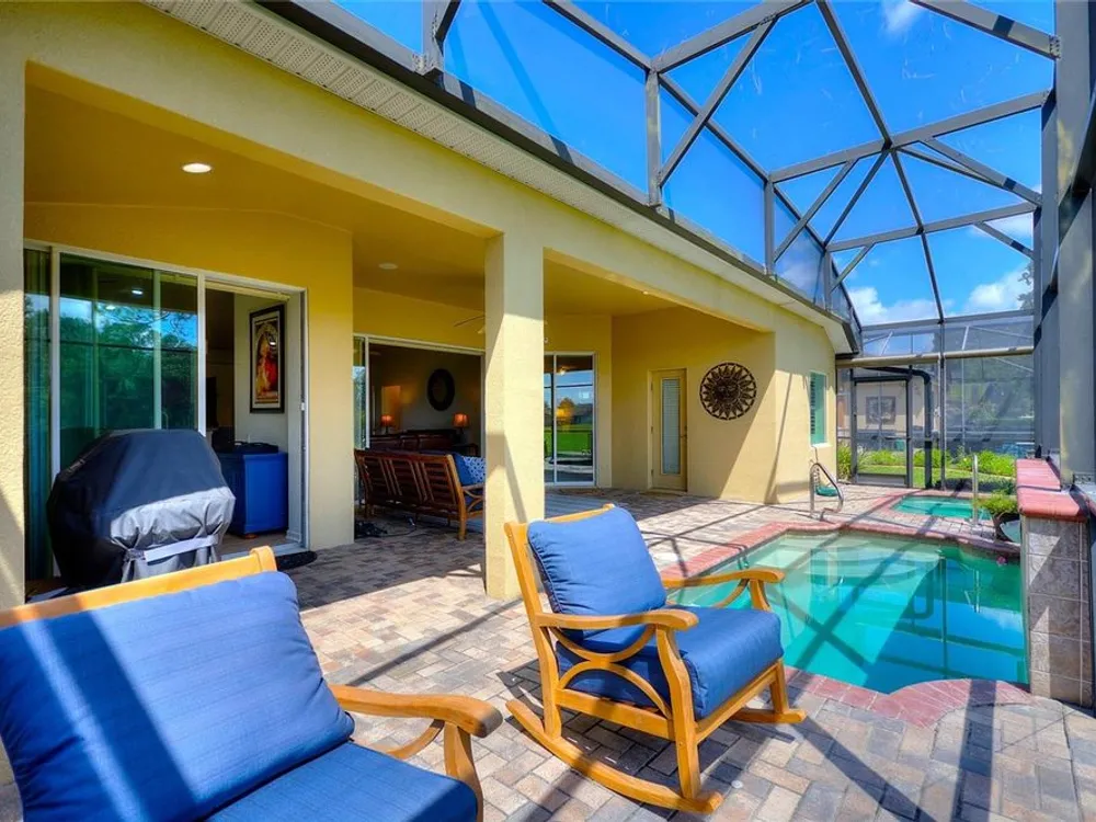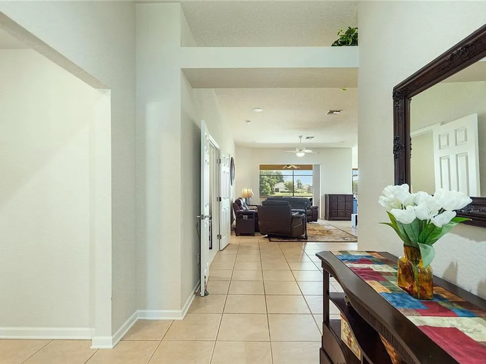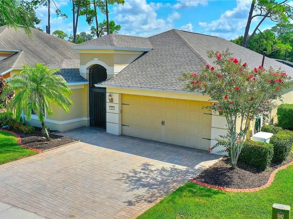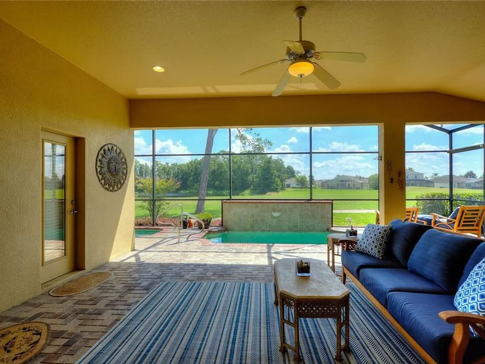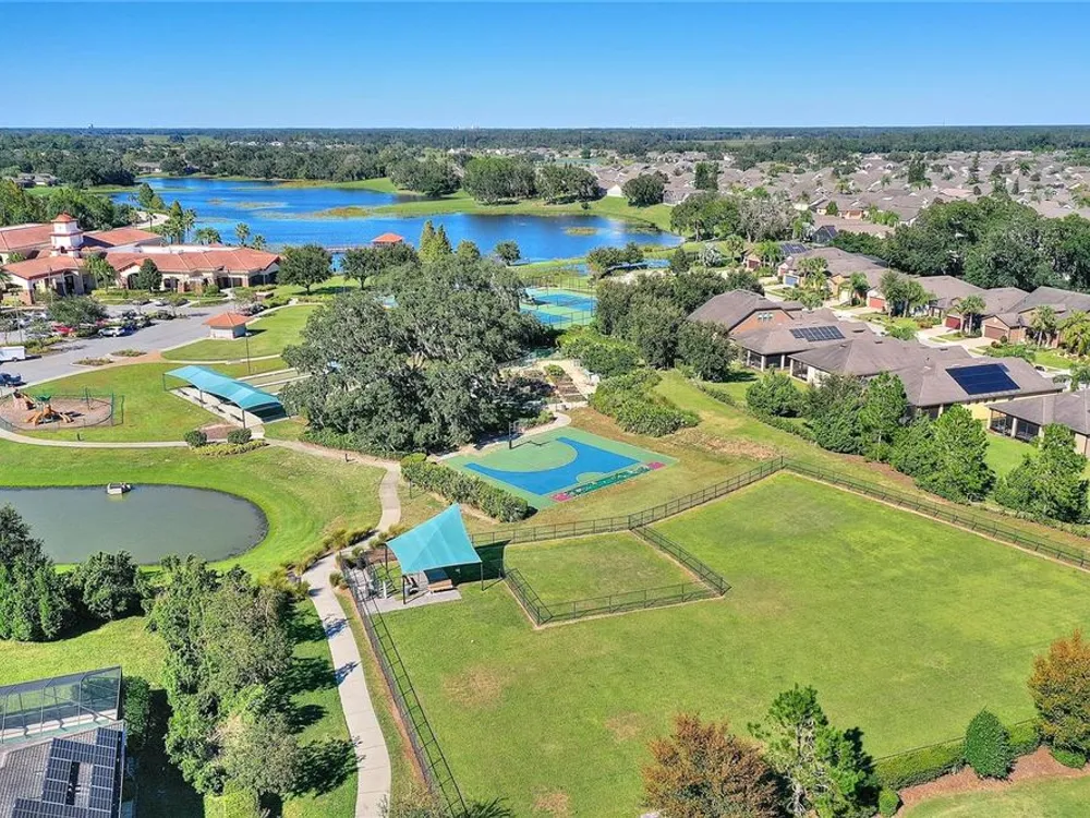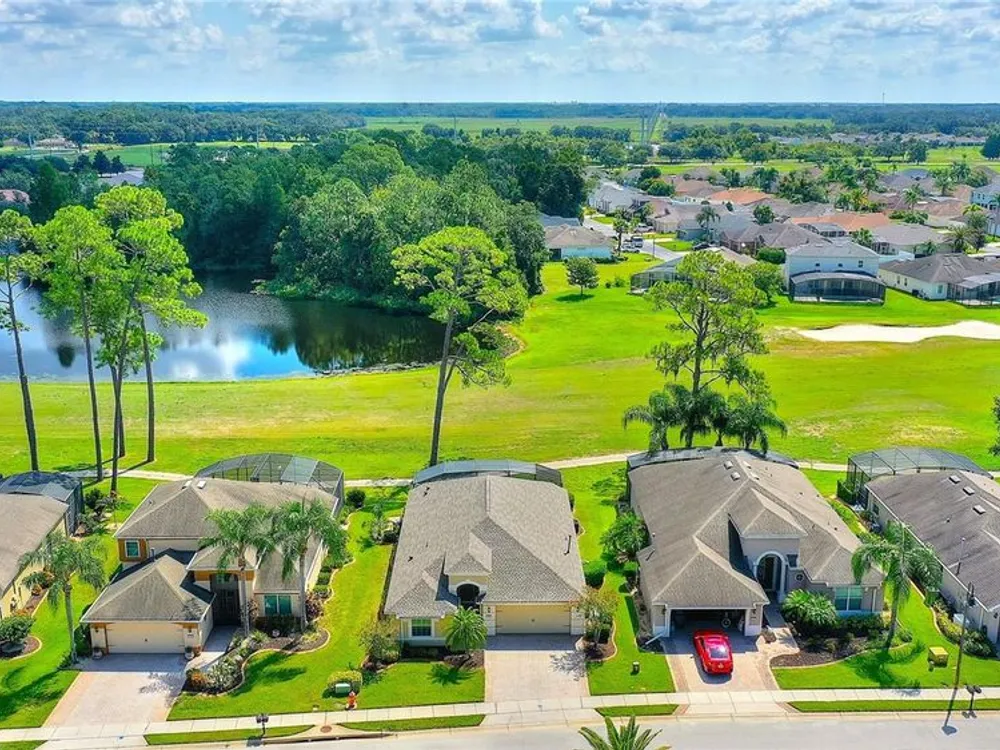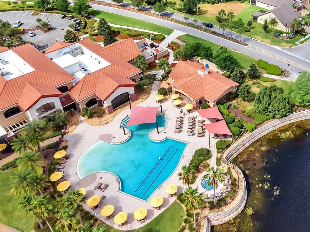 Welcome home to Del Webb Orlando! Truly exceptional 55+ resort-style living located in the gated golf community of Ridgewood Lakes. Convenient to shopping, hospital, restaurants, theme parks, airport and just a little over an hour to some of the world's most beautiful beaches! Just what you have been waiting for! PREMIUM LOT on GOLF COURSE with LAKE VIEW, POOL & SPA!! While away the hours sipping your beverage of choice on the part covered, part open screened lanai while overlooking your gorgeous pool and spa. Enjoy the golf course/lake view and the beautiful wildlife while taking in the serene sunrise. This 2 bedroom 2 bath plus office/den (easy conversion to 3rd bedroom) will impress with it's screened front porch and grand entry. Feel the space of the soaring ceilings and sliding glass pocket doors that open to the ample lanai. Gourmet kitchen with WOLF Gas range, granite countertops, large pantry and cozy dinette off the kitchen to savor your morning coffee while taking in the view! Rich wood cabinetry with rollouts. Open concept Gathering Room and Formal Dining Room. Spacious Primary Suite Respite featuring with walk in closet, glass slider to lanai, ensuite bath with garden tub, and separate shower. Split bedroom concept offering plenty of privacy for you and your guests. Interior laundry room with sink and large closet pantry,. Tons of upgrades including PLANTATION SHUTTERS, EXPANDED PAVER DRIVEWAY, GENERAC GENERATOR, NEW ROOF 2025, NEW AC 2023, NEWER CARPET! LAWN MAINTENANCE INCLUDED IN HOA FEE! Bringing a furry friend? You will love the dog park with separated areas for large and smaller pups, complete with a doggie water station! The resident owned Montecito Clubhouse is a state-of-the-art facility with 30,000 square feet of amenities. Complete with fitness center, indoor walking track, dance/aerobic studio, ballroom, craft rooms, resort-style outdoor pool, and even an indoor pool and hot tubs! Grab a bite to eat and your favorite beverage at La Tapenade Tavern where you can also enjoy live music, karaoke, trivia, and bingo Wednesday - Saturday. Looking for more activities? Try your hand at pickleball, shuffleboard, tennis, bocce ball, or basketball. How about a relaxing day playing golf at Ridgewood Lake's White Heron Golf Club? Take a stroll along the picturesque walking paths by the beautiful lakes or try your luck hooking a fish on the fishing dock. 24/7 GUARDED GATE ACCESS. BONUS - This community has NO CDD! You're just minutes away from everything you need. Call today to schedule your private showing!