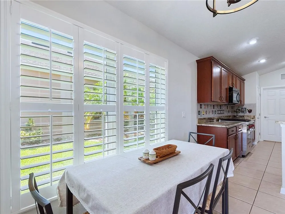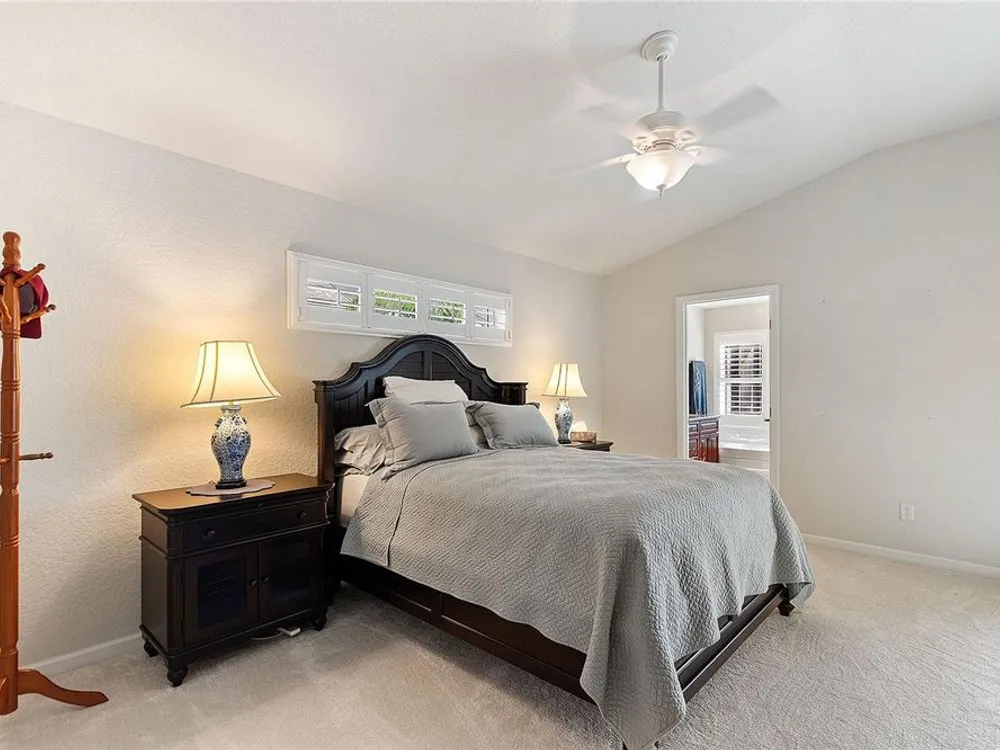 - Ceiling Fan(s), Eat-in Kitchen, High Ceilings, Living/Dining Room, Open Floorplan, Main Level Primary, Split Bedrooms, Stone Counters, Walk-In Closet(s), Window Treatments