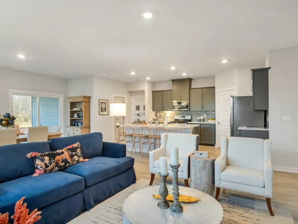 The Clifton floorplan is a beautifully crafted single-story home offering 1,796 sq ft of comfortable living, perfect for families or individuals seeking convenience and style. Featuring 3 bedrooms and 2 bathrooms, it balances private retreats with shared spaces. The spacious primary bedroom includes a large walk-in closet and a modern en-suite bathroom, creating a relaxing oasis. At the heart of the home is the open-concept kitchen, boasting elegant quartz countertops that combine sophistication with everyday functionality. The kitchen flows seamlessly into the dining area and great room, ideal for family gatherings or entertaining. With ample cabinet space and modern appliances, this kitchen is both practical and beautiful. Two additional bedrooms are generously sized, perfect for guests, a home office, or hobbies. A 2-car garage offers plenty of storage and easy home access. Equipped with smart home technology, the Clifton lets you control lighting, security, and climate effortlessly. Designed for today’s lifestyle, it combines style, functionality, and advanced tech, making it the perfect home in Nexus South, Gallatin, TN.