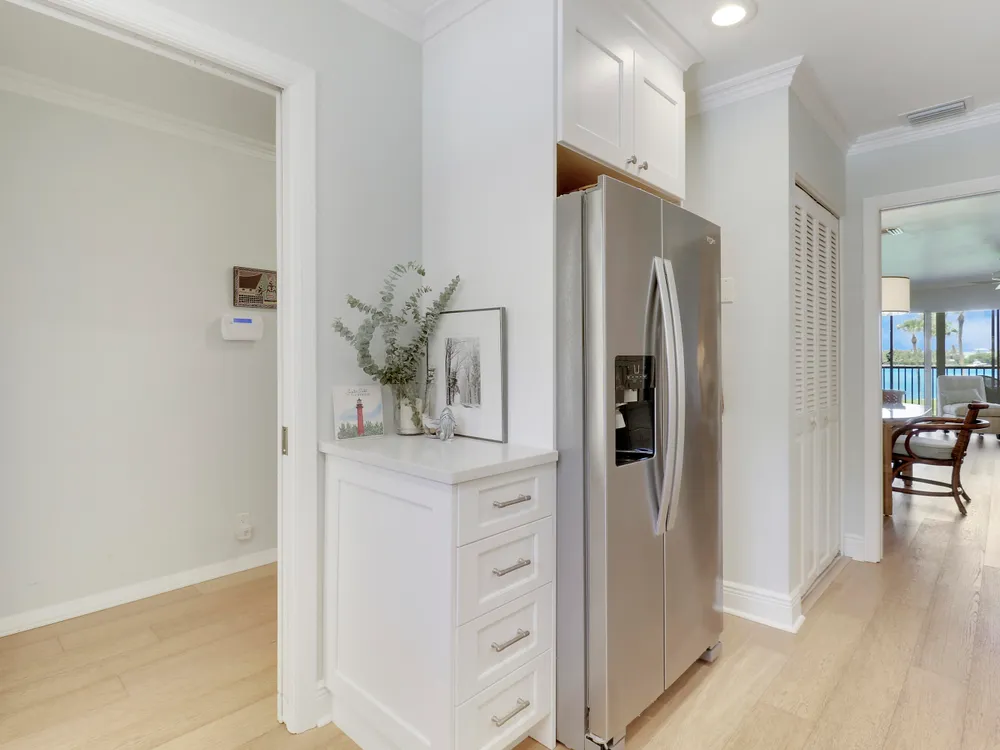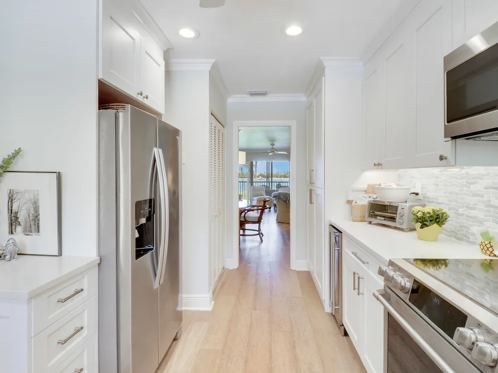 Enjoy the best of coastal living in this beautifully updated 2-bedroom, 2-bathroom condominium, located in a desirable 55+ community offering over 1,200 feet of direct Intracoastal water frontage--the most from Tequesta to Miami. This residence seamlessly blends modern upgrades with peaceful surroundings and exceptional amenities. Inside, you'll find a fully renovated kitchen featuring quartz countertops, high-end appliances, and white cabinetry with convenient pull-out shelves--ideal for both everyday living and entertaining. New wood flooring throughout adds warmth and elegance, while the spacious primary bedroom serves as a private retreat with sliding glass doors opening to a tiled and screened-in patio for comfort and privacy. Additional updates include all new ductwork and a new A/C