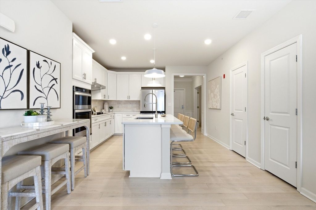 Premiere top-floor unit in the esteemed, pet friendly 55+ community at Martins Landing - WITH A RARE DEEDED GARAGE PARKING SPACE! This unit is JUST 1 YEAR YOUNG - Unexpected relocation makes it ready for a quick close! This "Franklin" style unit features numerous upgrades including the gourmet kitchen package w/generous island, wall oven & cooktop, as well as cabinetry, countertops & flooring upgrades! Desirable open kitchen/living room concept w/sliders to your private balcony where you'll enjoy your morning coffee. The versatile floor plan allows for a den/office with French doors for added privacy. The spacious & luxurious primary ensuite boasts a large double vanity, separate shower & walk-in closet. The second bedroom & private bath are ideal for guests. You'll appreciate the designated laundry room. Assoc Amenities are ideal for a carefree, active lifestyle including a clubhouse, fitness center, outdoor grilling stations, & walking trails. Showings start at the OH Fri. Feb. 27!