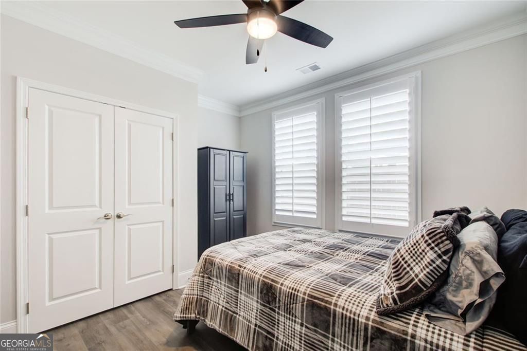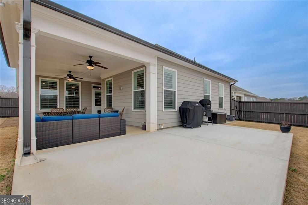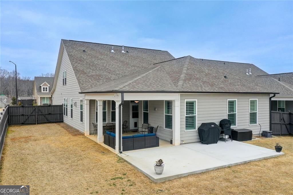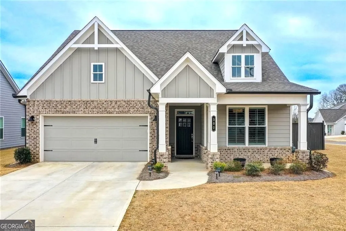 Best value in the community-offering more square footage, upgrades, and a rare fenced corner lot compared to similarly priced homes. Built in 2024, this better-than-new 4BR/3BA home features a highly desirable layout with a main-level primary suite and a private upstairs guest retreat with loft-ideal for flexible living, guests, or work-from-home space. The bright, open-concept design is centered around a beautifully upgraded kitchen with a large island, double convection ovens, 5-burner gas cooktop, soft-close cabinetry, and abundant storage-all flowing seamlessly into the spacious family room and dining area. Step outside to a covered patio designed for year-round enjoyment, complete with ceiling fans, TV wiring, and a natural gas hookup, overlooking a level, fenced backyard-one of the more usable and private lots in the neighborhood. The main-level primary suite offers a spa-like bath with frameless glass, stepless entry shower, custom tile, and a professionally designed walk-in closet. Additional upgrades include plantation shutters throughout, wide crown molding, custom pantry and closet systems, and added cabinetry in the mudroom and laundry room. Enjoy true low-maintenance living with HOA-covered weekly landscaping and trash service, along with community amenities including a clubhouse, pickleball courts, and dog park. Rare opportunity: the community currently allows ownership under age 55 (below occupancy cap), offering flexibility not often available in similar neighborhoods. Conveniently located near shopping, dining, and just minutes to Canton, Woodstock, and Alpharetta. Seller offering $5,000 toward closing costs or interest rate buy-down with acceptable offer.