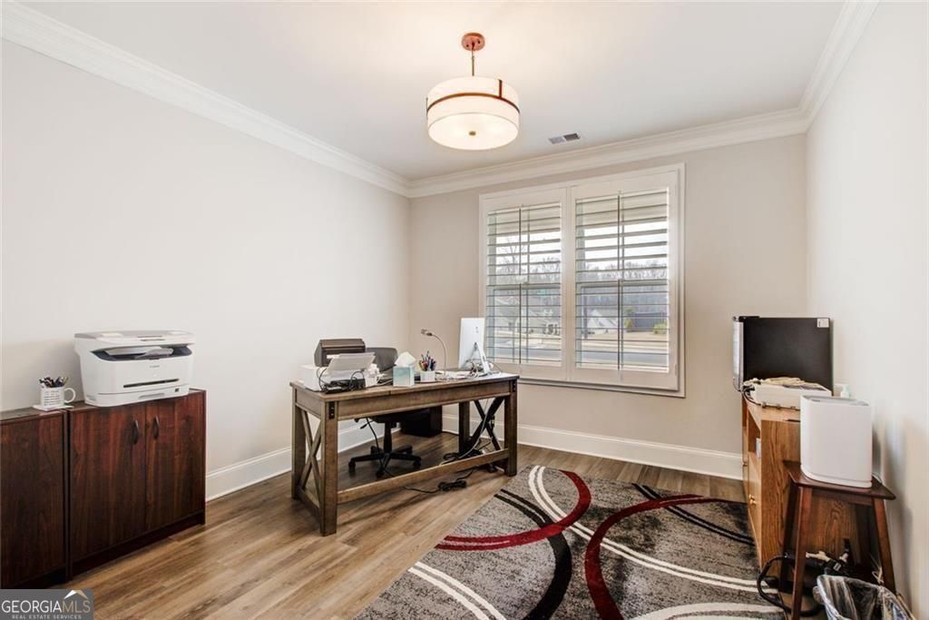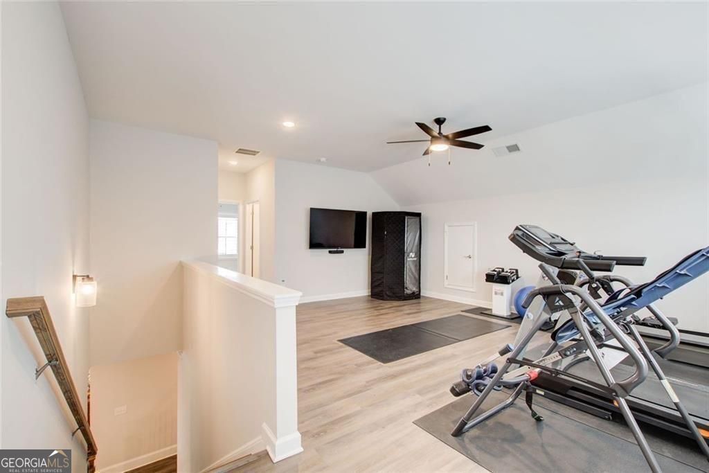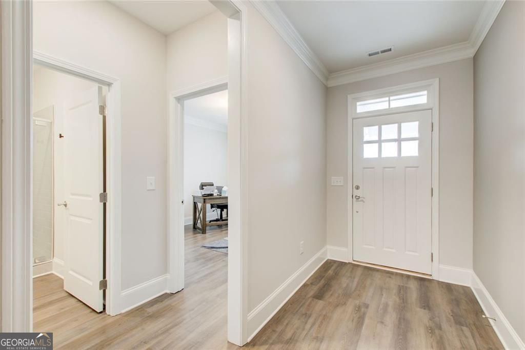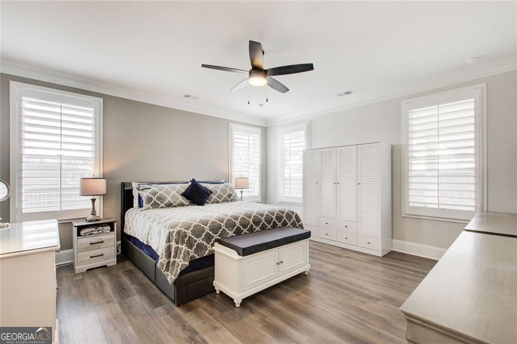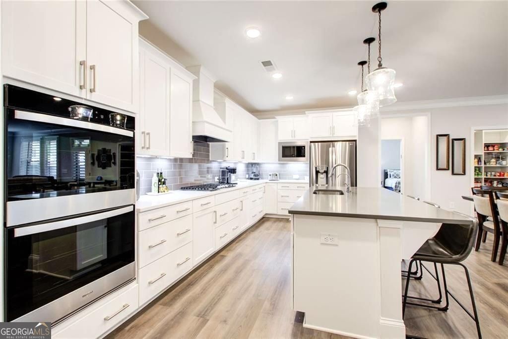 Best value in the community-offering more square footage, upgrades, and a rare fenced corner lot compared to similarly priced homes. Built in 2024, this better-than-new 4BR/3BA home features a highly desirable layout with a main-level primary suite and a private upstairs guest retreat with loft-ideal for flexible living, guests, or work-from-home space. The bright, open-concept design is centered around a beautifully upgraded kitchen with a large island, double convection ovens, 5-burner gas cooktop, soft-close cabinetry, and abundant storage-all flowing seamlessly into the spacious family room and dining area. Step outside to a covered patio designed for year-round enjoyment, complete with ceiling fans, TV wiring, and a natural gas hookup, overlooking a level, fenced backyard-one of the more usable and private lots in the neighborhood. The main-level primary suite offers a spa-like bath with frameless glass, stepless entry shower, custom tile, and a professionally designed walk-in closet. Additional upgrades include plantation shutters throughout, wide crown molding, custom pantry and closet systems, and added cabinetry in the mudroom and laundry room. Enjoy true low-maintenance living with HOA-covered weekly landscaping and trash service, along with community amenities including a clubhouse, pickleball courts, and dog park. Rare opportunity: the community currently allows ownership under age 55 (below occupancy cap), offering flexibility not often available in similar neighborhoods. Conveniently located near shopping, dining, and just minutes to Canton, Woodstock, and Alpharetta. Seller offering $5,000 toward closing costs or interest rate buy-down with acceptable offer.