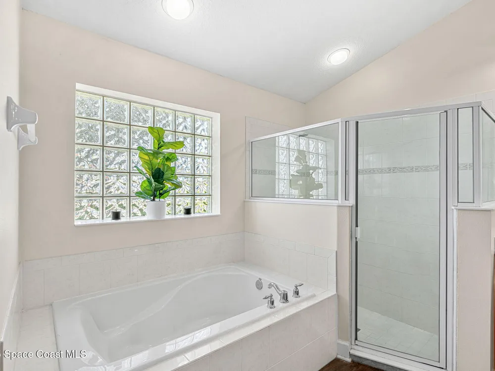 - Ceiling Fan(s), Eat-in Kitchen, Entrance Foyer, His and Hers Closets, Open Floorplan, Primary Bathroom -Tub with Separate Shower, Primary Downstairs, Split Bedrooms, Vaulted Ceiling(s), Walk-In Closet(s)