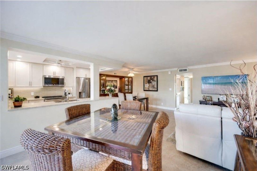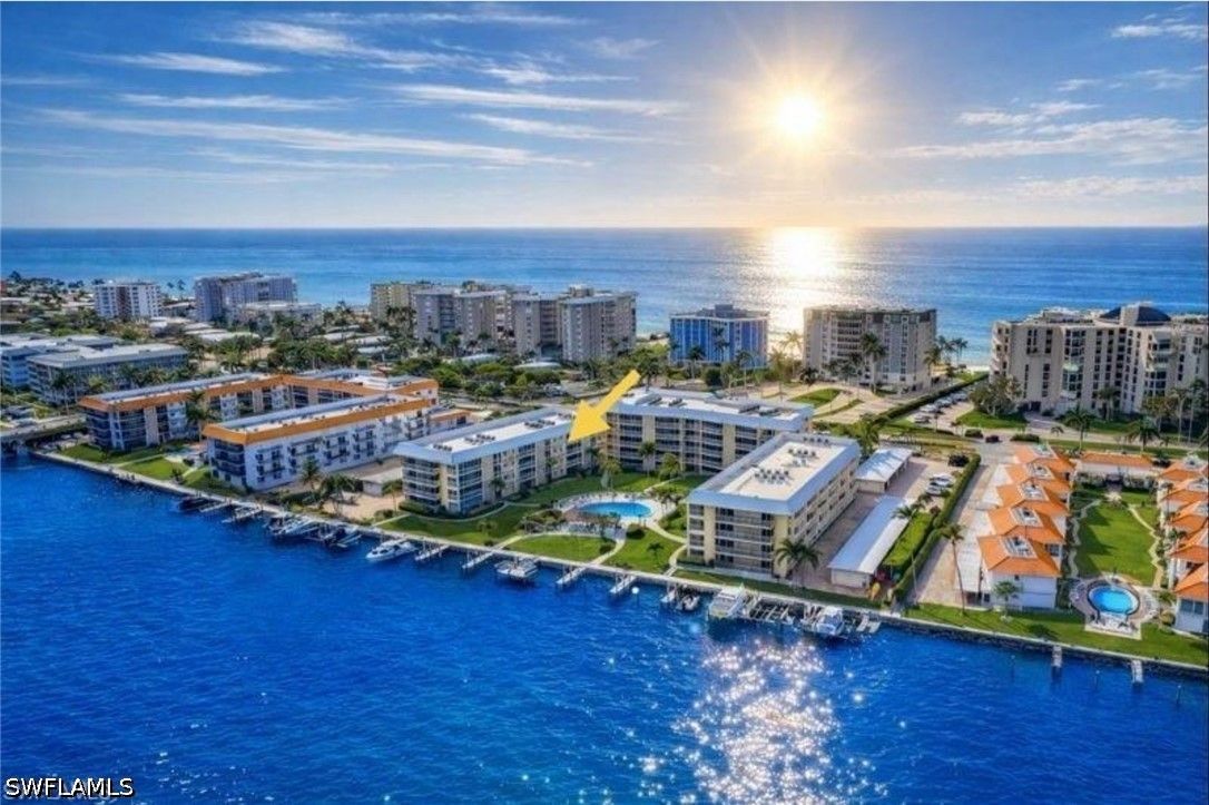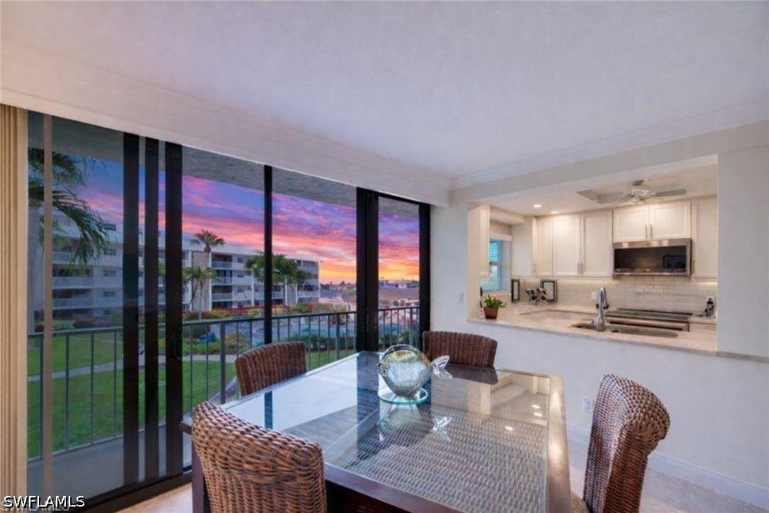 FULLY RENOVATED WITH BAY VIEW! Experience the ultimate Naples waterfront lifestyle in this beautifully updated boating residence, perfectly positioned on Doctors Bay in the highly desirable Moorings. This is a property that truly needs to be seen in person to fully appreciate the quality, setting, and lifestyle it offers. Renovated waterfront units in this location are rarely available, and opportunities like this do not come along often. With the Gulf’s sugar-sand beaches just across the street and boat docks available for lease, this home delivers a unique blend of beachside and bayfront living. Conveniently accessed via elevator from your covered parking space, this second-floor 2-bedroom, 2-bath residence features an open, airy layout designed for relaxed coastal living. Floor-to-ceiling impact-resistant sliders frame tranquil water views and flood the home with natural light, creating a seamless connection between indoor comfort and the surrounding waterfront scenery. The interior has been completely reimagined with tasteful, modern upgrades throughout. Highlights include large-format tile flooring, crown molding in the main living areas, and thoughtfully designed custom built-ins in both the dining space and primary suite—offering added storage rarely found in comparable units. The kitchen is a true showpiece, appointed with quartzite countertops, stainless steel appliances, and a self-cleaning steam double oven, making it ideal for entertaining or everyday enjoyment. Both bathrooms have been fully renovated with refined finishes that complement the home’s coastal aesthetic. Step out onto your private balcony to enjoy gentle bay breezes and a glimpse of the Gulf beyond, or relax at the community pool and recreation area overlooking Doctors Bay—an ideal vantage point to watch passing boats and take in colorful Southwest Florida sunrises. Additional conveniences include a designated carport space and a well-maintained community poised for upcoming enhancements such as fresh exterior paint, new railings, updated lighting, gutters, and walkways. Set within one of Naples’ most coveted waterfront neighborhoods, this residence offers effortless access to world-class boating, pristine beaches, fine dining, and upscale shopping. Buyers seeking a move-in-ready waterfront property in the Moorings are encouraged to act quickly, as renovated bayfront residences with immediate beach access are seldom offered. Whether cruising the waterways, walking the beach, or simply enjoying the peaceful bayfront setting, this is coastal living at its finest—where the Bay and the Gulf come together. One or more photo(s) has been virtually staged, AI generated or rendered.