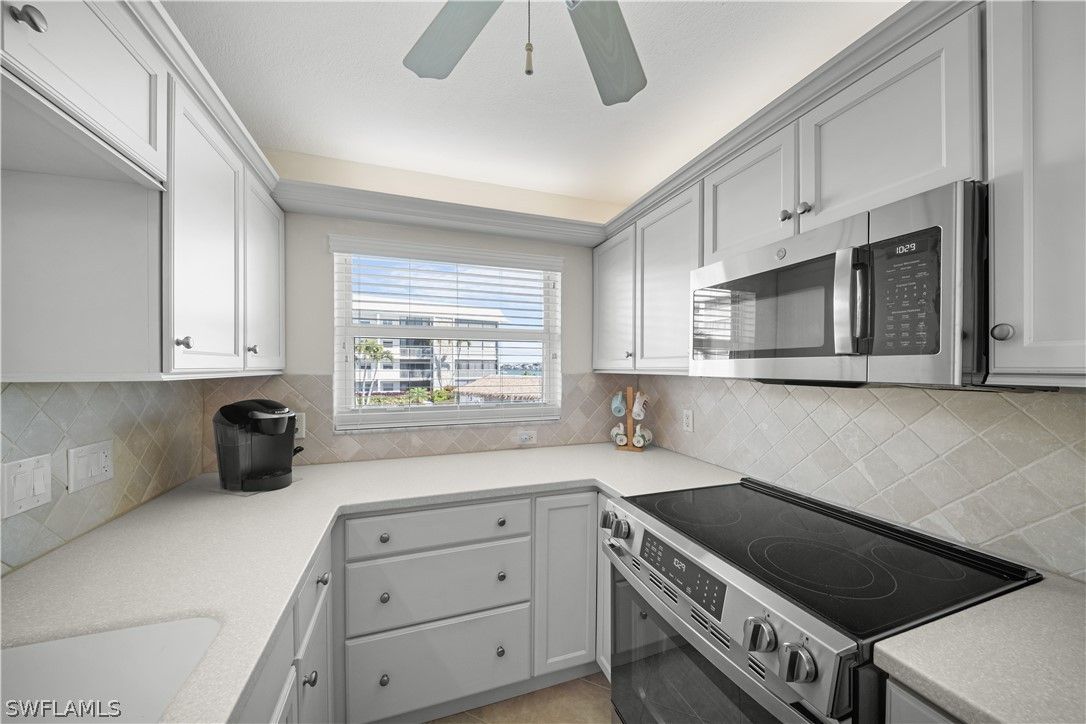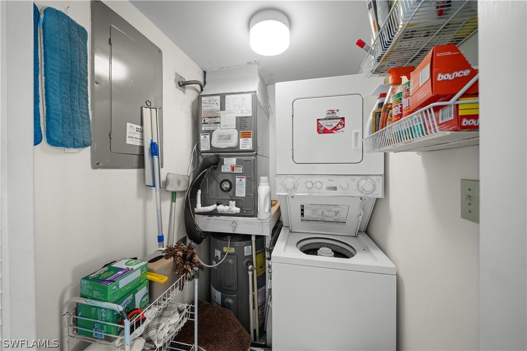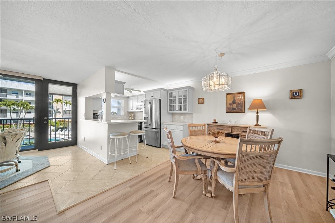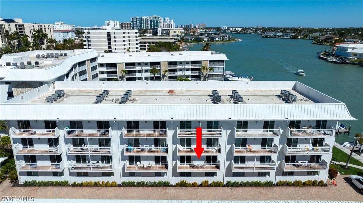 Beautifully updated residence located directly on the Bay and across from the Gulf of Mexico. This move in ready condo features an open concept floor plan with abundant natural light flowing from front to back of the unit. Impact resistant sliding glass doors frame water views and enhance both safety and efficiency, allowing you to enjoy your morning coffee overlooking the water and watching the dolphins frolicking in the bay without ever stepping foot outside your door. The updated kitchen includes brand new appliances and opens seamlessly to the living and dining areas, ideal for entertaining. The bedrooms offer access to a private balcony overlooking the bay, ideal for watching the boats pass by, Additional features include in unit laundry, deeded carport, and a private extra storage room. The resort style pool is set on gorgeous grounds overlooking the water, surrounded by palm trees and lush tropical landscaping. The tiki hut host regular gatherings for residents and friends. At Harbour Cove every day will feel like the most relaxing vacation except this can be your home away from home. Boat and kayak slips are available for lease, providing convenient access to the water. Sidewalks along Gulf Shore Boulevard offer an ideal setting for walking and biking. The Village Shops and restaurants on Venetian Bay are within approximately one mile, with close proximity to downtown Fifth Avenue South and Mercato for additional dining, shopping, and entertainment. A true waterfront lifestyle opportunity in a prime Naples location.