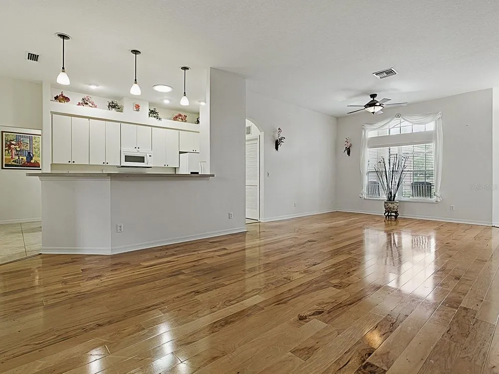 One owner! Owner had home built. Immaculate and well cared for home just waiting on a new owner. Large corner lot with Waterview of Little Lake Harris! Nice open floor plan with beautiful Pecan wood floors in living areas, tile in all the wet areas. The kitchen has a solar tube, 42’ cabinets give you extra storage space, breakfast bar and nook. Master bath has double sinks, garden tub and separate shower, Walk-in closet has lot of extra shelves for extra storage. The bonus room off the living room is being used as a dining room but could be used for a multitude of things, your choice! The door leading to the porch has built-in blinds, laundry room has built in cabinets washer and dryer purchased in 2021. The guest bathroom has a walk-in shower. Roof replaced in January 2025, Radiant barrier in the attic saves on energy bills, the shutters on the outside of the house are hurricane shutters. Water softener system/purifier. You will love this beautiful community with lots of things to do. Walking trails, fitness center, olympic size swimming pool, Hot tub, tennis courts, card room, large fellowship hall, Library, crafts, and so much more! Come see today!