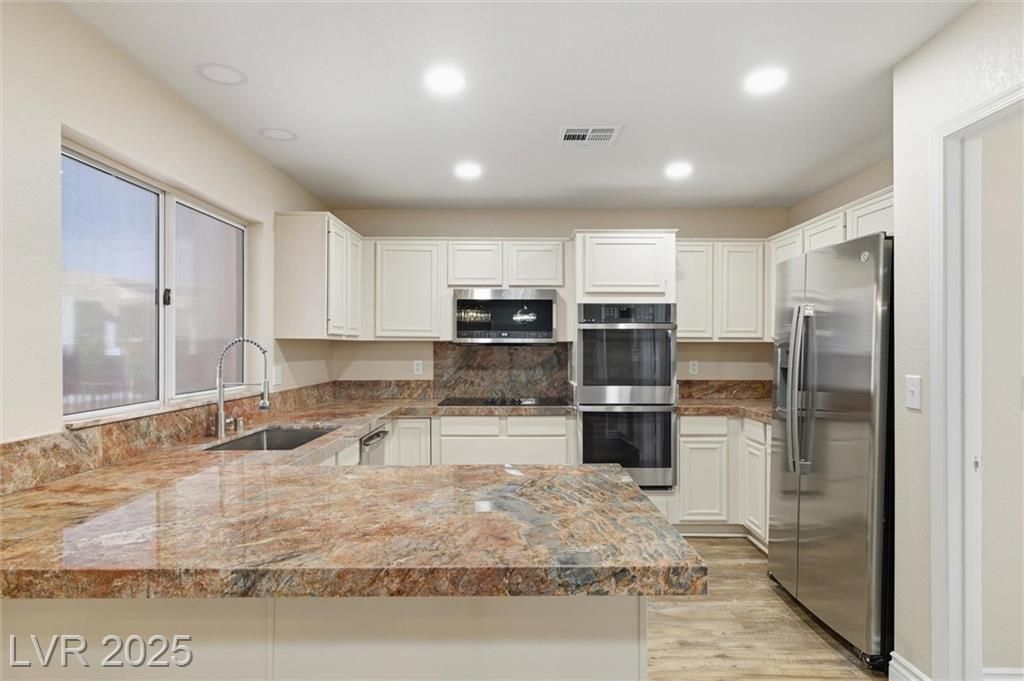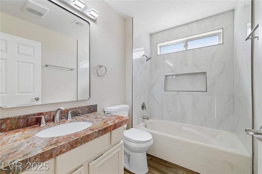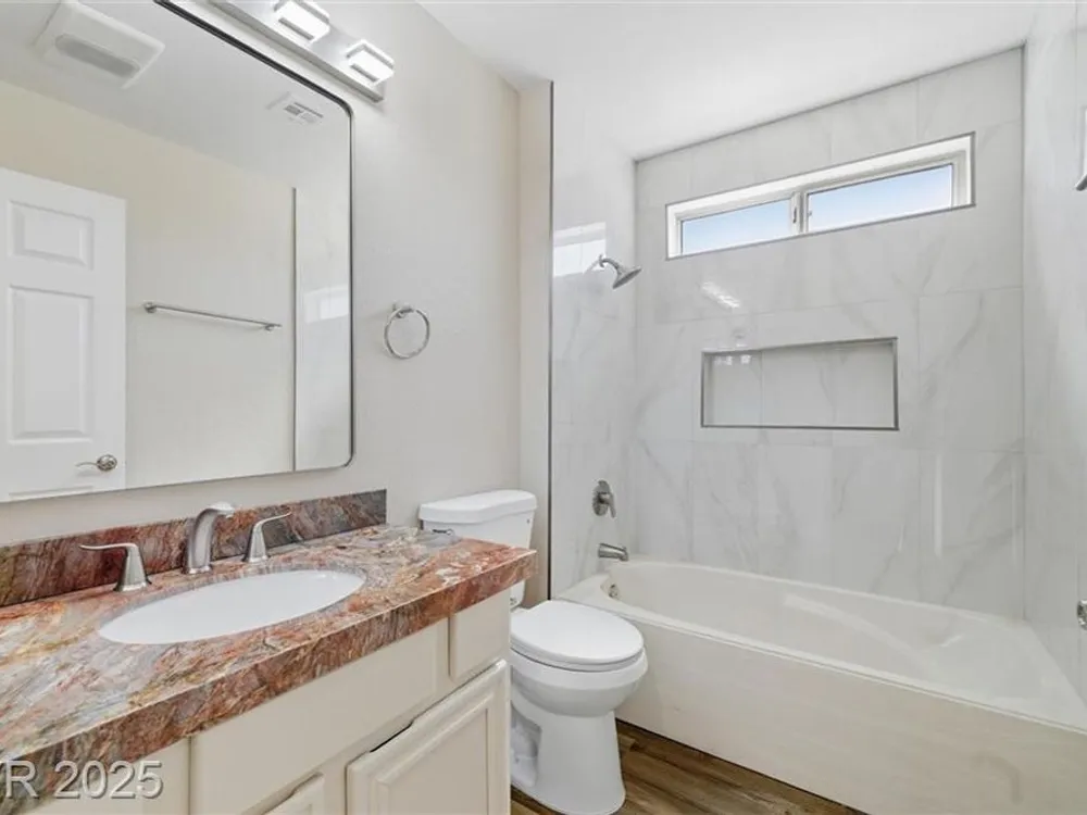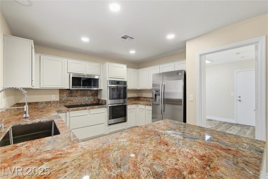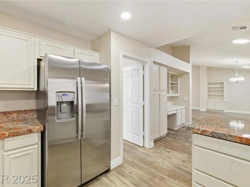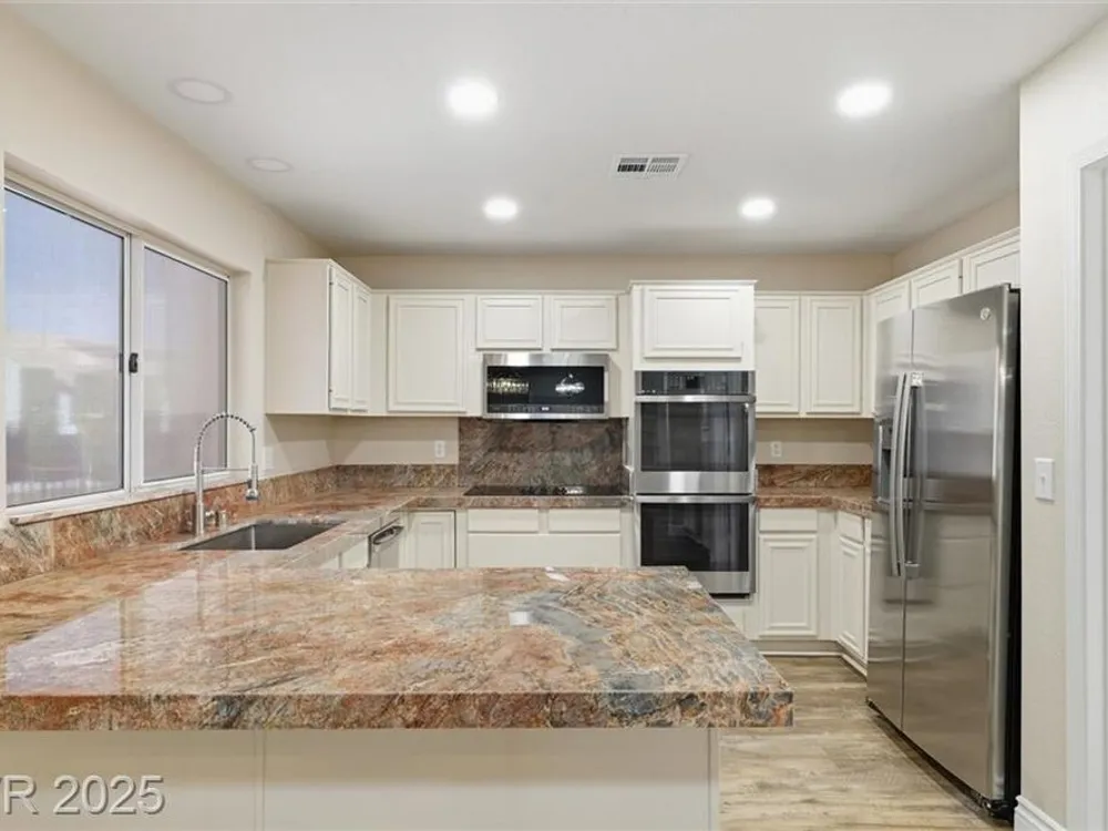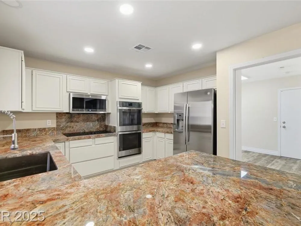Welcome to 3001 Merimar Drive, a beautifully renovated home in the heart of Sun City Summerlin. This modern retreat features an open floor plan, marble countertops, stainless steel appliances, and custom cabinetry, combining elegance with everyday comfort.The spacious living and dining areas are filled with natural light and flow seamlessly from the chef’s kitchen, making it ideal for entertaining. The primary suite offers a relaxing escape with a spa-style bathroom, dual sinks, and a walk-in shower.Enjoy outdoor living on your private, low-maintenance patio, surrounded by desert landscaping—perfect for quiet mornings or evening gatherings.Located in one of Las Vegas’s most desirable 55+ communities, residents enjoy access to golf courses, pools, fitness centers, clubs, and social activities.Move-in ready and stylishly upgraded, 3001 Merimar Drive offers the best of modern living in Sun City Summerlin.