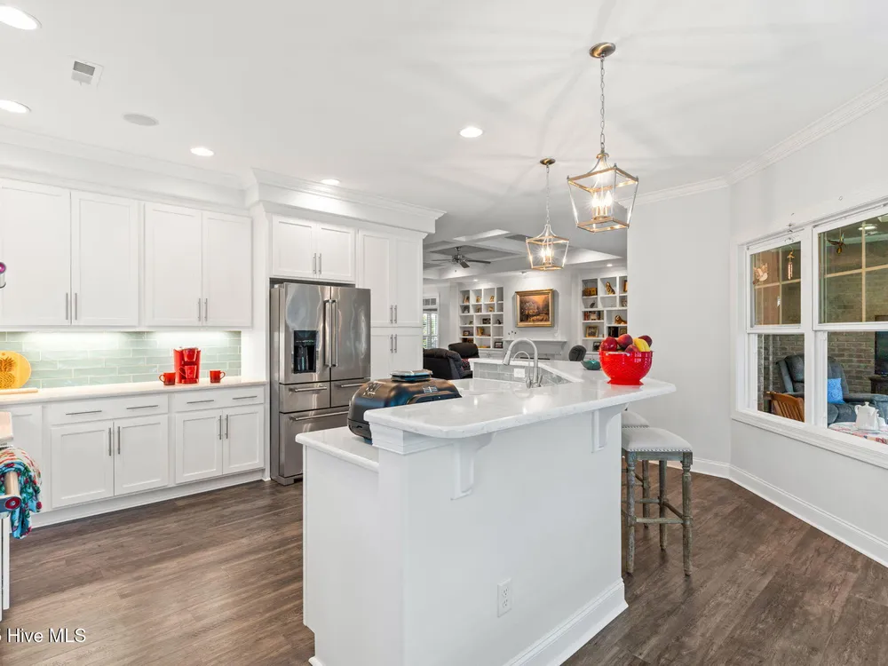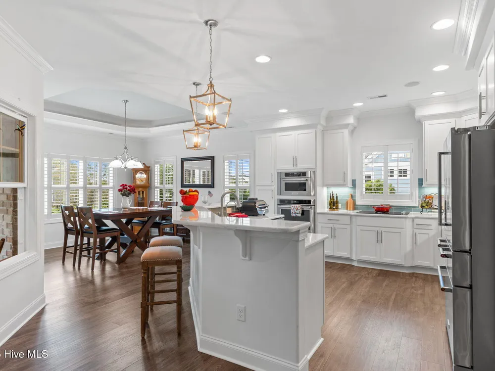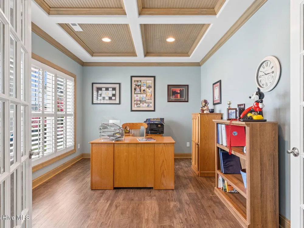 Welcome to effortless living in 3001 Moss Hammock Wynd. This beautifully maintained home was built in 2019 and ideally located near the Seaside Wellness Center and pool, Seaside Gate, Woodlands Park, and the Members Club. Designed with a spacious and open social floorplan, this home is perfect for both relaxing and entertaining. The low-maintenance exterior means you'll spend more time enjoying all the amenities the community has to offer. Inside, you'll find elegant plantation shutters throughout, coffered ceilings, low-maintenace LVP flooring throughout the entire home, beautiful stainless steel appliances and a light-filled sunroom with an electric roll-down hurricane shutter for added peace of mind. The private office boasts intrinsic ceiling and trim details. A Kinetico whole-house water softener and Kitchen Reverse Osmosis, generator plug in garage, and a home warranty paid through July 2028 provides additional value and security. If you decide to step outside of the large four-season sunroom, the rear deck and large rear yard offer plenty of opportunity for outdoor living! The decking is comprised of low-maintenance materials including Trex decking, PVC railings and a beautiful cedar pergola with adjustable sunscreen. Finally, The membership is active which saves a buyer up to potentially $10,000! This is a rare opportunity to enjoy comfort, convenience, and community in one of the most desirable locations in St. James!