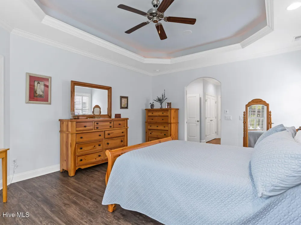 - Blinds/Shades, Tray Ceiling(s), Walk-In Closet(s), Gas Log, Mud Room, Master Downstairs, Kitchen Island, High Ceilings, Ceiling Fan(s)