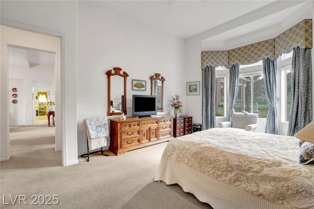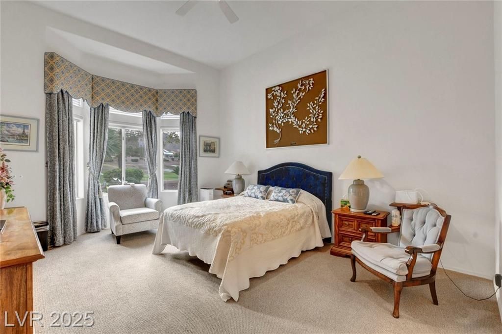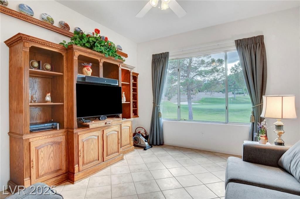 Beautiful 3-bed, 2-bath single-story home with an oversized 2-car garage in Sun City Summerlin. Light pours into most of the rooms here! At 2176 SF, it offers a formal dining room, large living room, family room, and a hobby room off the kitchen. Quality carpet and ceramic tile throughout enhance its charm. Overlooking the 9th green of Highland Falls Golf Course, the home features a spacious covered patio with stunning views. Located in an age-qualified community close to all services. Sun City Summerlin includes golf courses, club houses, restaurants, exercise and meeting rooms, plus a very active social calendar. Lovingly maintained by the original owner, who is open to assisting with buyer costs for the right offer.