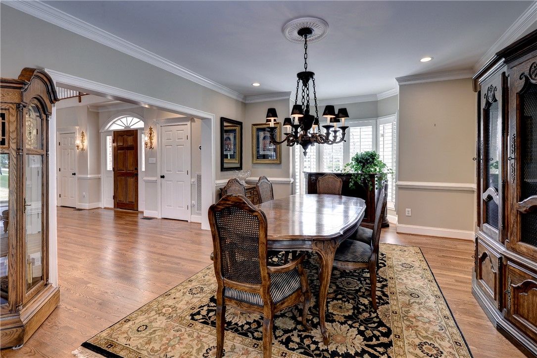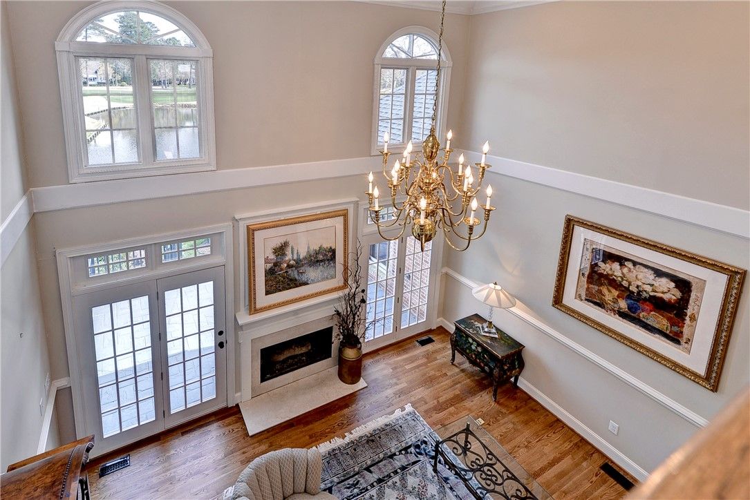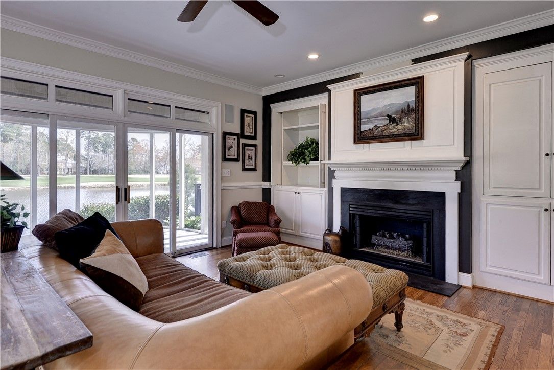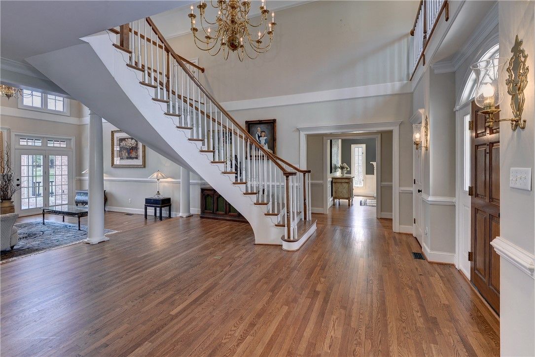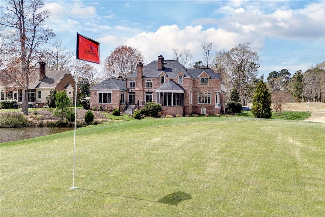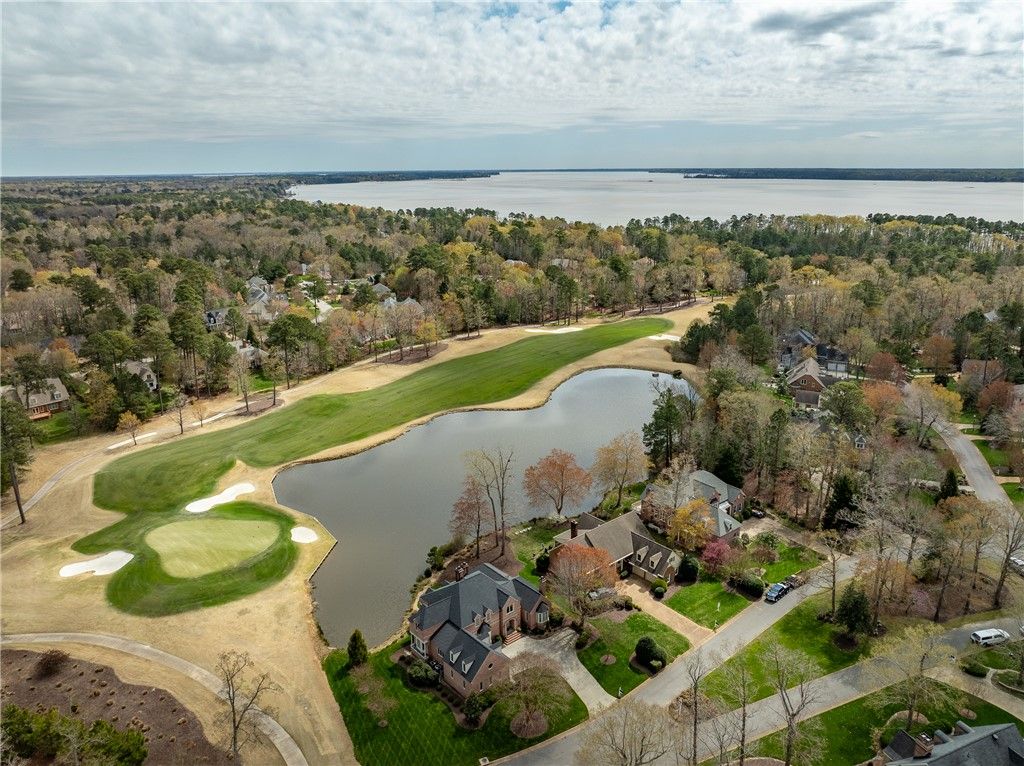 Simply stunning! This all-brick transitional home in the sought-after Travis Pond section of Governor’s Land offers breathtaking pond and golf views and over 5,000 square feet of beautifully designed living space. A dramatic floating circular staircase anchors the grand foyer, leading to a cathedral-ceiling living room with fireplace. The warm, inviting family room features built-ins, a gas fireplace and serene water views through the screened porch. The chef’s kitchen is exceptional with a Wolf range, center island with prep sink, two wine refrigerators and abundant storage, opening seamlessly to the family room. A spacious bonus room with half bath is accessed via a back staircase. The first-floor primary suite is a true retreat with stunning water views, two walk-in closets and an updated bath. A handsome office/den with bay window and built-ins completes the main level. Upstairs, a second primary suite offers a private bath and walk-in closet, while two additional bedrooms share a Jack-and-Jill bath. Outdoor living is extraordinary with a screened porch featuring a stamped concrete floor that feels suspended over the pond, plus a beautiful patio to enjoy the sweeping views. KEY FEATURES include 2023 ROOF, 2023 water heater, hardwood floors throughout, two HVAC units replaced in 2020, some newer windows, 2023 washer and dryer.