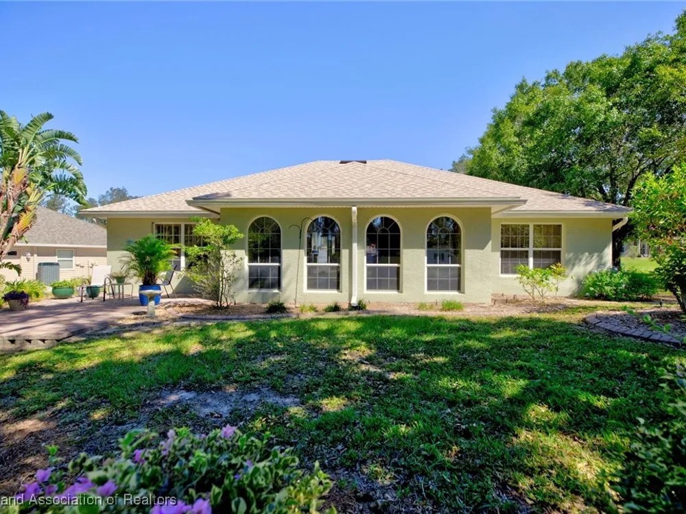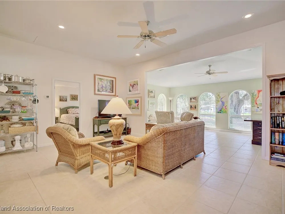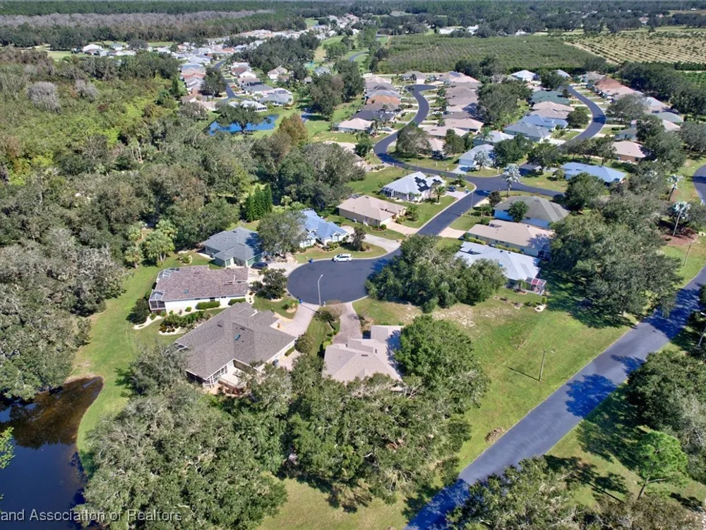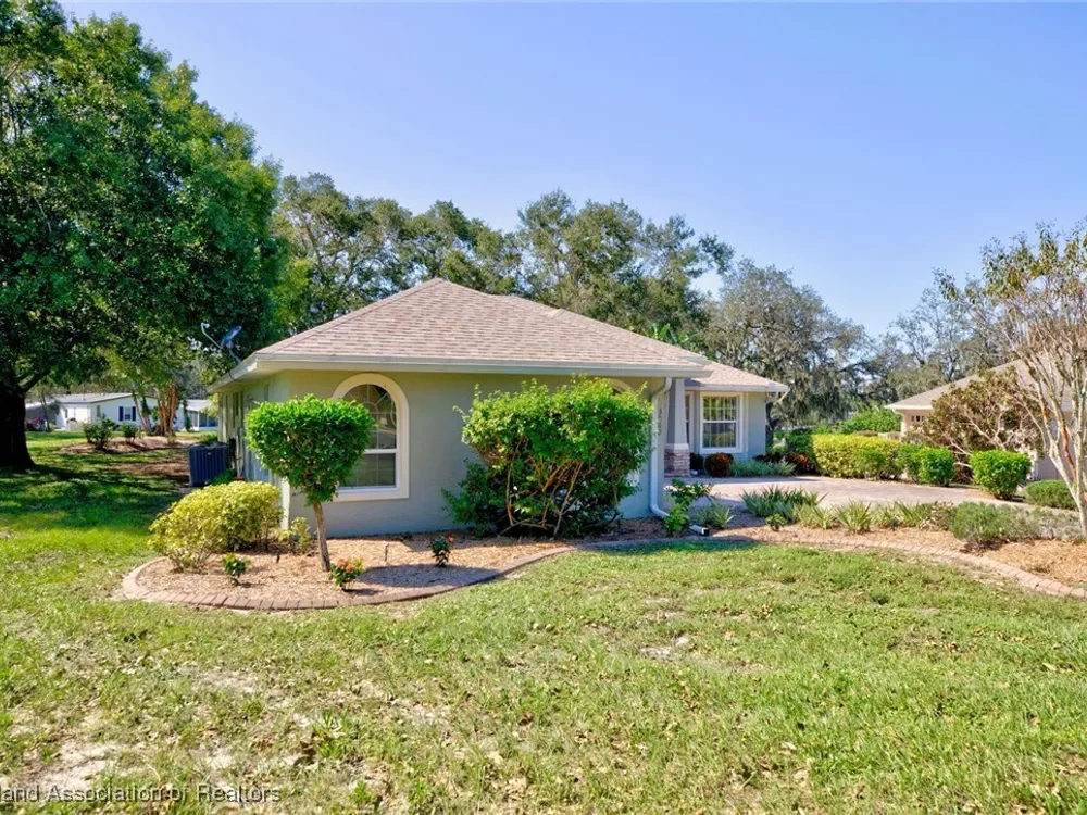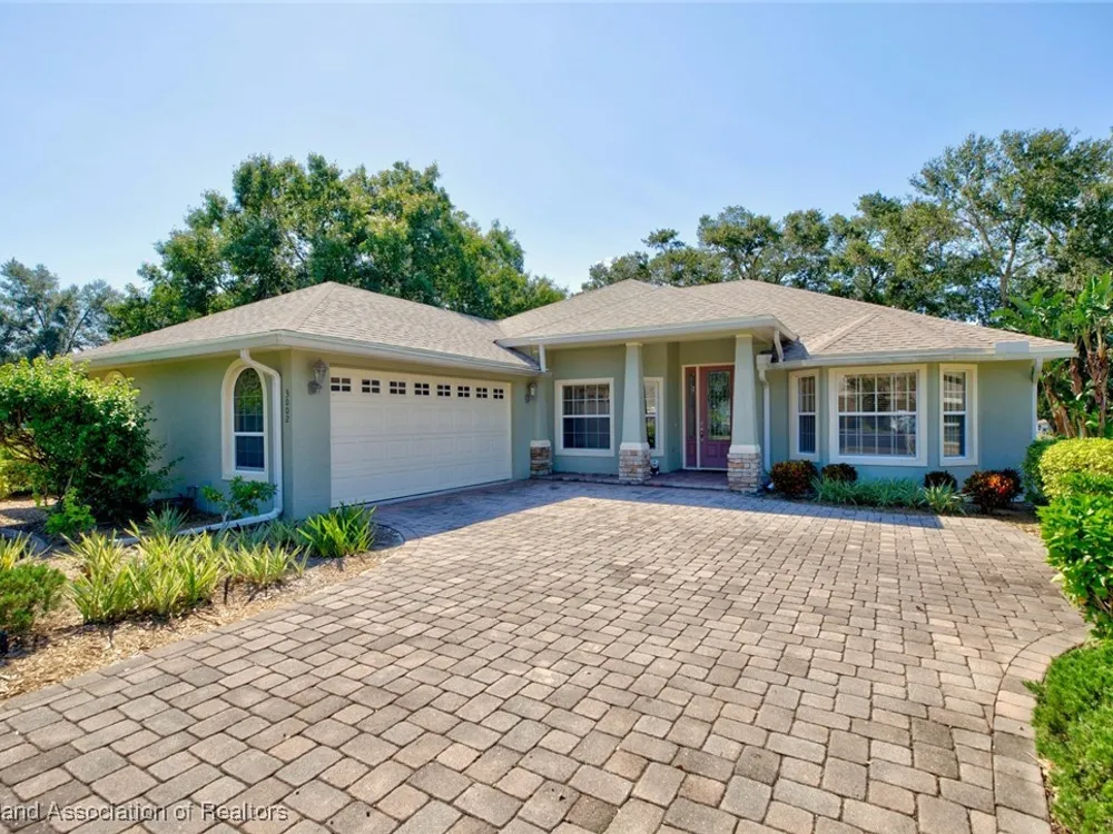 Welcome to Highlands Ridge, Central Florida's premiere 55+ community. This concrete block, three bedroom, two bath home boasts 2,100 square feet of living space, an open concept living area and is entirely move-in ready. The great room boasts a centrally located kitchen that’s perfect for entertaining, featuring a spacious breakfast bar and a functional center island. With sleek white appliances and an abundance of cabinets, it offers both style and plenty of storage. The open layout seamlessly connects the kitchen to the rest of the main space including the living room and a formal dining room. The owner's suite is truly that with dual walk-in closets and a spa-like bathroom with a large vanity, two sinks, and a modern walk-in shower. The two additional bedrooms each have large reach-in closets and would be perfect for an office, a den, or craft room. The 30'x15' sun room is full of arch windows for stunning views of the old Florida oaks. If you'd prefer to be outside, take your coffee on the back paver patio. Don't forget the extras-in house utility, paver driveway and 2024 ROOF! Highlands Ridge is a community that has all of the amenities! Two golf courses, two pools, a gym, a clubhouse and activities for every interest.