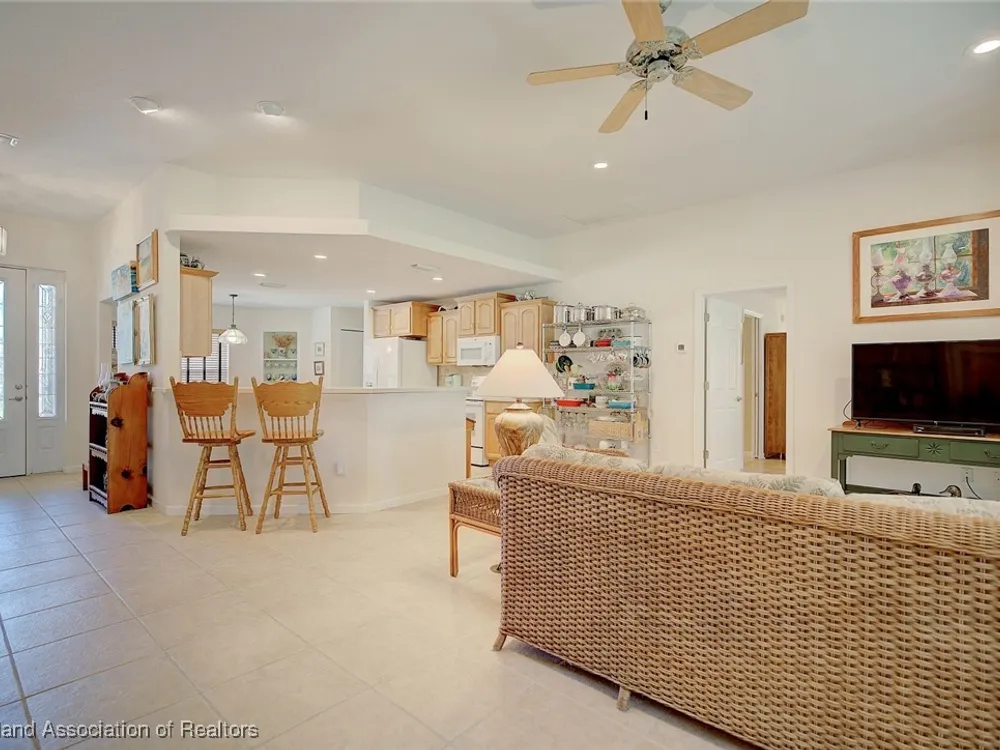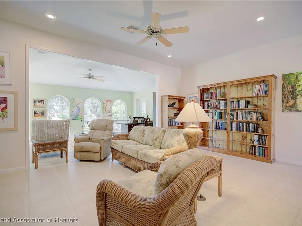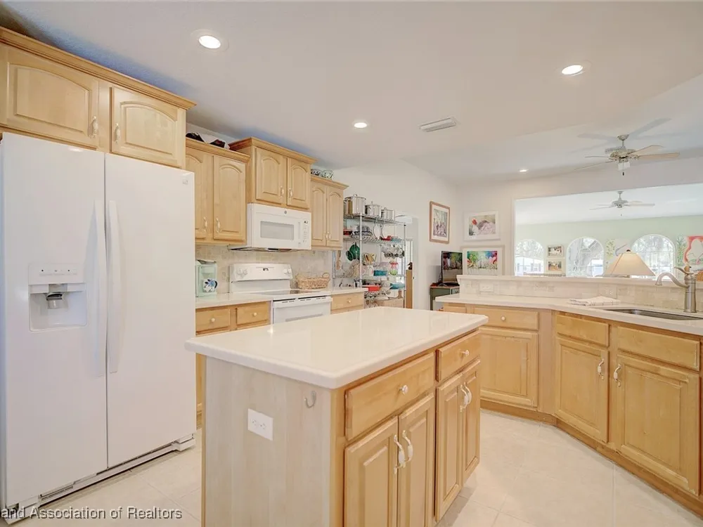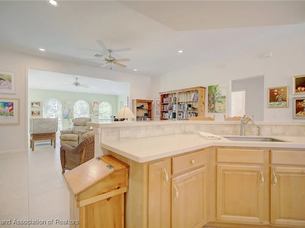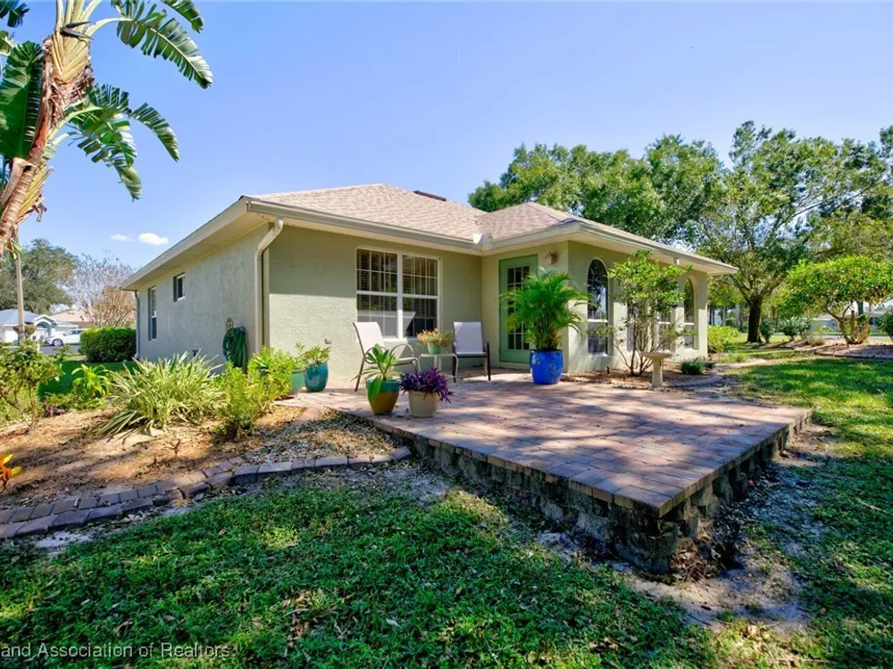 Welcome to Highlands Ridge, Central Florida's premiere 55+ community. This concrete block, three bedroom, two bath home boasts 2,100 square feet of living space, an open concept living area and is entirely move-in ready. The great room boasts a centrally located kitchen that’s perfect for entertaining, featuring a spacious breakfast bar and a functional center island. With sleek white appliances and an abundance of cabinets, it offers both style and plenty of storage. The open layout seamlessly connects the kitchen to the rest of the main space including the living room and a formal dining room. The owner's suite is truly that with dual walk-in closets and a spa-like bathroom with a large vanity, two sinks, and a modern walk-in shower. The two additional bedrooms each have large reach-in closets and would be perfect for an office, a den, or craft room. The 30'x15' sun room is full of arch windows for stunning views of the old Florida oaks. If you'd prefer to be outside, take your coffee on the back paver patio. Don't forget the extras-in house utility, paver driveway and 2024 ROOF! Highlands Ridge is a community that has all of the amenities! Two golf courses, two pools, a gym, a clubhouse and activities for every interest.