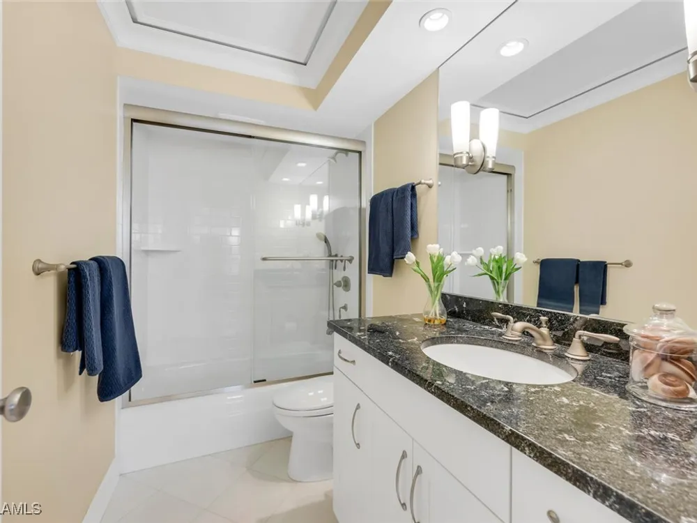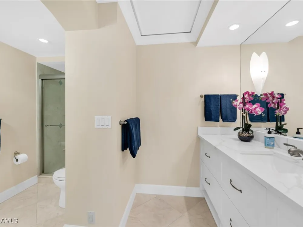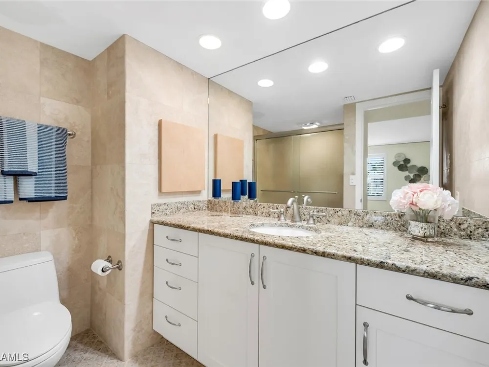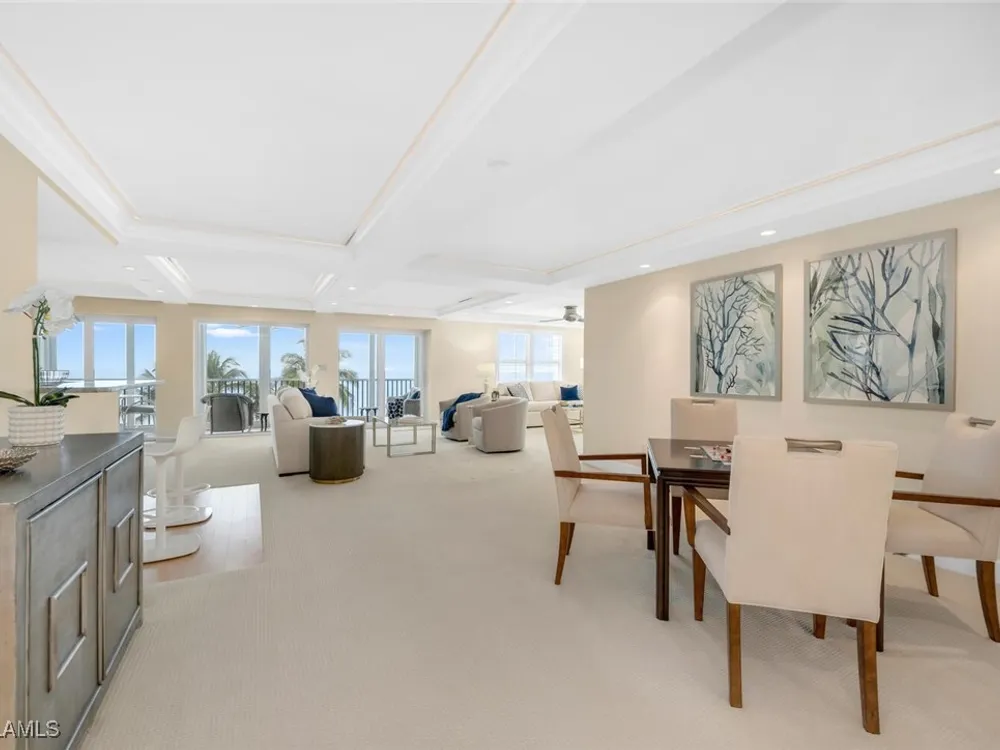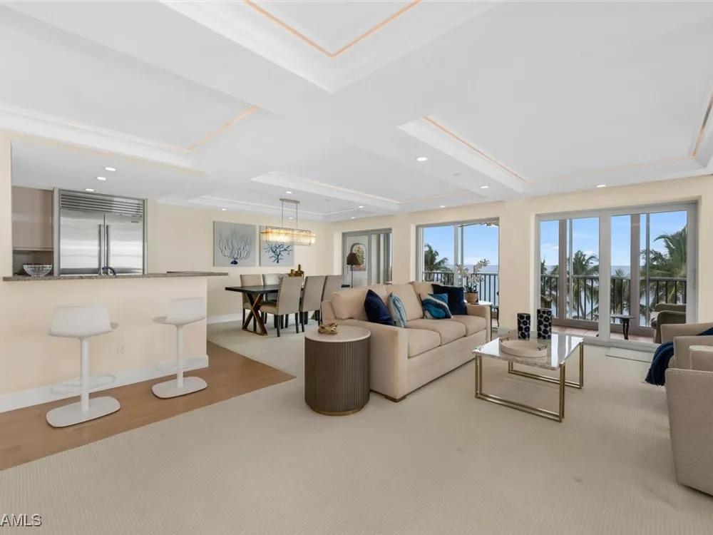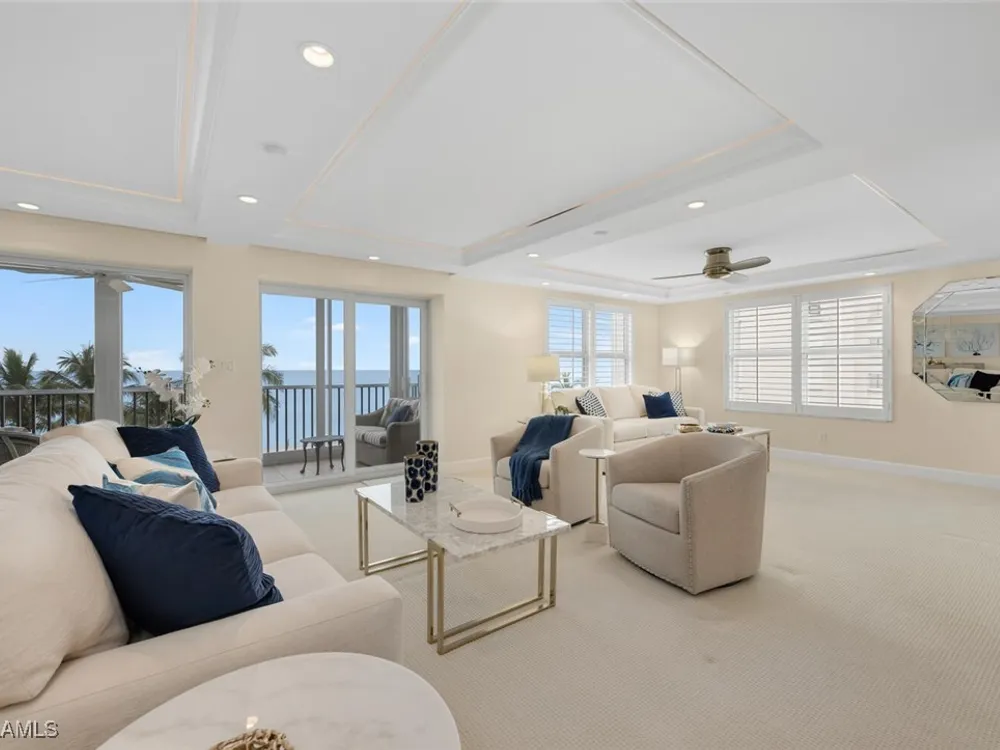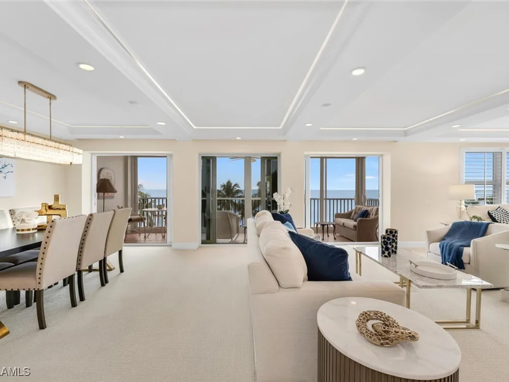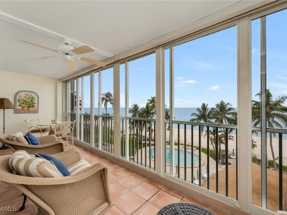 Impressive 4th-floor end unit in the desirable Martinique Club featuring 3 bedrooms, 3 bathrooms, and 2,064 sq/ft of beachfront living. The updated kitchen offers newer appliances and opens seamlessly to the living space—ideal for entertaining. Enjoy stunning Gulf views from this private, well-located condo. The third bedroom has been opened to expand the living area, enhancing the open-concept layout. Additional highlights include updated lighting, custom interior shutters, and an expansive lanai with hurricane-rated sliders. This unit may also be purchased with the adjacent unit (#404), creating a rare opportunity for a 5-bedroom, 5-bath beachfront retreat. Martinique Club offers an exclusive lifestyle with only 35 residences, private beach access, a beachfront pool, cabana room, and a newly renovated lobby. Ideally located just steps from Venetian Village’s upscale boutiques and dining, and a short drive to Waterside Shops, Artis–Naples, Mercato, and the iconic 5th Avenue South and 3rd Street South.