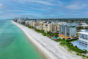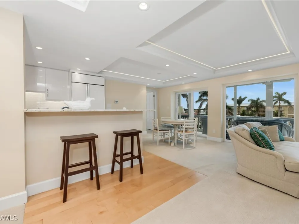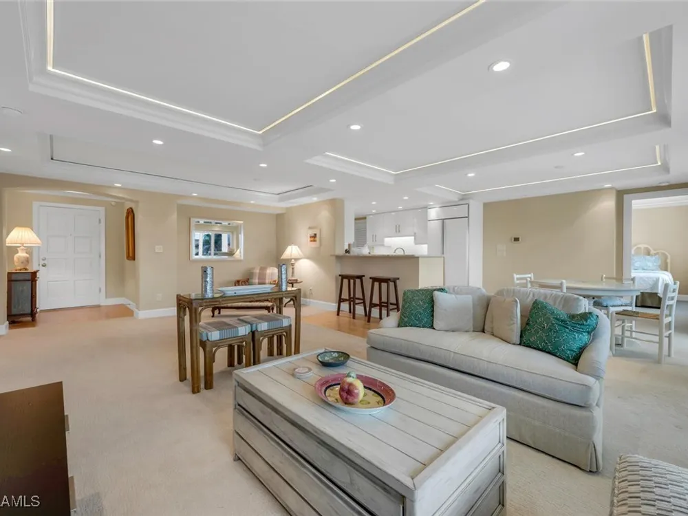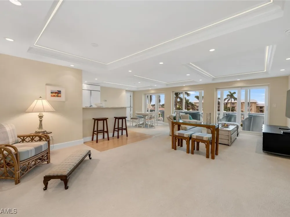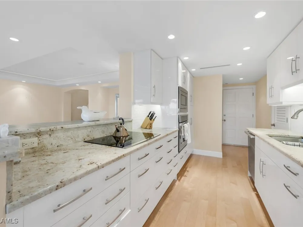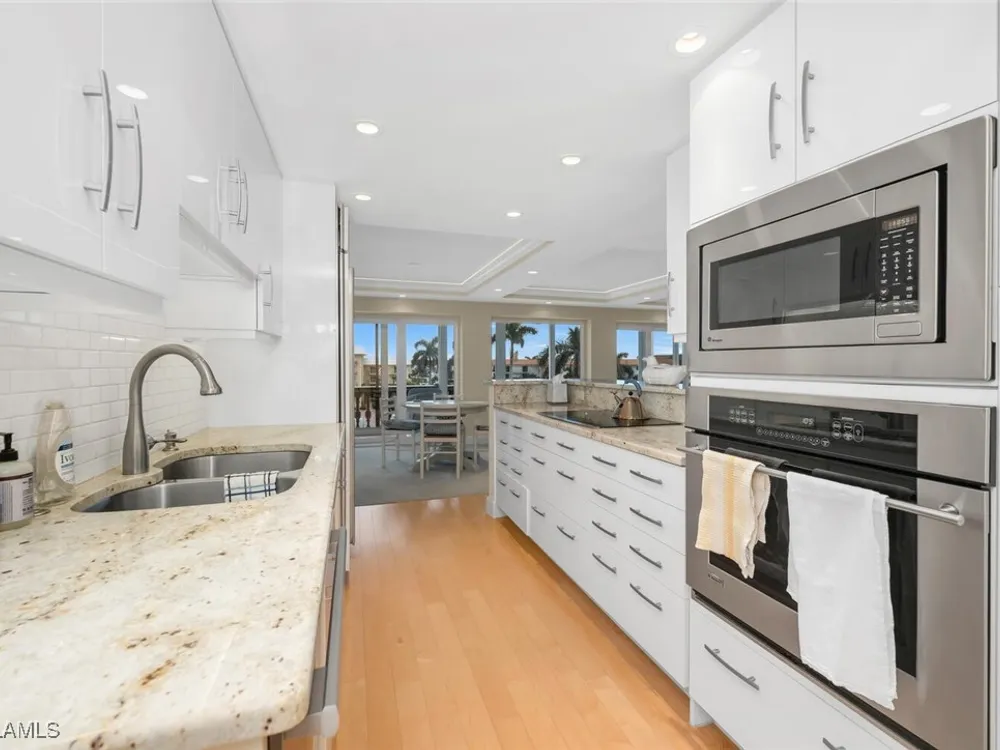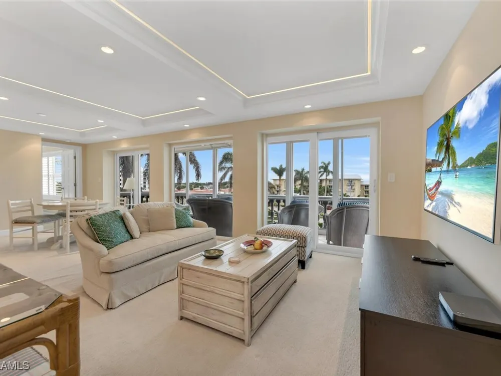 Beautifully updated 4th-floor condo in the Martinique Club featuring 2 bedrooms, 2 bathrooms, and 1,440 sq/ft of light-filled living space in the highly sought-after Moorings neighborhood. Located directly on the beach, this unit also offers partial views of Moorings Bay, blending the best of Gulf and bayfront living. The updated kitchen features quality appliances and flows seamlessly into the open floor plan, enhanced by elegant cove lighting and abundant natural light. The split bedroom layout is ideal for hosting family and guests, offering privacy and comfort for all. Spacious bedrooms provide a relaxing retreat, while a large balcony invites you to enjoy morning coffee or evening wine in the coastal breeze. This unit may also be purchased with the adjacent unit (#403), creating a rare opportunity for a 5-bedroom, 5-bath beachfront retreat. Martinique Club offers an exclusive lifestyle with only 35 residences, private beach access, a beachfront pool, cabana room, and a newly renovated lobby. Ideally located just steps from Venetian Village’s upscale boutiques and dining, and a short drive to Waterside Shops, Artis–Naples, Mercato, and the iconic 5th Avenue South and 3rd Street South.