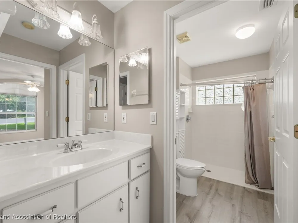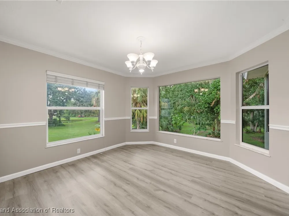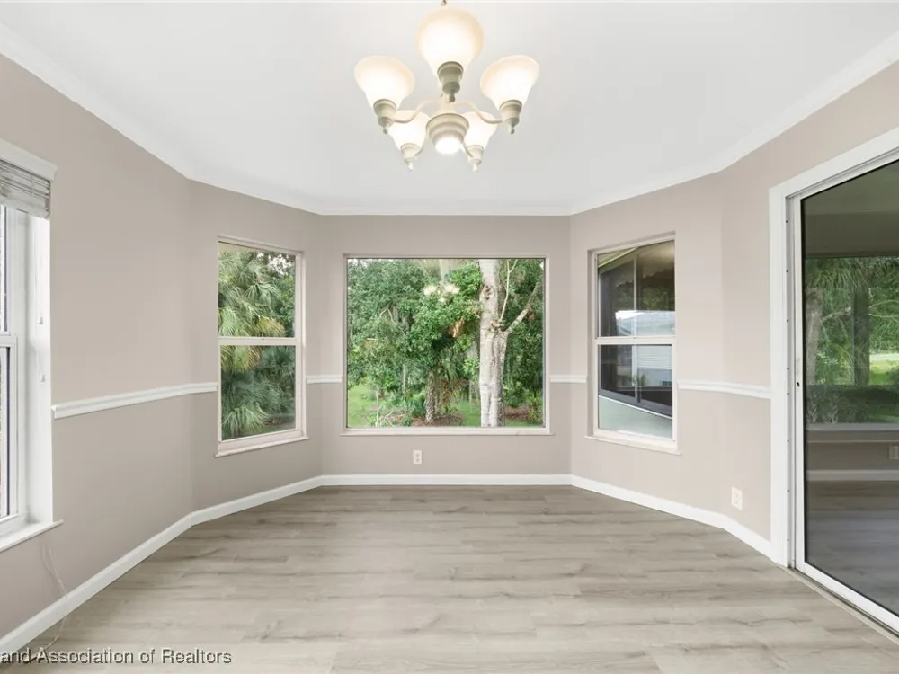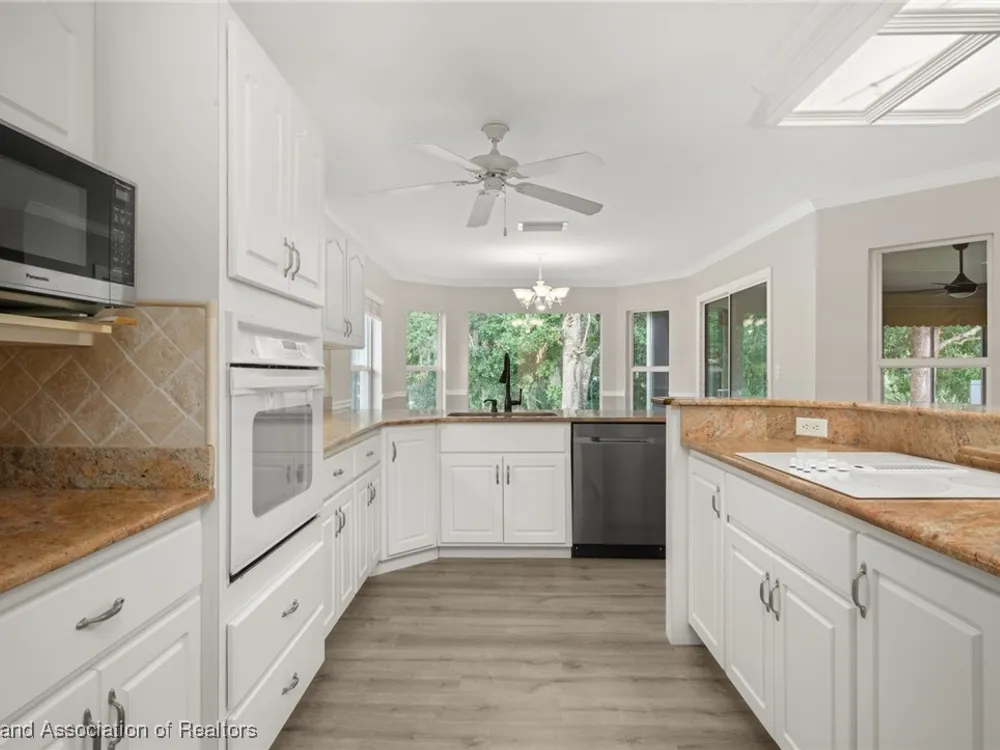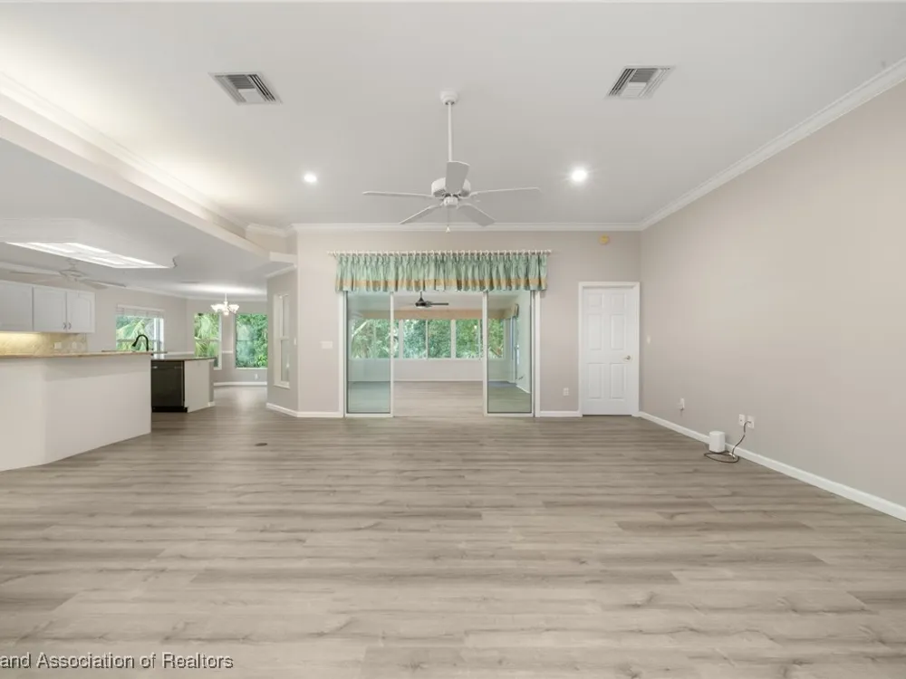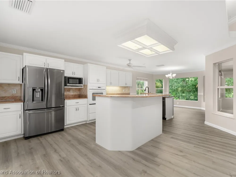 Transport yourself to pure serenity with the park-like view from the back deck of this updated 3 Bedroom, 2 bath home in Highlands Ridge Golfing Community. Picture yourself relaxing after 18 holes or entertaining friends and family comfortably spread out over the open floor plan. The first thing to catch you eye will be the huge bright and cherry kitchen which opens to the bayed dining room and large open living room. Generous Primary suite with light bright ensuite plus two roomy additional bedrooms. Plenty of room for guests or opt to use one bedroom for your office. Freshly painted with luxury vinyl plank flooring, located on a quiet cul de sac. Two car garage with additional golf cart bay. Indoor laundry room to make chores a breeze. Highlands Ridge prides itself on it's friendly residents. Enjoy Pickleball or just relax by the two pools, or enjoy working out at the Clubhouse. RV storage is available if needed.