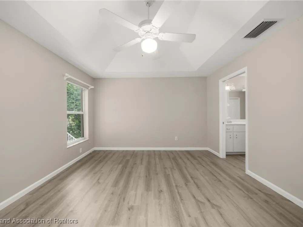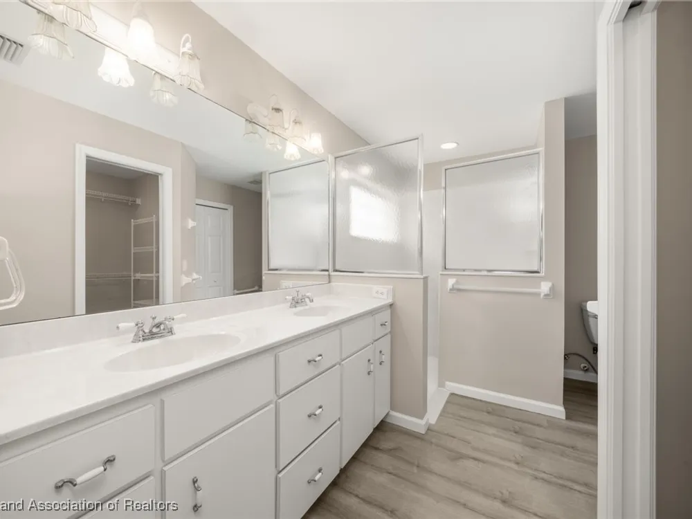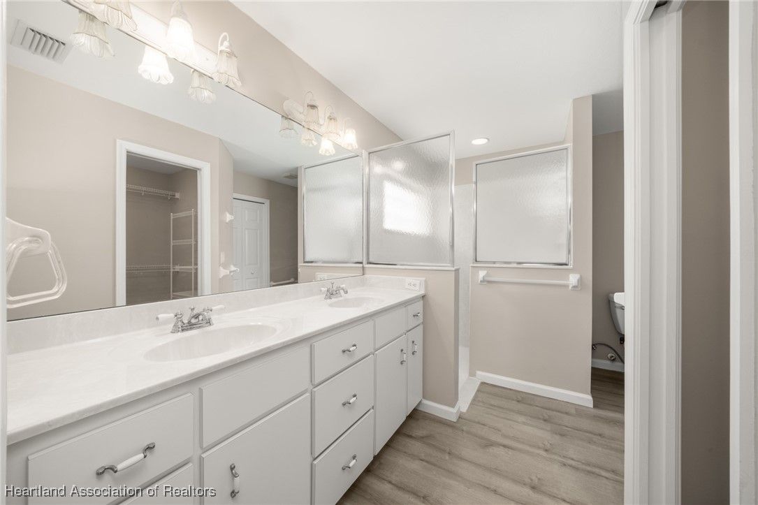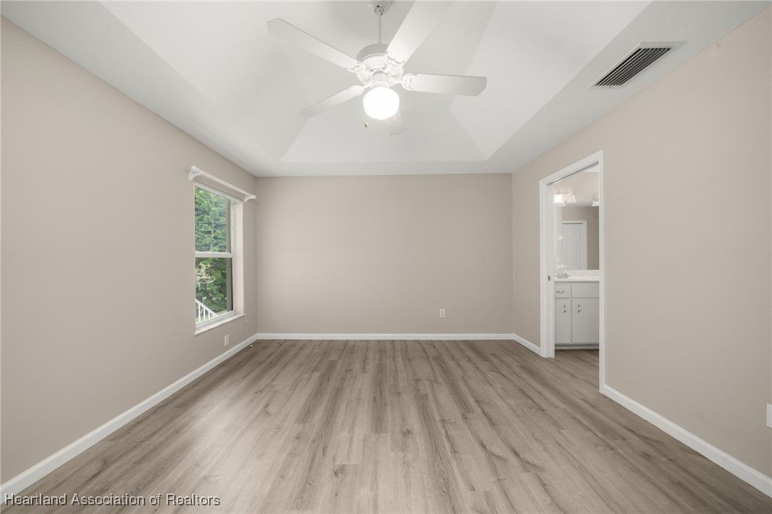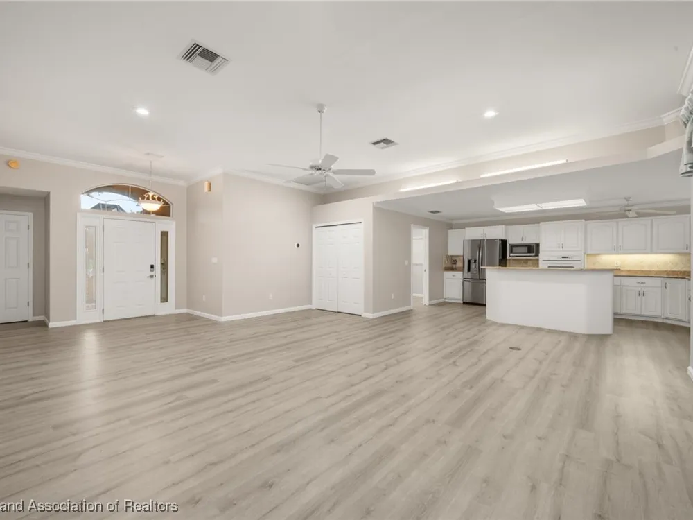 Transport yourself to pure serenity with the park-like view from the back deck of this updated 3 Bedroom, 2 bath home in Highlands Ridge Golfing Community. Picture yourself relaxing after 18 holes or entertaining friends and family comfortably spread out over the open floor plan. The first thing to catch you eye will be the huge bright and cherry kitchen which opens to the bayed dining room and large open living room. Generous Primary suite with light bright ensuite plus two roomy additional bedrooms. Plenty of room for guests or opt to use one bedroom for your office. Freshly painted with luxury vinyl plank flooring, located on a quiet cul de sac. Two car garage with additional golf cart bay. Indoor laundry room to make chores a breeze. Highlands Ridge prides itself on it's friendly residents. Enjoy Pickleball or just relax by the two pools, or enjoy working out at the Clubhouse. RV storage is available if needed.