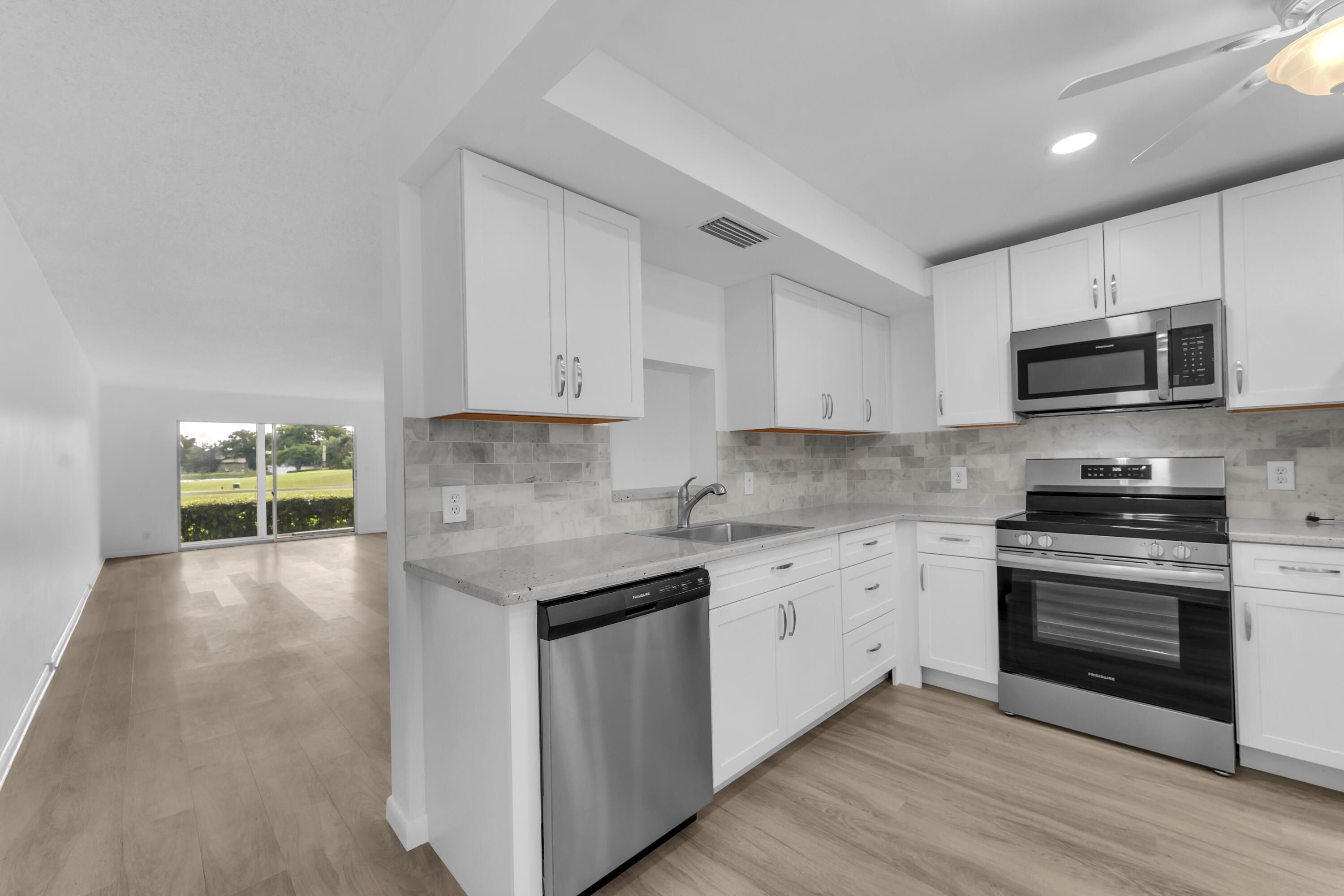 Fully renovated unit that is Turnkey, including new vinyl luxury flooring, neutral paint, and LED lighting with ceiling fans throughout. Kitchen features granite countertops and new stainless steel appliances; bath vanities updated. Upgraded A/C for comfort and efficiency. Screened patio with views of the golf course and lake. Roll-up hurricane shutters included. Parking at the door; washer/dryer facility within 20 feet; secure bulk storage lockers. Building recently re-roofed and repainted; solid reserves with no assessments and a recent structural review. Wynmoor offers amazing amenities such as a theater, clubhouse, cafe, pools, fitness, hobby rooms, and easy access to Turnpike/I-95 and the beach, and LOW HOA GREAT INVESTMENT ACT NOW! Call Chase!