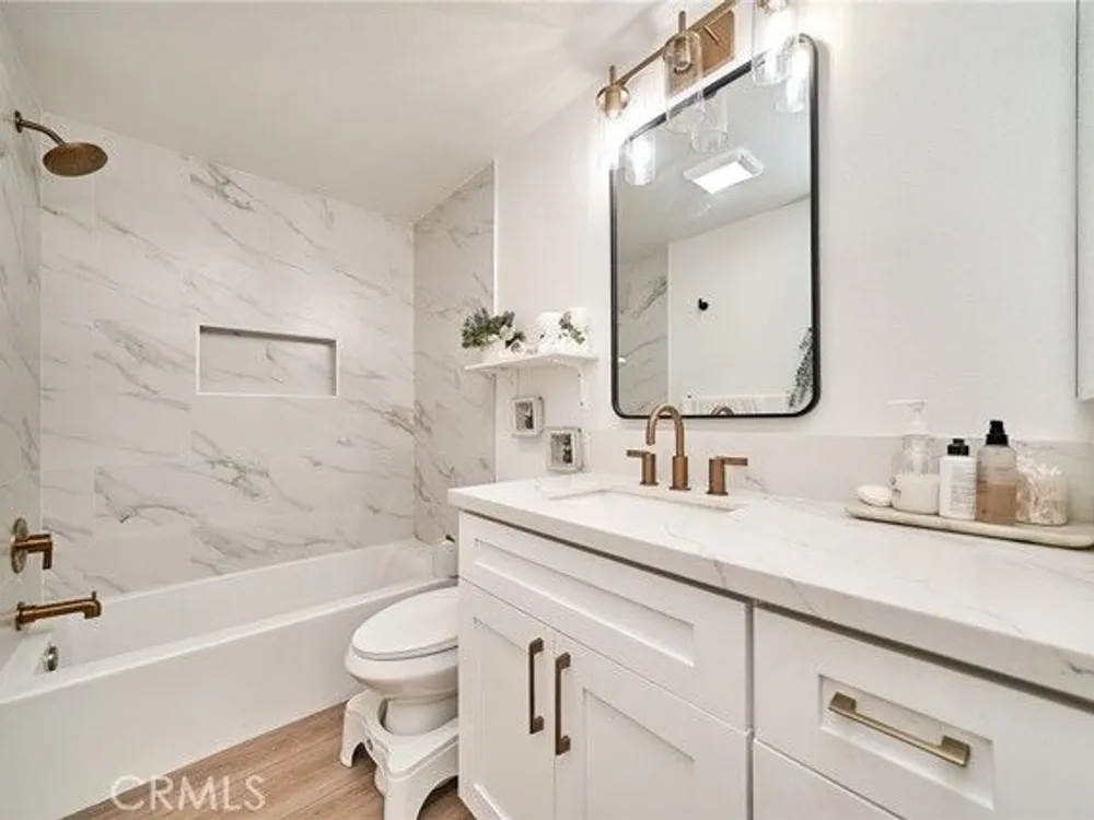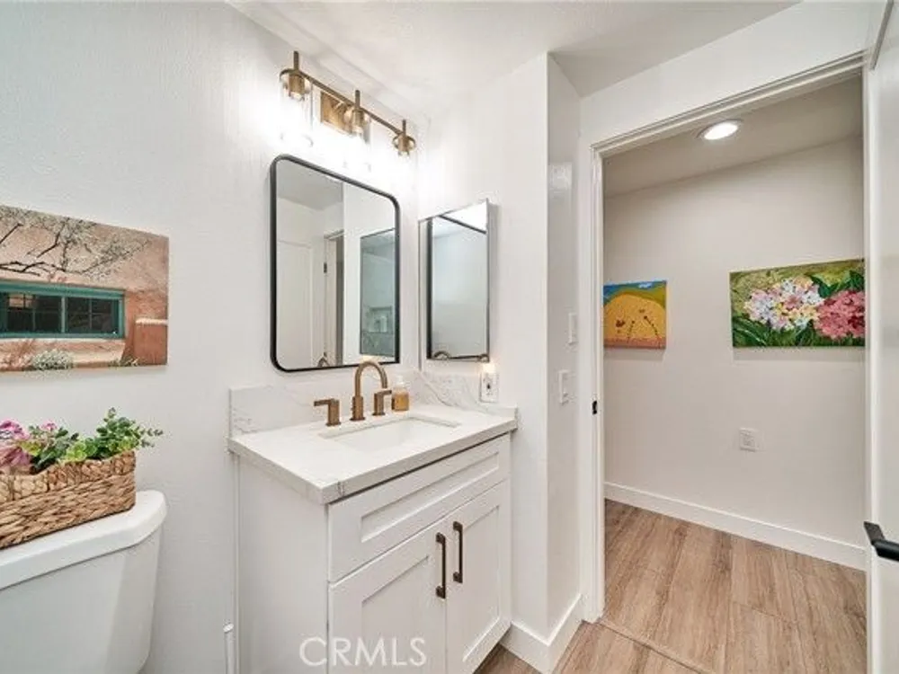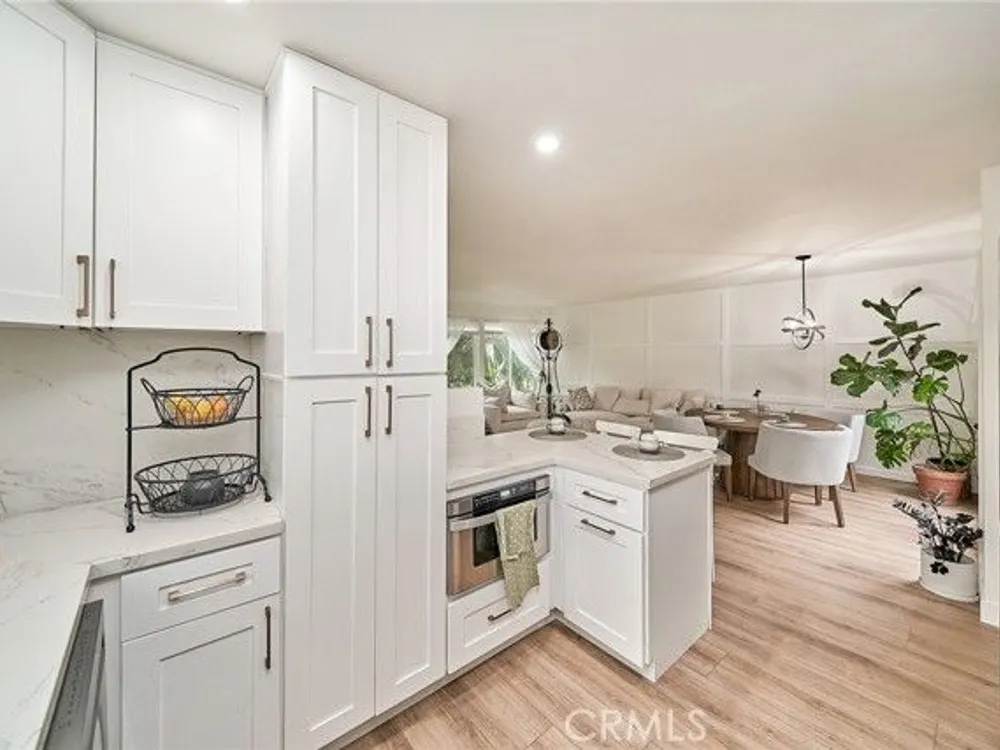 WELCOME TO THIS BEAUTIFULLY REMODELED "VILLA NOVA MODEL" 1-Story END UNIT CONDO!! HOME IS SURROUNDED BY GREEN SPACE AND TREES !! LOTS OF OUTDOOR SPACE FOR GETTING TOGETHER WITH FRIENDS & FAMILY. LARGE PRIVATE FRONT PATIO IS A PLUS. HOME WAS COMPLETELY REMODELED IN JULY OF 2024. KITCHEN WAS REMODELED WITH WHITE SHAKER CABINETS, PANTRY, SS APPLIANCES AND BEAUTIFUL QUARTZ COUNTERTOPS WITH PENINSULA COUNTER. DECORATIVE ACCENT WALL WAS ADDED TO LIVING ROOM & MASTER SUITE. MASTER BEDROOM SUITE WITH FRENCH DOOR TO THE FRONT PATIO. 2ND BEDROOM WITH ACCESS TO LOVELY ATRIUM. BOTH BEDROOMS HAVE CEILING FANS. WATERPROOF PLANK FLOORING & RECESSED LIGHTING THROUGHOUT WITH DUAL PANE WINDOWS. WATER HEATER HAS BEEN RELOCATED TO OUTSIDE STORAGE CABINET. HOA FEES INCLUDE WATER, TRASH, BASIC CABLE & AMENITY ACCESS. MUST SEE THIS A+ HOME!! LAGUNA WOODS IS A RESORT LIVING STYLE COMPLEX. ONE OF THE BEST SENIOR COMMUNITY BY THE OR-ANGE COUNTY. COMMUNITY OFFERS 2 PROFESSIONAL GOLF COURSES, ONE 27-HOLE AND A 9-HOLE PAR 3 EXECUTIVE COURSE, SECURITY GATES (24/7), 3 FITNESS CENTERS, 10 TENNIS COURTS, 5 POOLS, EQUES-TIAN CENTER, PERFORMING ARTS THEATRE, 7 CLUB HOUSES, LIBRARY, OVER 250 SOCIAL CLUBS AND AC-TIVITIES. THE SHOPPING AREAS, RESTAURANTS AND MEDICAL FACILITIS ARE CLOSE.