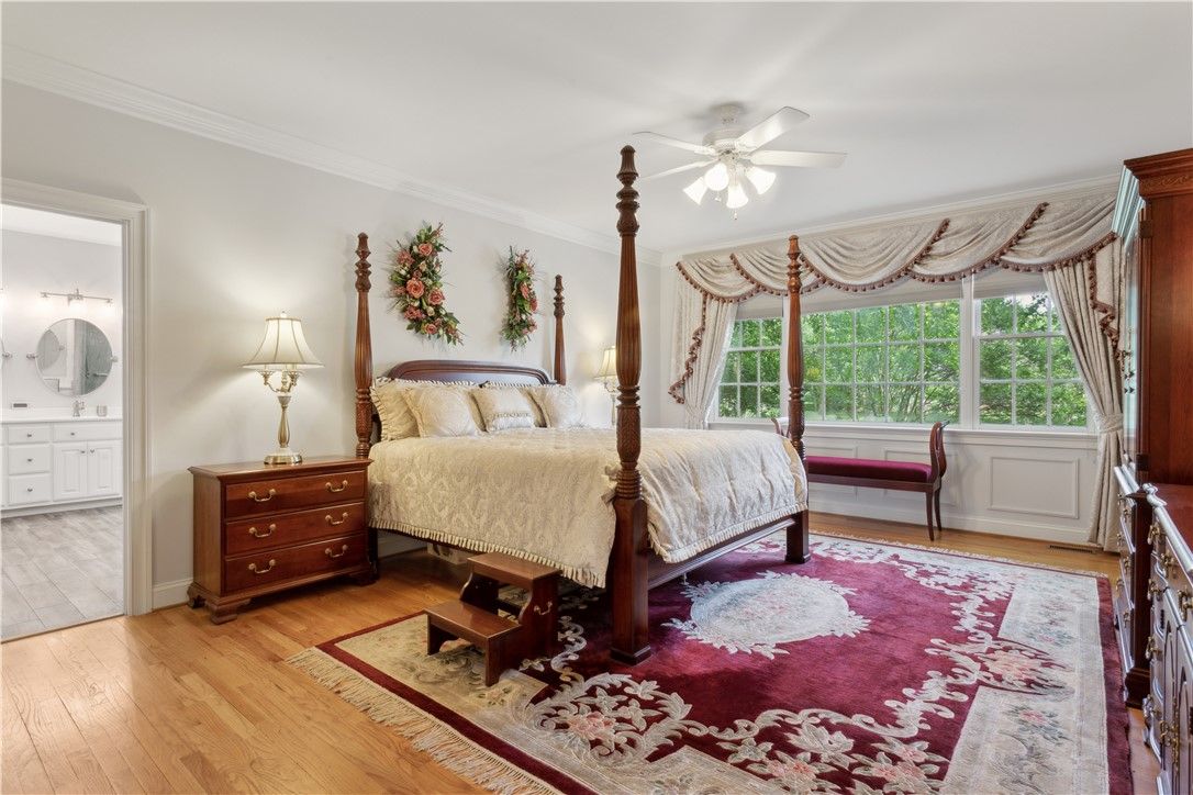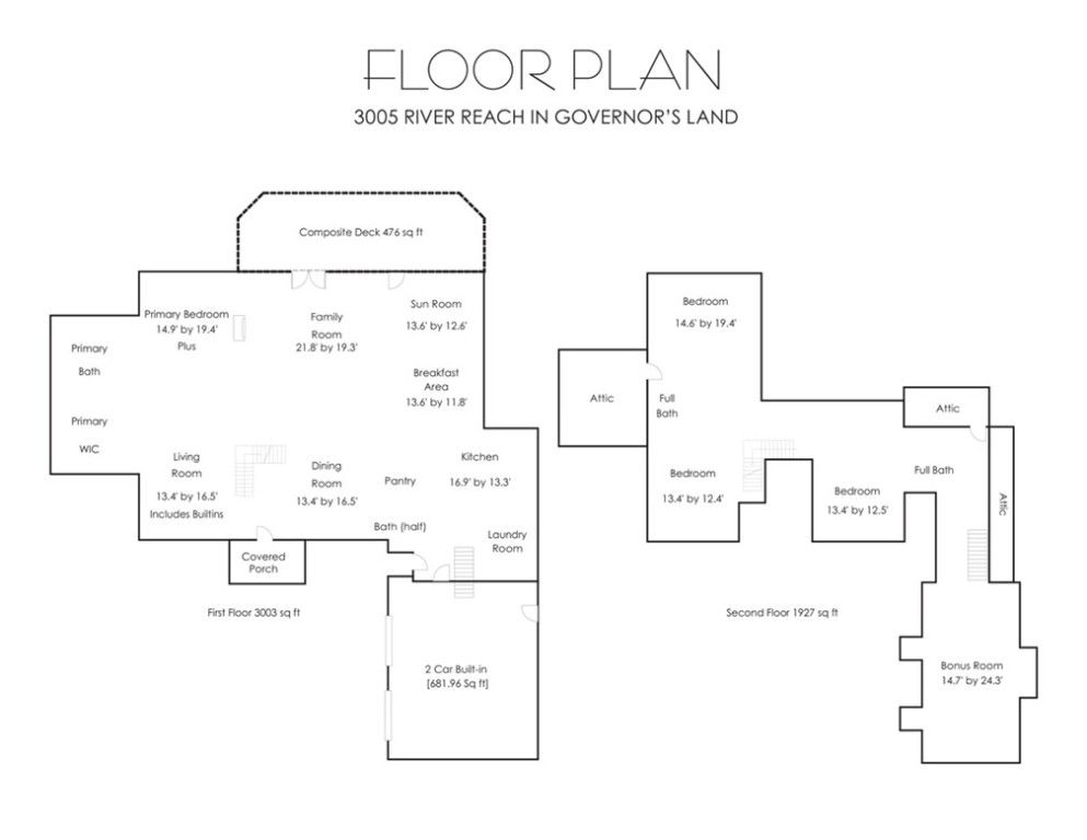 WOW! Exceptional waterfront living in this impeccably maintained all-brick home in Governor’s Land. Enjoy serene pond views from nearly every room. The light-filled great room features a soaring cathedral ceiling, fireplace, built-ins, and a wall of windows framing tranquil water vistas. A gracious two-story foyer is flanked by a study with built-ins and a formal dining room with detailed millwork and butler’s pantry. The renovated kitchen (2021) offers quartz countertops, tiled backsplash, and a large pantry—opening to the breakfast area and sunroom with deck access. The first-floor primary suite offers water views, a beautifully updated en suite bath, and a generous walk-in closet. Upstairs, bedrooms 2 and 3 share a Jack and Jill bath, while bedroom 4 features a private en suite. A spacious bonus room is accessed by a back staircase. Outdoor living is easy with a large deck overlooking the private backyard and pond. Additional highlights include: whole house generator, 4 walk-in attics, new deck (2019), new garage doors (2020), updated kitchen and primary bath (2019), and newer HVAC.