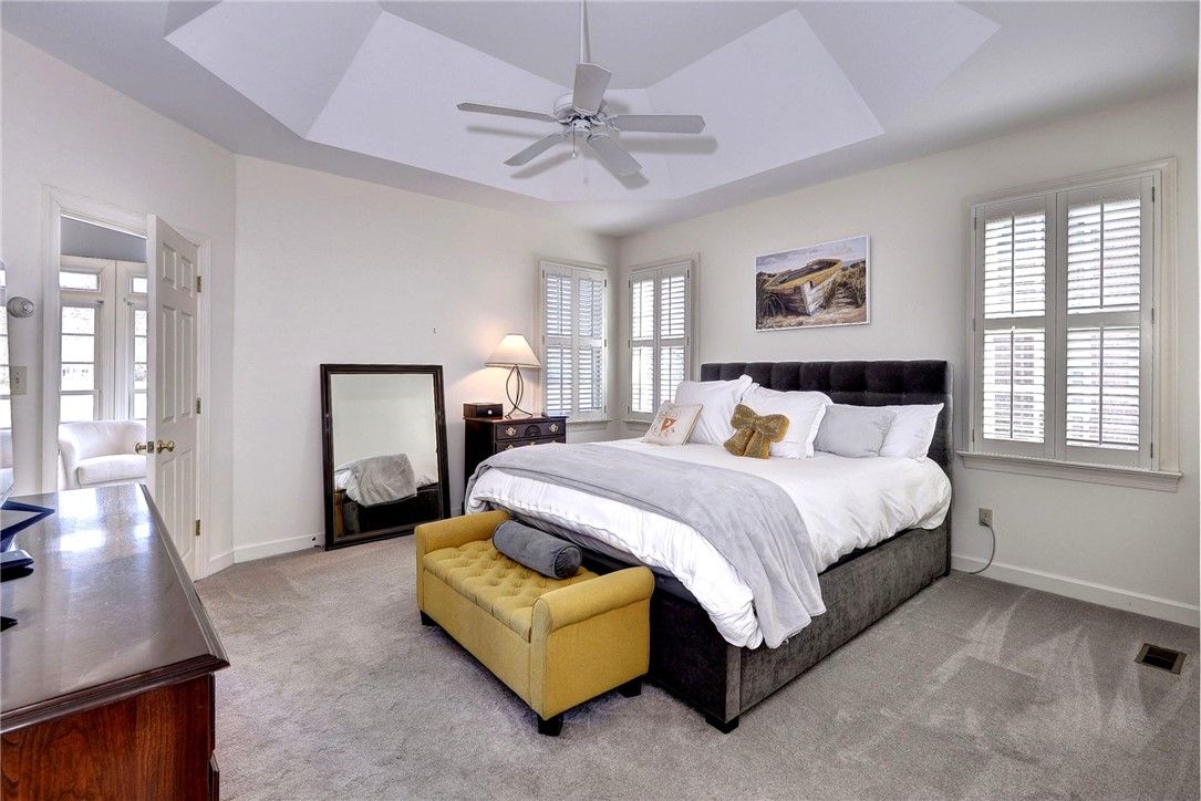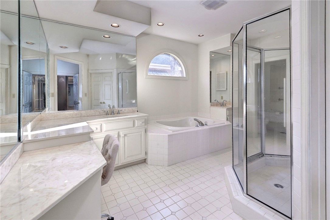 - Attic Access, Bookcases, Built-in Features, Tray Ceiling(s), Ceiling Fan(s), Cathedral Ceiling(s), Dining Area, Separate/Formal Dining Room, Double Vanity, Eat-in Kitchen, High Ceilings, Jetted Tub, Kitchen Island, Pantry, Recessed Lighting, Solid Surface Counters, Walk-In Closet(s), Window Treatments, BuiltInShowerChair