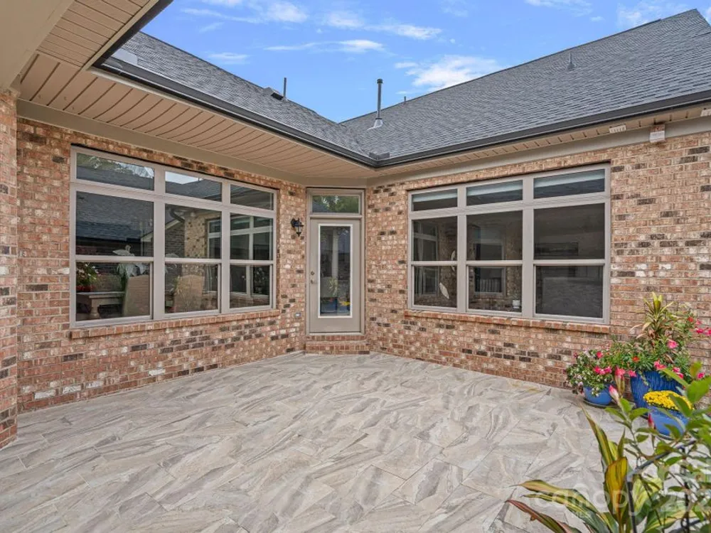 Exceptional private enclave in beautiful Fort Mill. This 3 bedroom, 3 bath home is situated in proximity to every modern convenience. Grocery, restaurants, shopping centers, interstate 77 access, charlotte airport..it is easy and convenient! This 55+community is quiet and peaceful giving you the feel of a total retreat. IF you like a good social schedule, you can be as involved as you want or relax and enjoy the peaceful surroundings. Quiet walks through the gated neighborhood, while enjoying the lovely landscapes. Community social calendar has something for everyone, ladies bunco, ladies night out, mens bourbon club, street parties, social gatherings, book clubs or tailgating. You can enjoy as much or as little, satisfying your mood. The Courtyards @ Tega Cay provide easy turnkey living. Your dues provide for Exterior maintenance, lawn service through the association and management company. The all brick exterior and the lavish amenities in the interior are amazing. The private patio with lush gardens, covered retreat, all ready for watching your favorite game or a quiet movie night.  The interior provides a gourmet kitchen, large first floor primary bedroom with simply gorgeous private ensuite bath. Second bedroom is bright and has access to a full bath as well. Lovely family room with stacked stone gas fireplace and an open concept dining room with wall to wall windows for abundant light. The upstairs boasts a large area for a private secondary recreational area or office. The third bedroom has a full bath that can accommodate the more discerning guest. Seller will even pay for a swim club membership for one year @ Tega Cay Swim club. You have it all at your fingertips.....Come and enjoy your private tour.