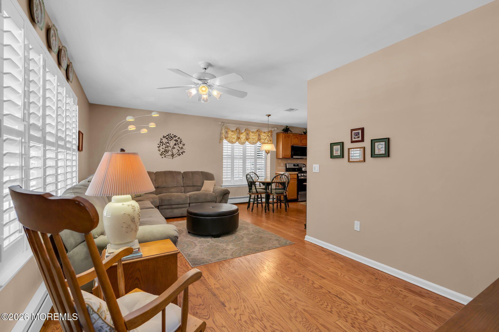 THIS IS A COMING SOON AND CANNOT BE SHOWN UNIT 2/12/2026. Welcome to this expanded Devon model located in the highly desirable Lake Ridge 55+ gated community in Toms River. Set on a premium lot backing to wooded privacy, this home offers a peaceful setting with added value and privacy. The open-concept floor plan features cathedral ceilings in the living room, a Palladian window, and a spacious living and dining room combination ideal for entertaining. The expanded family room provides additional flexible living space. Hardwood flooring throughout the home enhances warmth and style, with carpeted bedrooms for comfort. The primary suite includes cathedral ceilings, a bay window, walk-in closet, and en-suite bathroom. A second bedroom and second full bath offer ideal guest accommodations or home office spaceAdditional highlights include a two-car attached garage and hot water baseboard heatingan upgraded feature known for consistent, efficient comfort. Lake Ridge offers a resort-style active adult lifestyle with an abundance of amenities, clubs, and activities. Conveniently located near shopping, dining, medical facilities, and major transportation routes, this home delivers the perfect blend of comfort, convenience, and low-maintenance living.