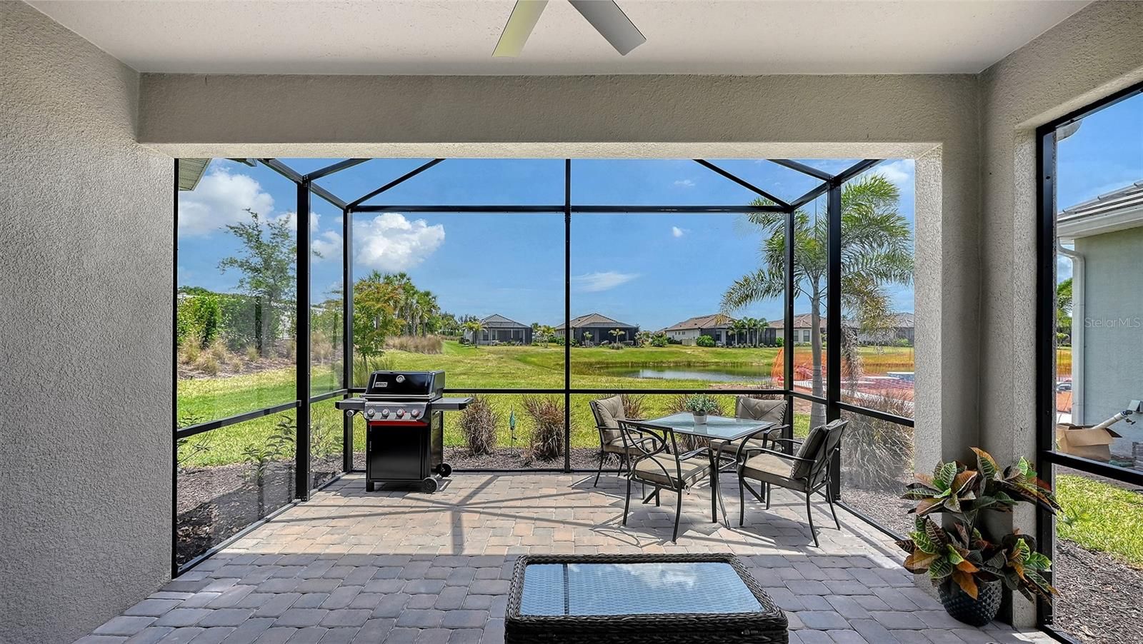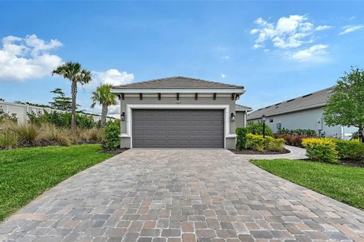 Resort-style living awaits in the gated community of Azario at Lakewood Ranch. This GOLF-DEEDED home is perfectly positioned on a quiet cul-de-sac, offering both privacy and a peaceful WATER VIEW. Featuring two bedrooms plus a versatile study, the thoughtfully designed layout provides flexibility for guests, a home office, or hobby space. The extended garage with epoxy flooring adds both style and functionality, ideal for extra storage or golf cart parking. Relax and unwind in the screened lanai, where tranquil water views create a serene backdrop for everyday living. With maintenance-free living, championship golf, and world-class amenities including tennis, pickleball, dining, Bahama bar, walking trails, dog park, fitness center and resort-style pool just outside your door, this home delivers the ultimate Florida lifestyle in one of Lakewood Ranch’s most sought-after communities.
