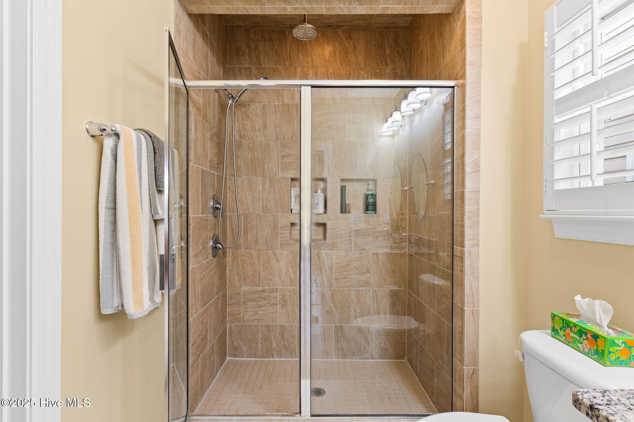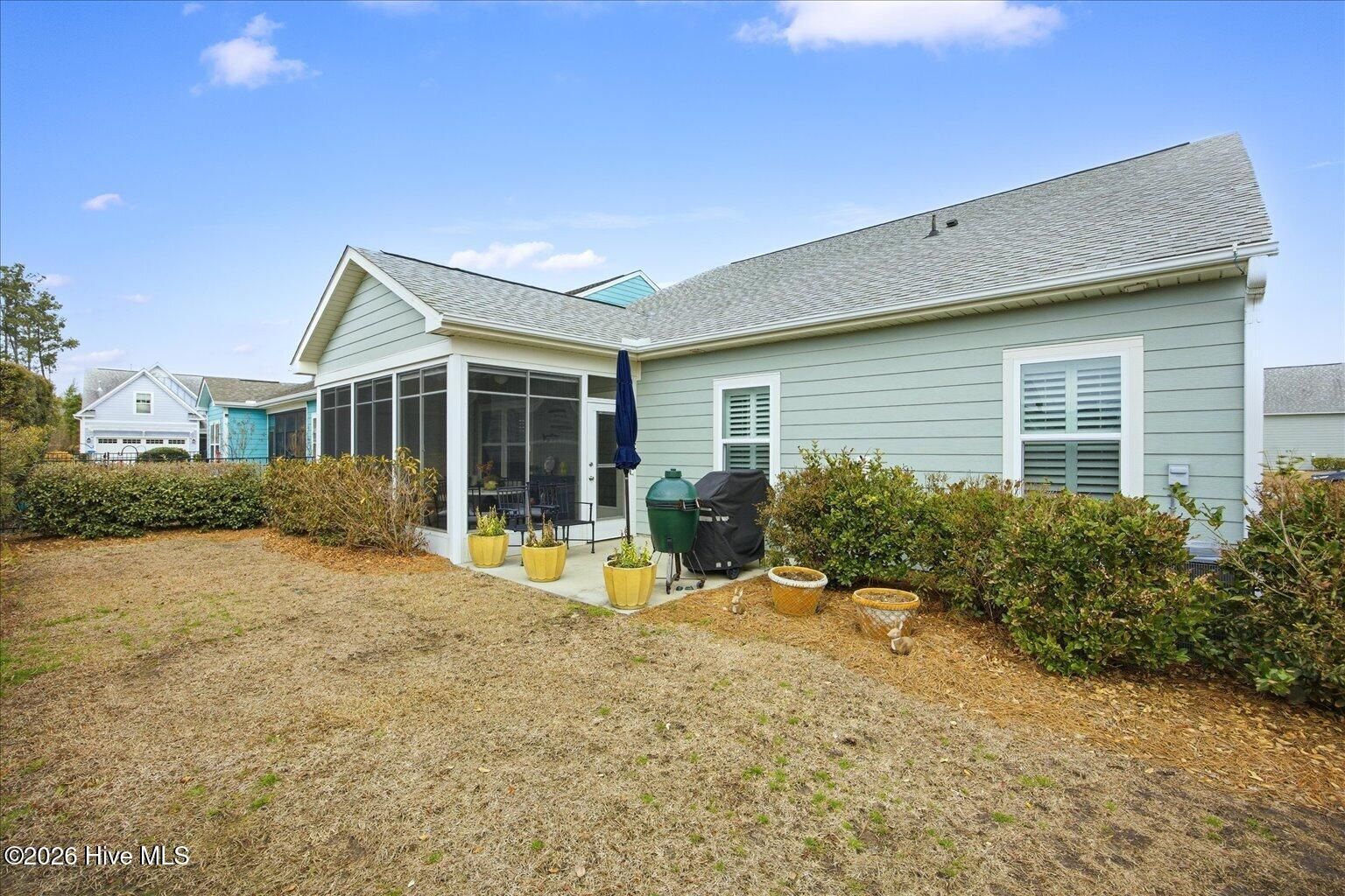 This beautiful home located in Brunswick Forest checks all the boxes! Entire exterior of home has been freshly painted ready for early spring move in. Upgraded plantation shutters are throughout the house on every window. The moment you walk through the front door, you will appreciate how well the original owners maintained this home. The foyer has upgraded picture frame trim, and the spacious living room features 11-foot coffered ceilings. There is a natural gas fireplace that anchors the living room flanked by transom windows. The open kitchen and dining area connect to the living room with barstool seating, making the floor plan ideal for entertaining. Upgrades in the kitchen include granite countertops, a tile backsplash, stainless-steel appliances. There is ample cabinet space & a large walk-in corner pantry. The standout feature is its oversized primary suite. This bedroom is huge with updated wood laminate floors and easily accommodates any furniture configuration. The en-suite bath has two sinks in the granite vanity, a tile shower with rain spray and a generous walk-in closet. There are a guest bedroom and den on the first floor. The den could be an office, game room, or converted to a fourth bedroom easily. Upstairs is a great guest suite complete with full bath and ample closet. The laundry room provides extra storage and workspace. The screened porch has EZ Breeze vinyl windows, tile floor, solar screen blinds and two fans, this will be one of your favorite rooms in the house. There is a grilling patio adjacent to the screened porch and the backyard has privacy hedges along all sides. The two-car garage has an additional storage space under the stairs. The HOA fee includes lawn maintenance and access to resort style amenities including: 3 outdoor pools, an indoor pool, workout rooms, 3 fitness centers, tennis, pickleball courts, multiple parks, over 100+ miles of sidewalks and walking paths. There are countless social groups, classes. There is an 18-hole golf course available via membership. The location could not be better. You will love living here!