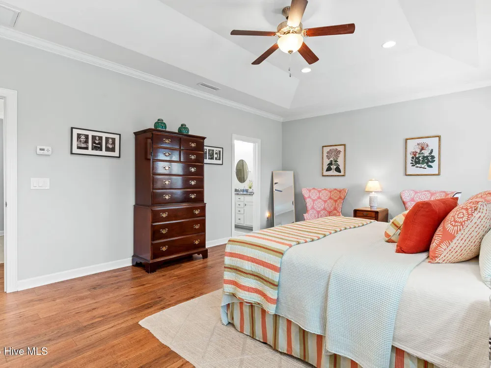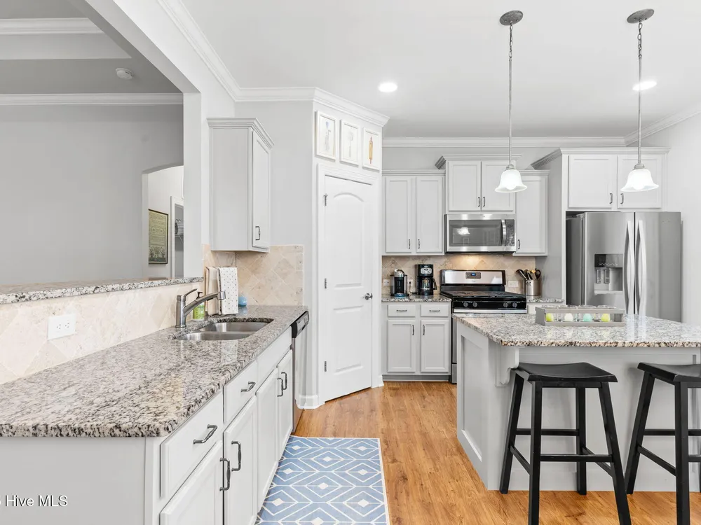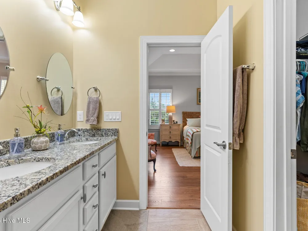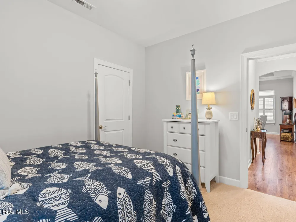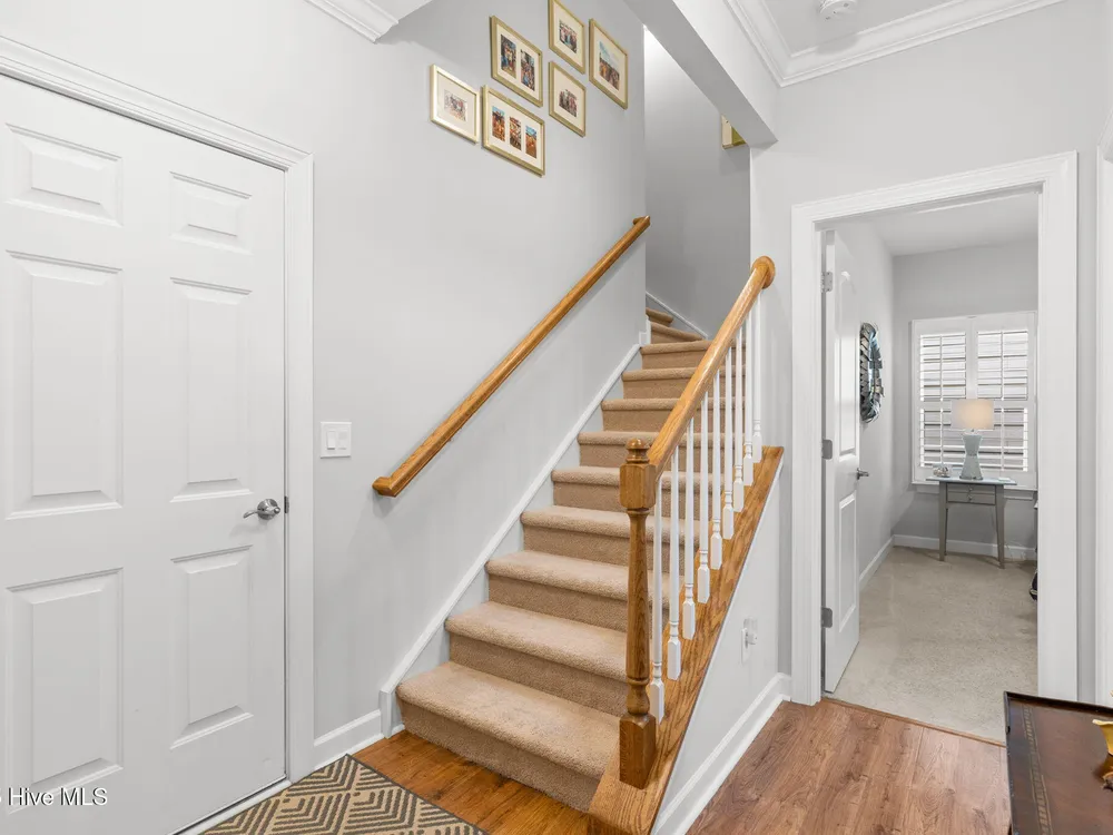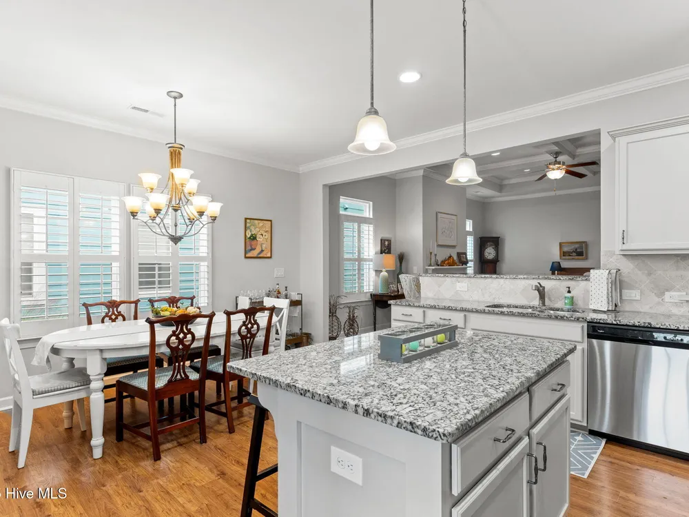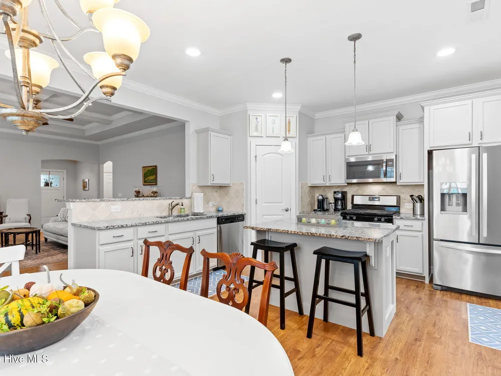 This luxurious home located in Brunswick Forest checks all of the boxes! The moment you walk through the front door, you will notice and appreciate how well the original owners have maintained this home. The foyer has upgraded picture frame trim work and the spacious living room features 11 foot coffered ceilings. There is a natural gas fireplace that anchors the living room. This functional floorplan is great for entertaining as the chef's kitchen is open to the living room with barstool seating. Upgrades in the kitchen include granite countertops, a tile backsplash and stainless steel appliances. There is ample cabinet space and a large walk-in corner pantry. While there are many awesome features in this house, perhaps the most impressive is the oversized primary suite. This bedroom is huge and easily accommodates any furniture configuration. The en-suite bath has two sinks in the granite vanity, a tile shower and a generous walk-in closet. There is a guest bedroom and an office on the first floor. The office room could be a den, game room, or converted to a fourth bedroom easily. Upstairs is a great guest suite complete with full bath. While no one enjoys laundry, this laundry room is worth mentioning, it has a folding table, shelving and a storage closet! The screened porch has EZ Breeze vinyl windows, tile floors and two fans, this will be one of your favorite rooms in the house. There is a grilling patio adjacent to the screened porch. The two car garage has an additional storage space under the stairs and there is ample parking in the driveway. The HOA fee includes lawn maintenance and access to resort style amenities including: 3 outdoor pools, an indoor pool, workout rooms, 3 fitness centers, tennis & pickleball courts, multiple parks, over 100+ miles of sidewalks and walking paths. There are countless social groups & classes. There is an 18 hole golf course available via membership. The location couldn't be better. You'll love living here!