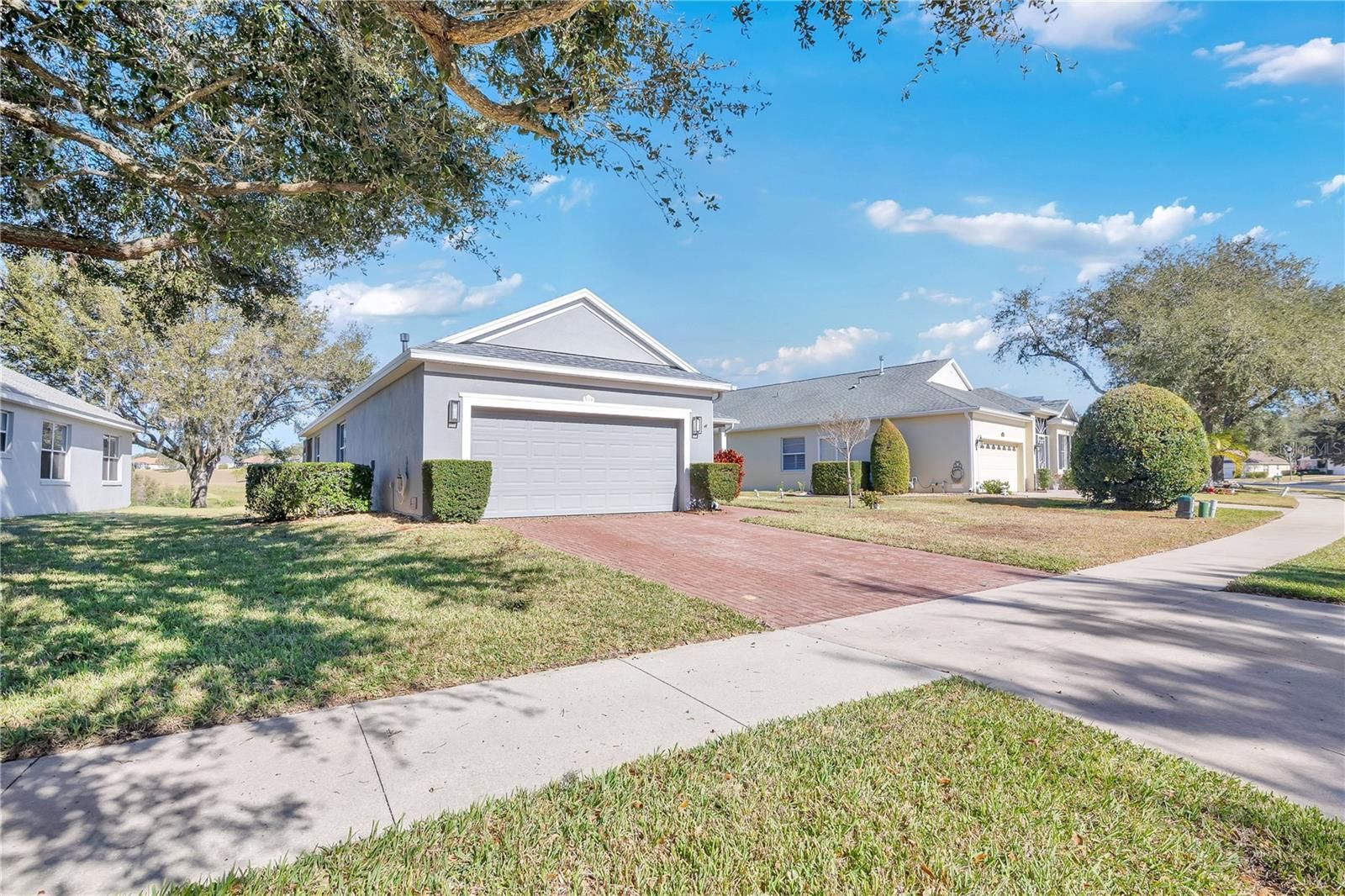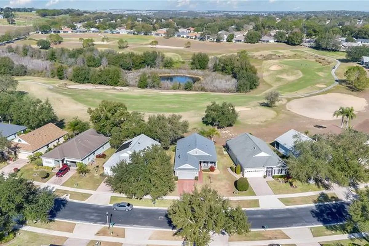 Located on one of the best golf course lots in the highly sought-after Summit Greens community, this beautifully maintained single-story home offers expansive open views of the Clermont National Golf Course. Featuring 2 bedrooms, 2 full bathrooms, and a spacious office/den with French doors, the home boasts soaring vaulted ceilings, wood-look laminate flooring throughout the main living areas, and an open, light-filled layout ideal for everyday living and entertaining. The kitchen is well appointed with granite countertops, solid wood cabinetry, stainless steel appliances, a closet pantry, and a breakfast nook overlooking the course. Large triple sliding glass doors open to an oversized screened and covered lanai, creating seamless indoor-outdoor living with tranquil golf course and greenbelt views. A brand-new roof (2025), new washer and dryer, and attached two-car garage complete the home. Summit Greens offers guard-gated security and resort-style amenities including indoor and outdoor pools, fitness and wellness center, pro tennis courts, pickleball courts, clubhouse, and access to championship golf. Conveniently located near shopping, dining, medical facilities, and major roadways, this home offers the best of Central Florida living.
