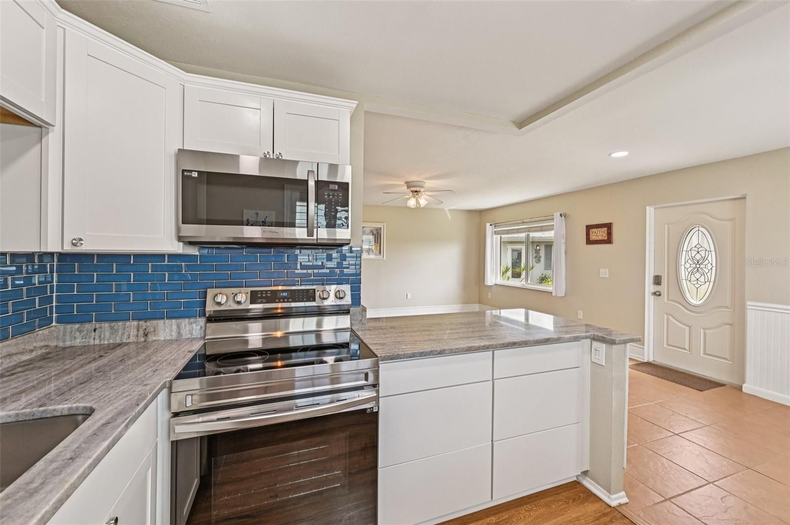 - Ceiling Fan(s), Eat-in Kitchen, High Ceilings, Kitchen/Family Room Combo, Living/Dining Room, Open Floorplan, Solid Surface Counters, Solid-Wood Cabinets, Walk-In Closet(s)