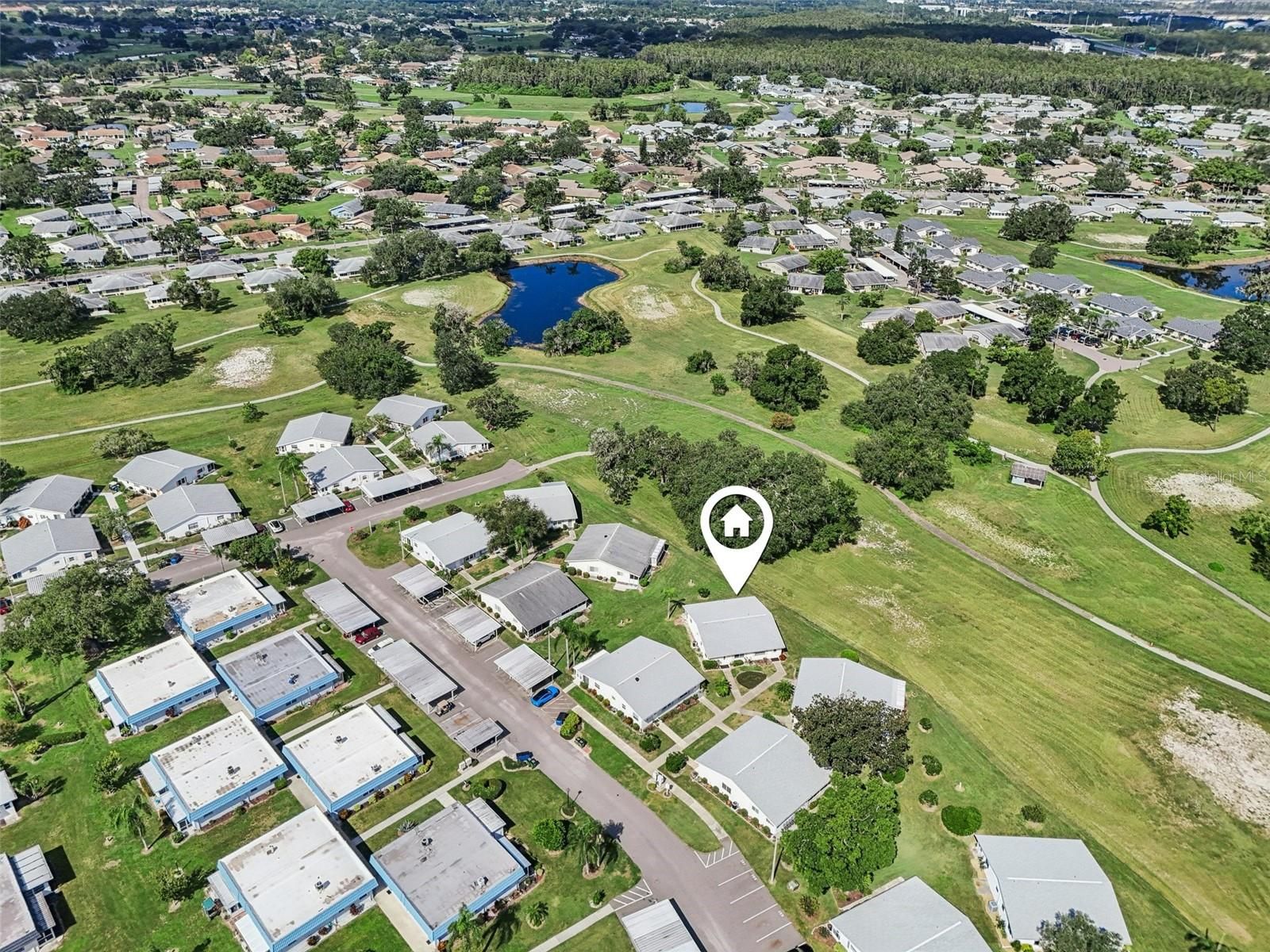 One or more photo(s) has been virtually staged. Photos don’t do justice to this one-story condo with a scenic view of a retired golf course that is now open space from the enclosed lanai. Many improvements have been recently made including the following: The kitchen was fully remodeled 2022 with all new appliances and hot water heater. The air conditioner was replaced 11/23/22 and an ultraviolet light which prevents mold growth was installed 4/16/25. The owner has a Kings Point Warranty Platinum level and just had an A/C check on 4/10/25. The entire home has tile except for the kitchen which has vinyl. One bedroom has custom closet organizer/shelving, and the other bedroom has a walk-in closet. This home has PGT 5500 series vinyl laminated insulated impact windows with cardinal 366 Low E - 2023 at a cost of $6,205.25 (except window to lanai and lanai windows). The lanai has double doors so that you can drive the golf cart in when you go away and it has and electric outlet for charging. There is close access to the walking/biking/golf cart trail on the retired golf course. There is a detached carport and guest parking. You’ll love the gated community of Kings Point, which has amazing facilities, pools, clubs and events just waiting for you to enjoy. Located between Sarasota and Tampa, this home is perfectly positioned for a convenient ride to airports, great shopping, dining, and professional entertainment. With easy access to award-winning, sandy beaches, you’ll experience the best of all worlds—without the stress of big city life. Leave the hustle behind and embrace a new chapter in Sun City Center, Florida, the state's top-ranked and most affordable 55+ retirement community. You’ll love this location on a less traveled, dead end street.