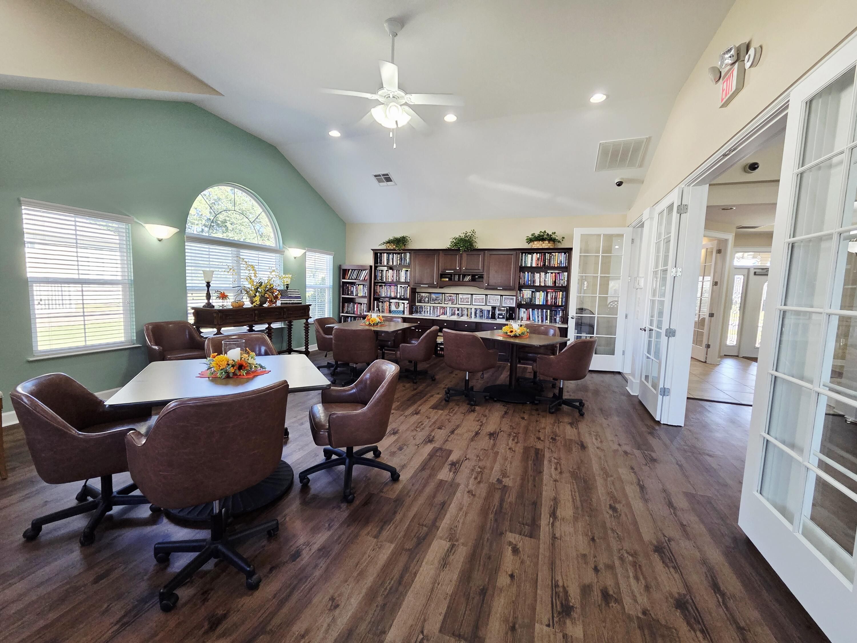 $1,584.84 Taxes '25, Zillow is WRONG. Beautifully designed 1-story patio home that blends comfort, convenience, & style. Plantation shutters, custom built-in shelves surrounding FP & custom alcove built in hallway adding extra character & function, deep tub in guest bath, tons of storage throughout, Flex room which can be an office, den, 3rd guest bedroom. Screened porch off Primary bedroom. Security system & sealed epoxy garage floor for a polished finish. Low-maintenance lifestyle with HOA-covered exterior insurance & lawn care outside your private fenced courtyard. The sought-after neighborhood offers desirable amenities including a clubhouse w/ full kitchen, library, game rooms, private gym, & pool w/ outdoor grill -- all just minutes from shops & dining. NOT AGE RESTRICTED 😍